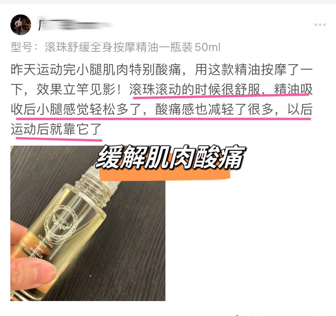 使用方法:使用自带滚珠均匀涂抹于肩颈、背部、腹部、腿部和手部肌肤,可配合手法按摩5-10min,直至精油充分吸收