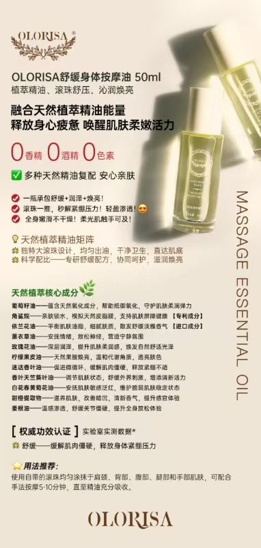 【产品名称】澳洛莉舒缓身体按摩精油