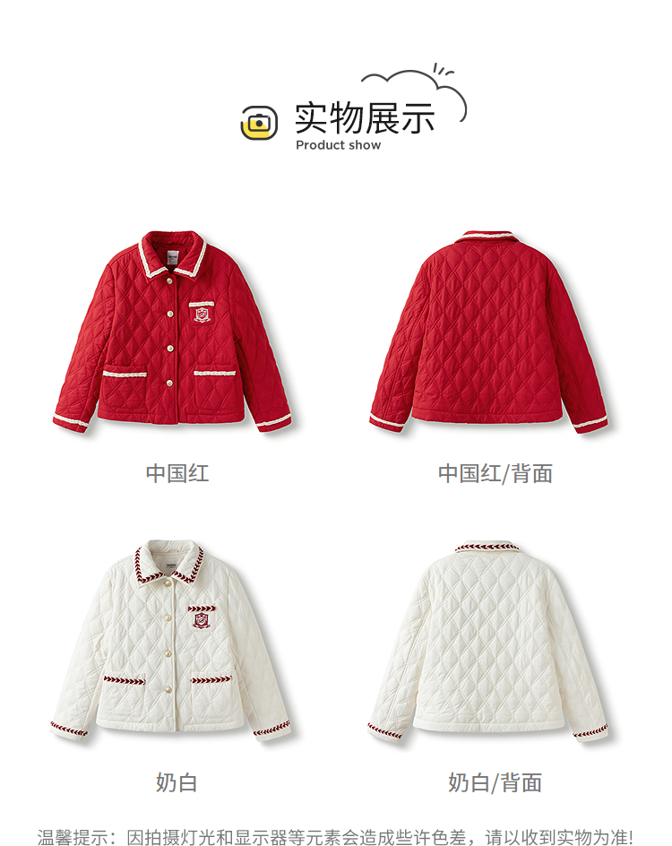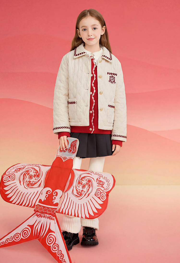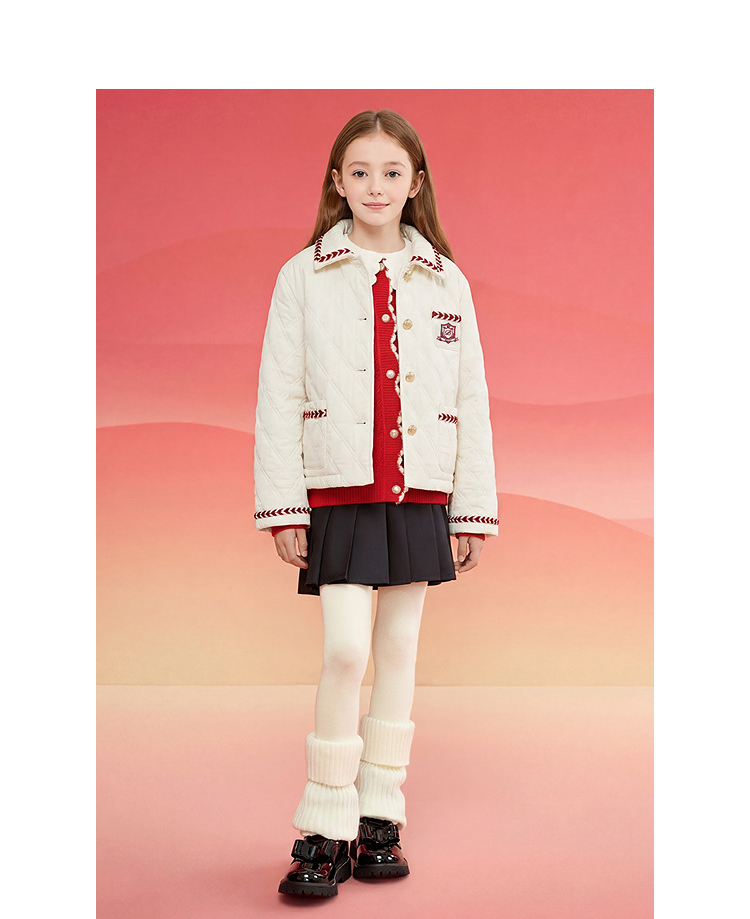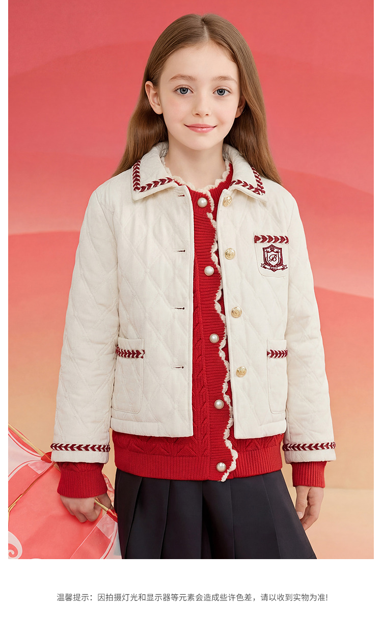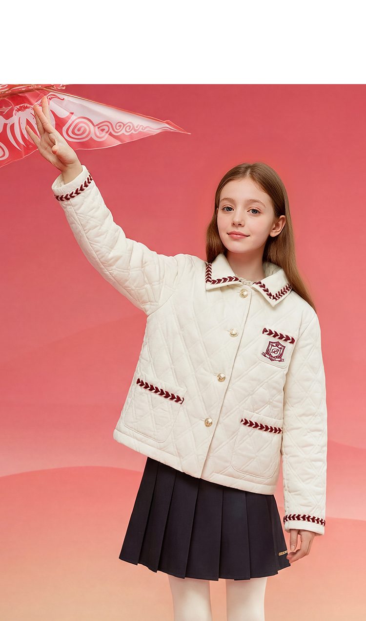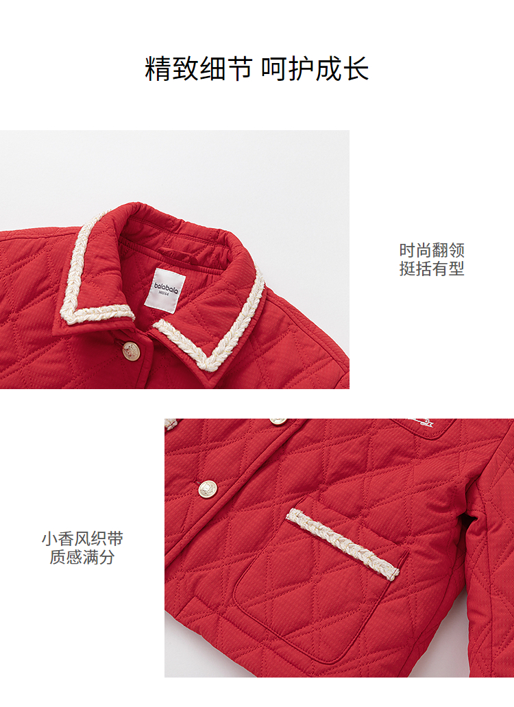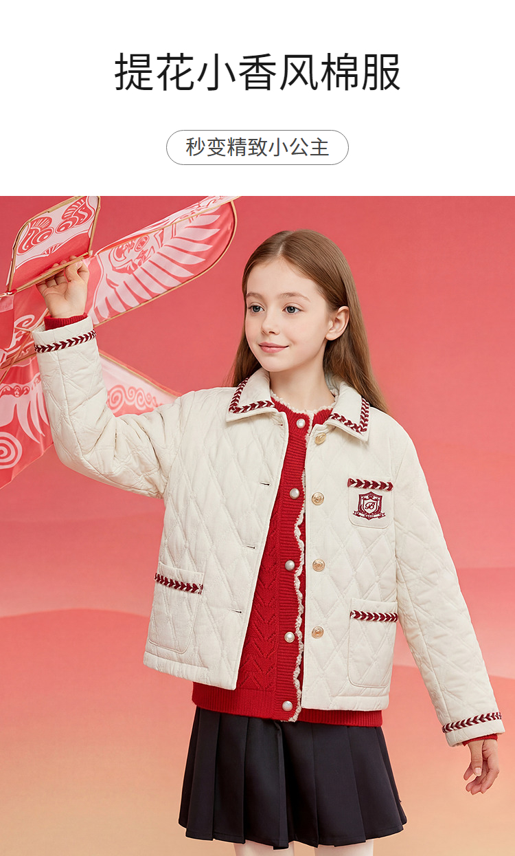 巴拉巴拉童装儿童外套女童棉服春装上衣翻领小香风洋气绣花时尚