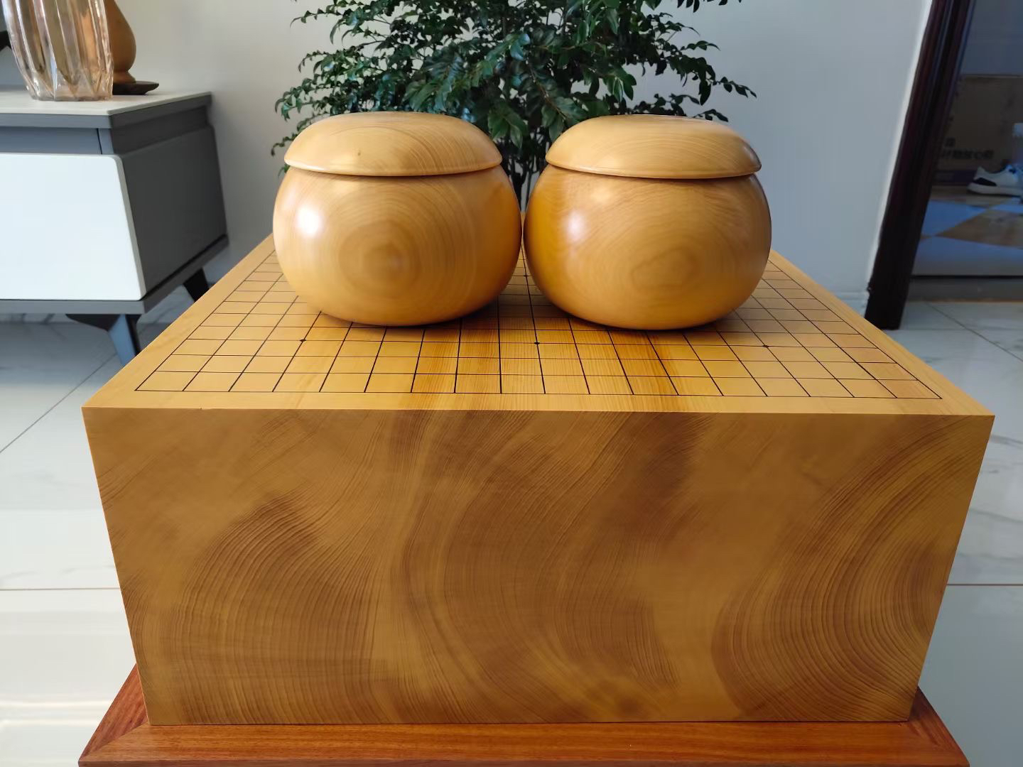 本榧无瑕疵精品、含本榧罐和花梨木底座。稀有规格44cm×47cm×20.3cm