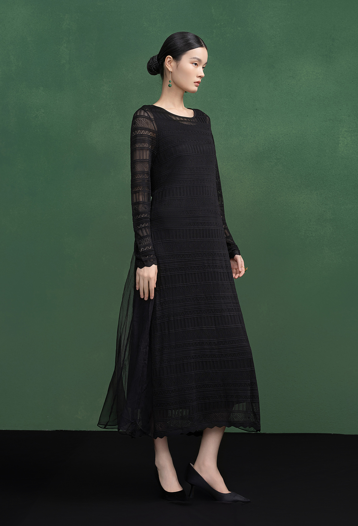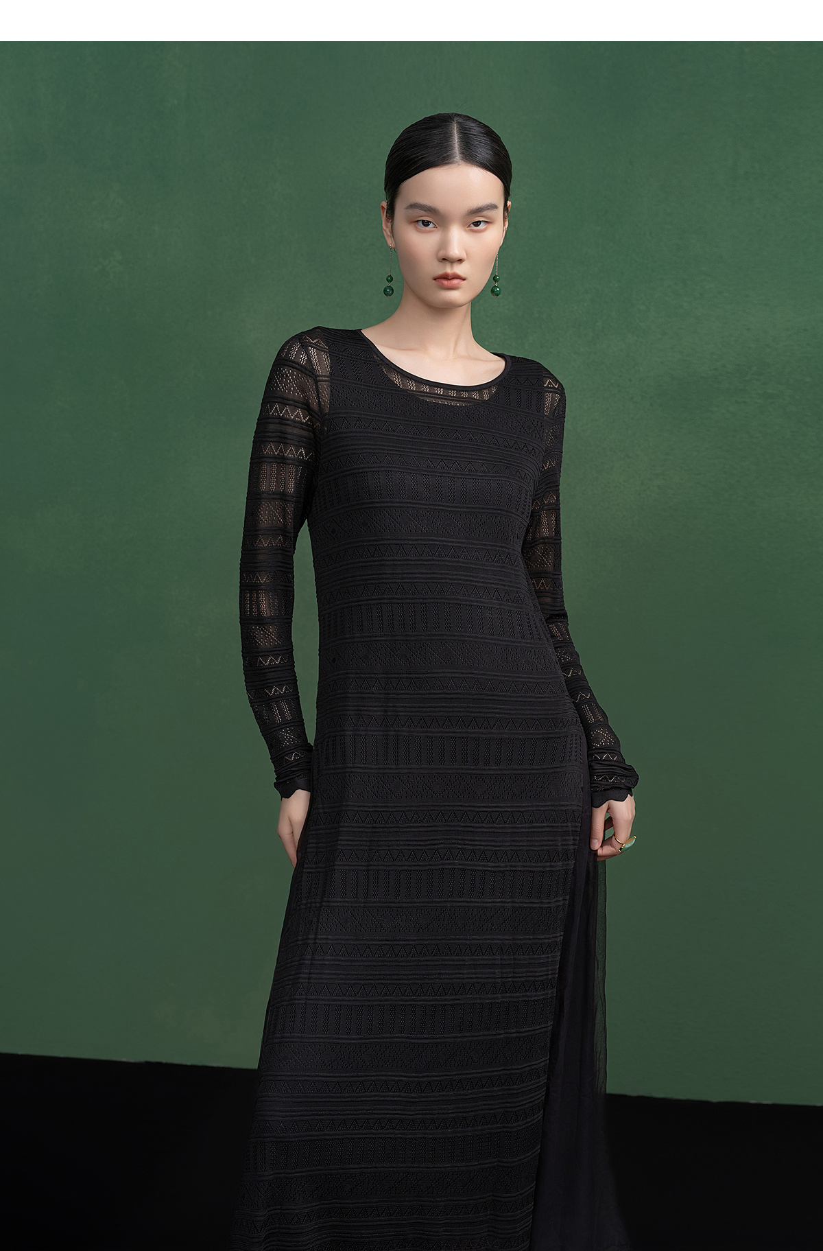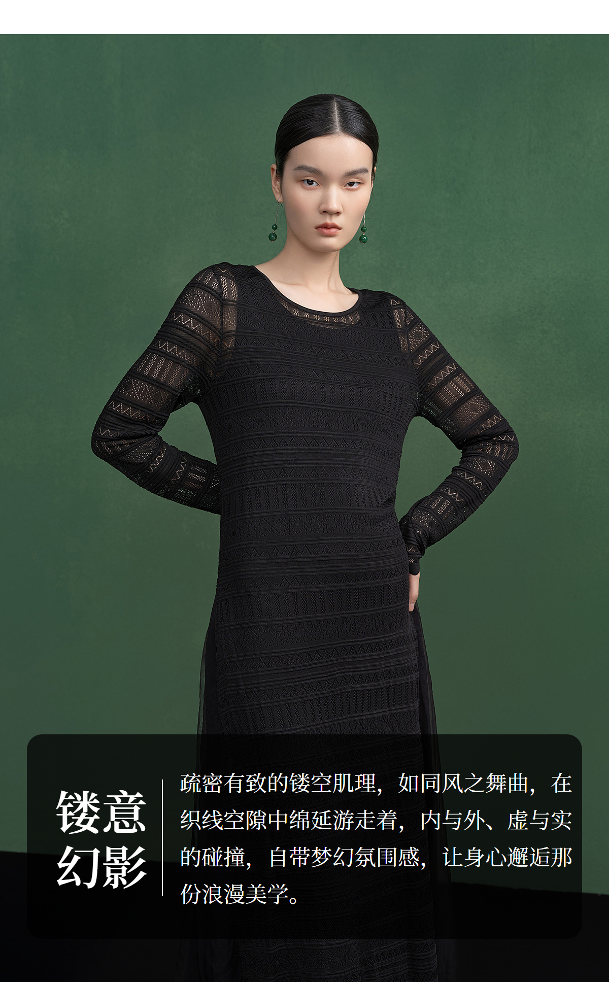【林栖设计小店】(现货)拼真丝针织连衣裙套装2025春季新品镂空肌理两件套裙子女1951106