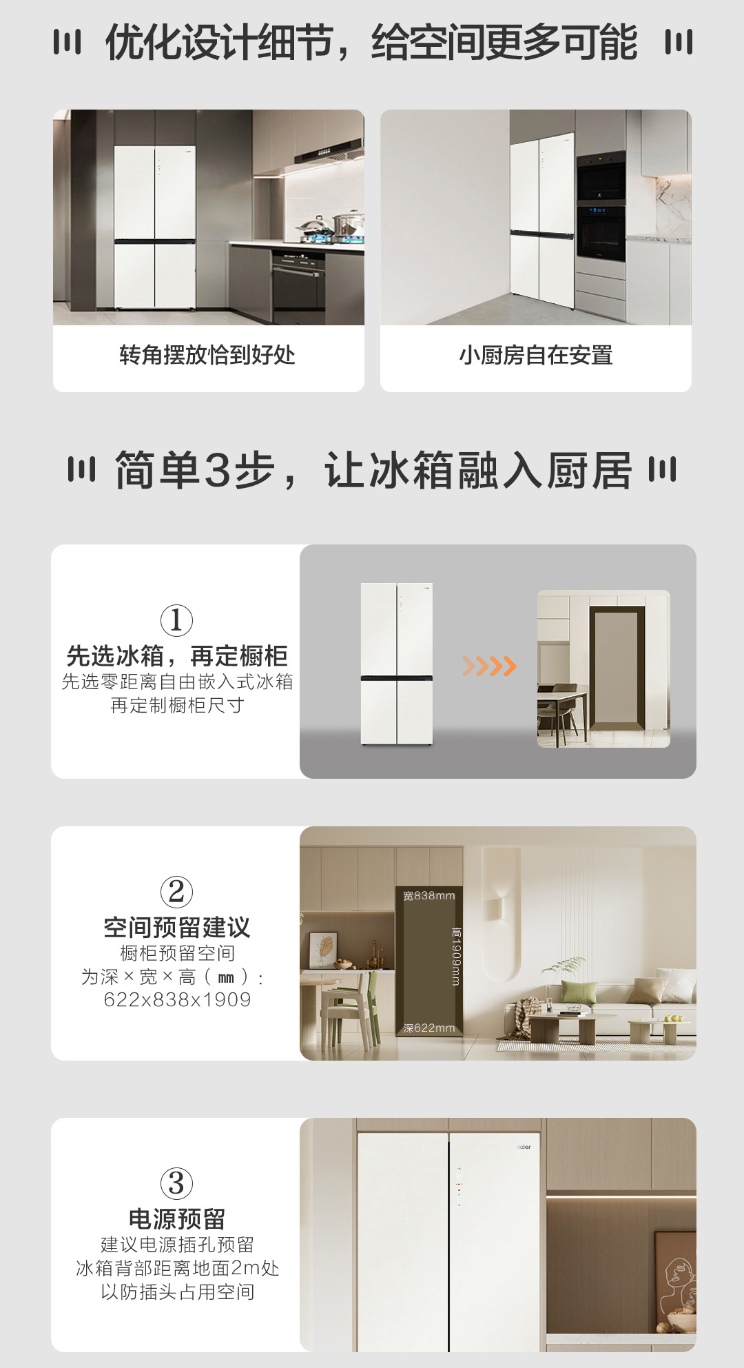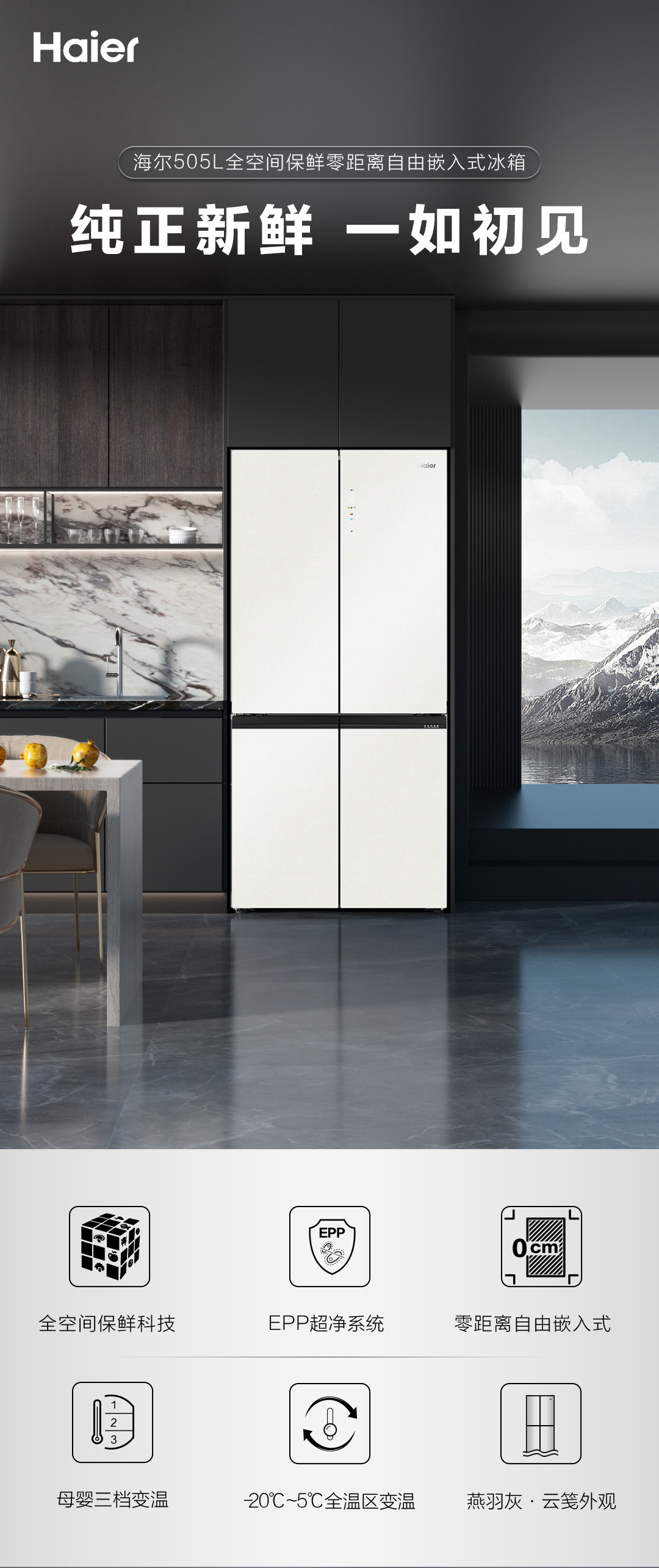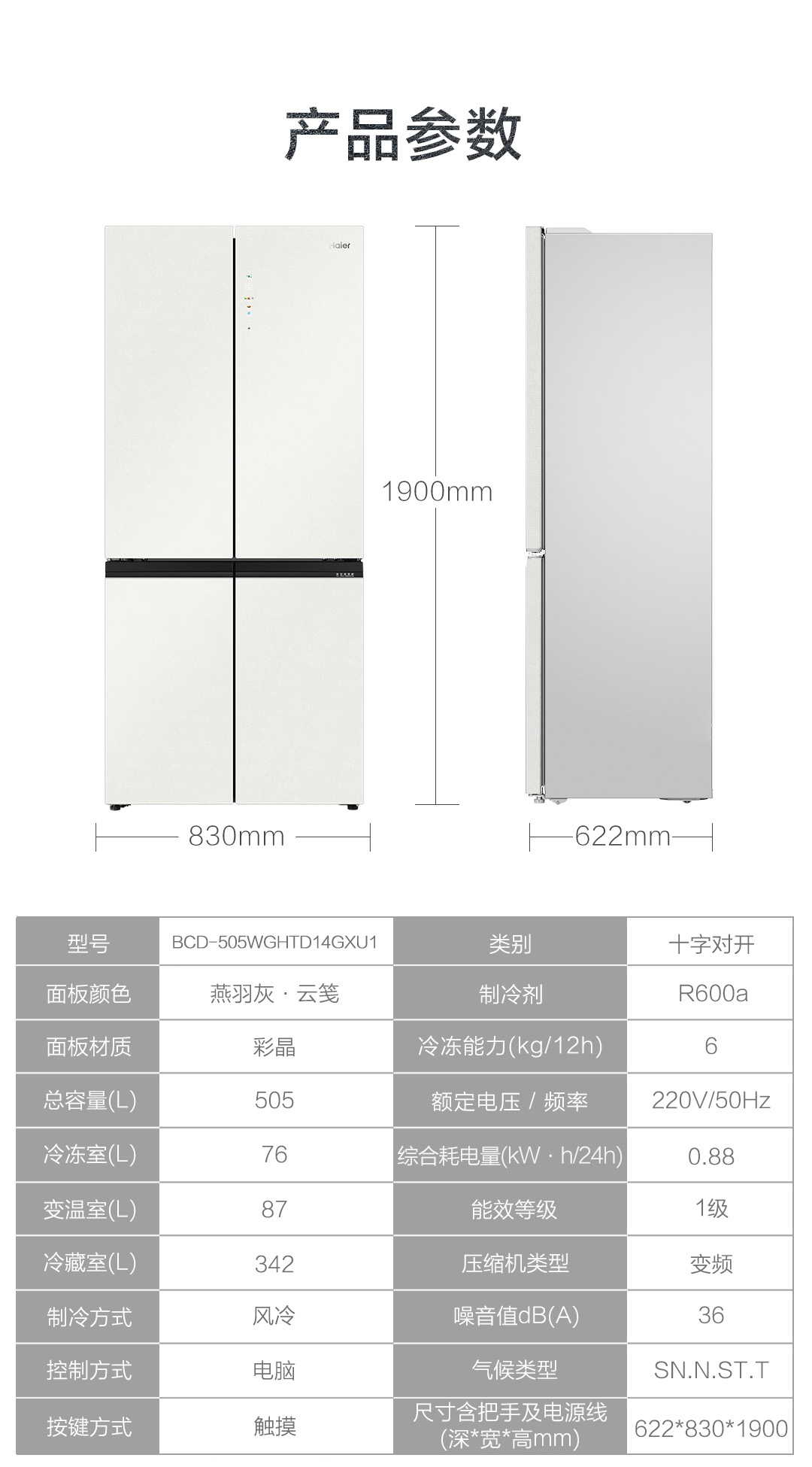 海尔(Haier)505升十字对开门超薄冰箱 零距离嵌入全空间保鲜 EPP超净系统 BCD-505WGHTD14GXU1