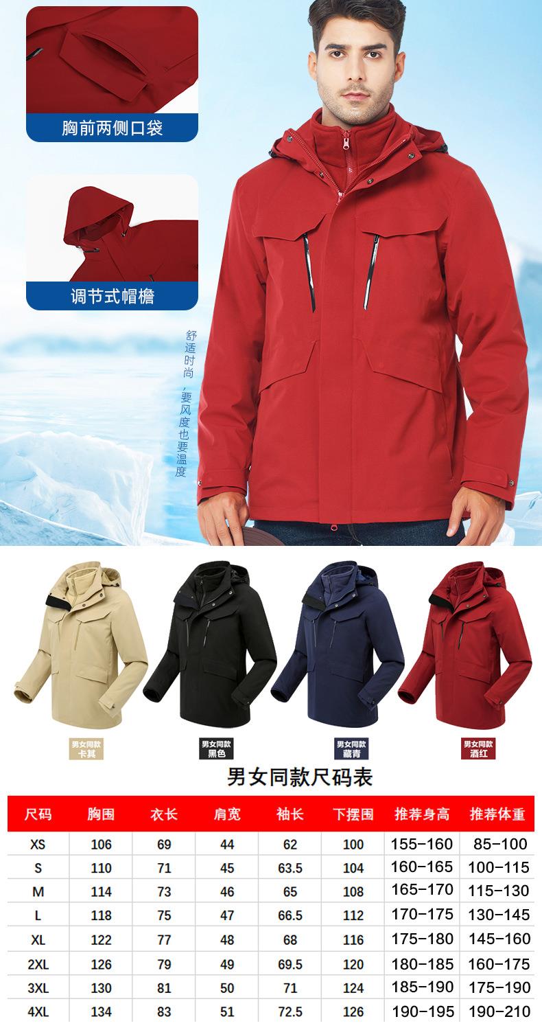 2023秋冬新款户外冲锋衣男女同款三合一可拆卸防风防水压胶工作服