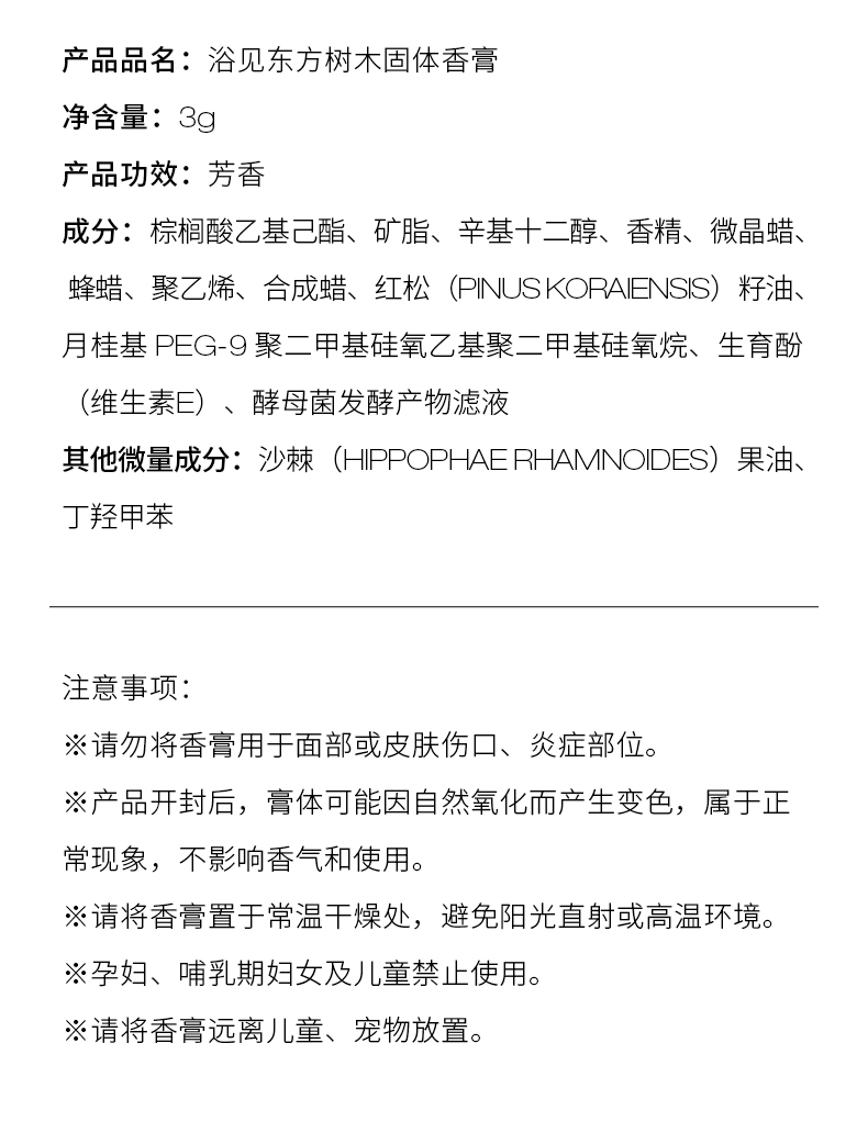 浴见 东方树木固体香膏3g