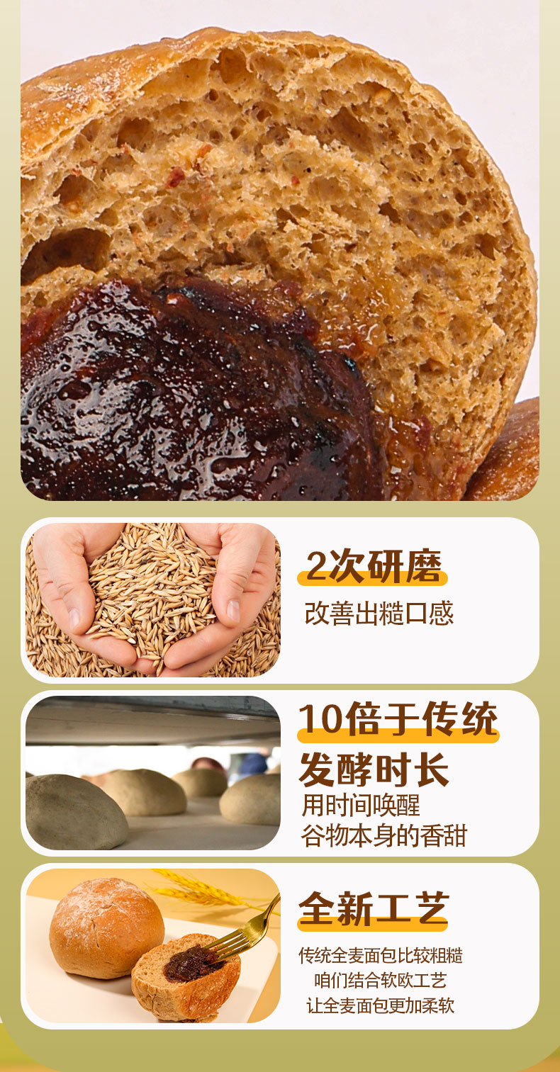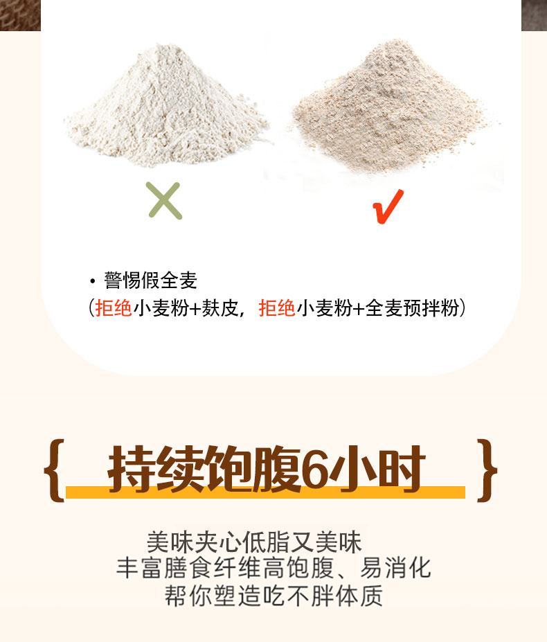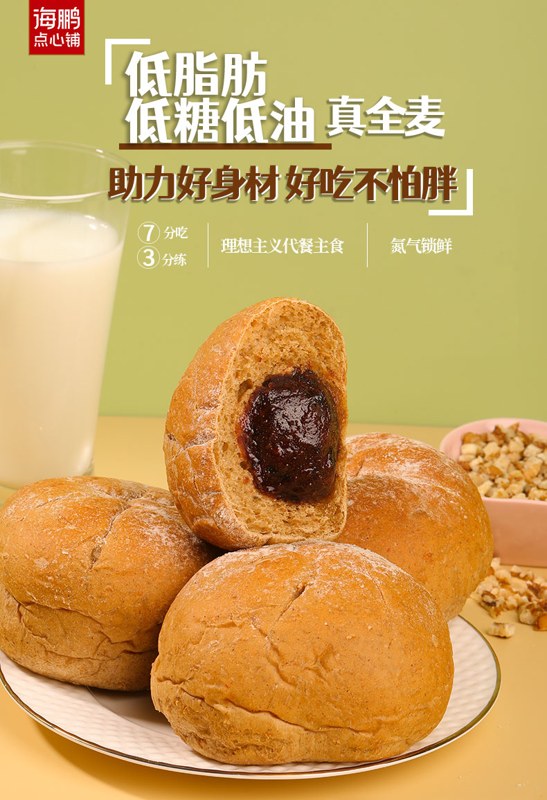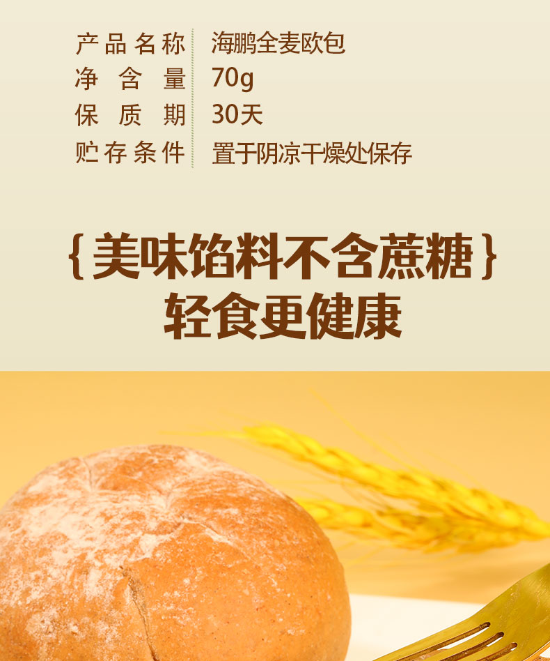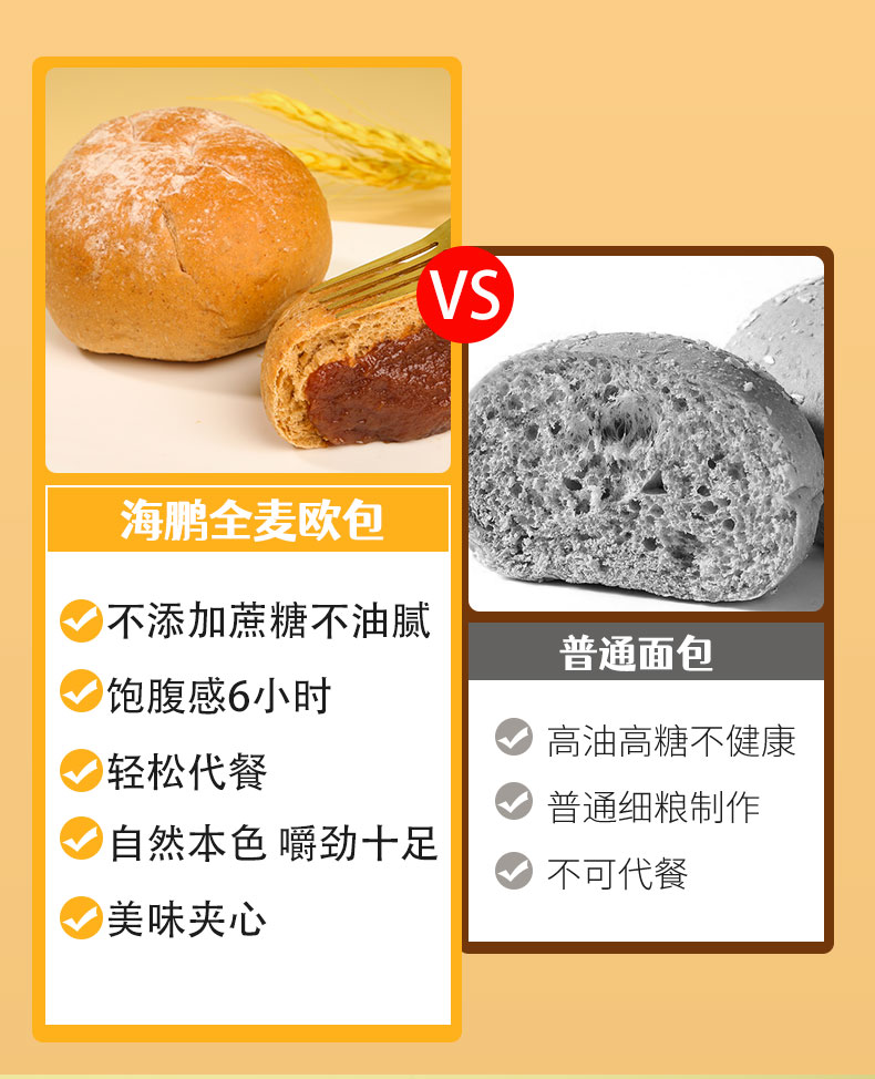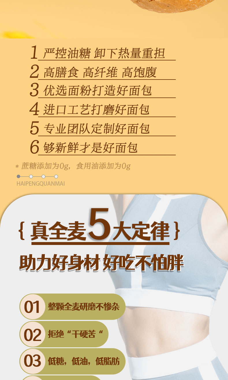 海鹏全麦无糖饱腹减脂早餐吐司欧包70g*6枚