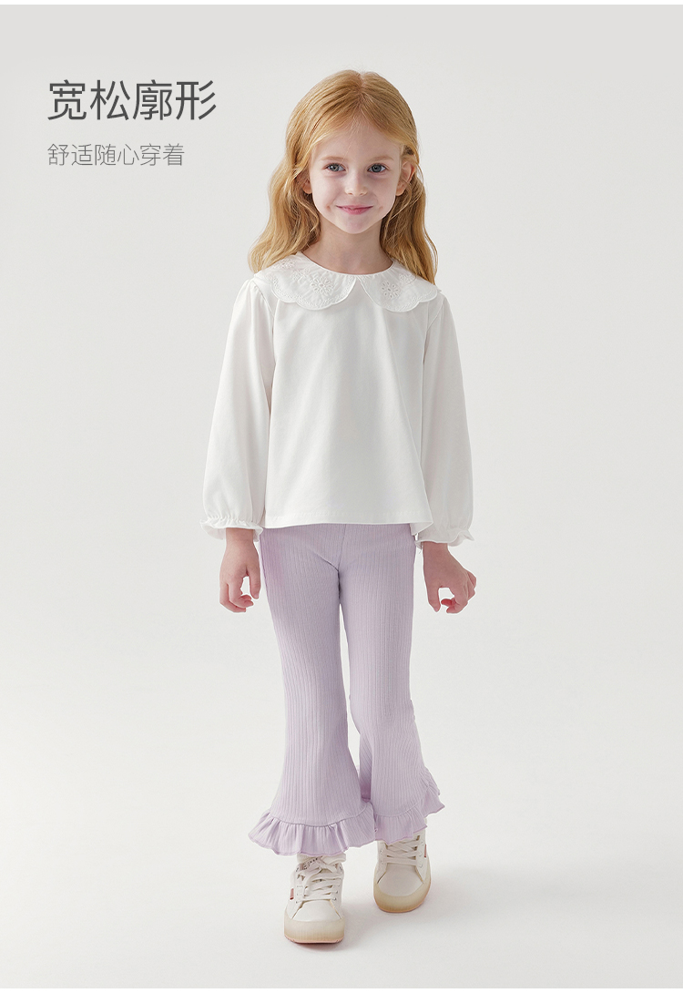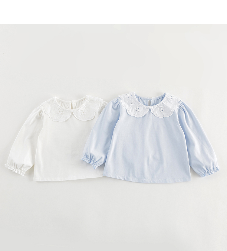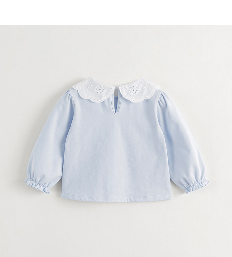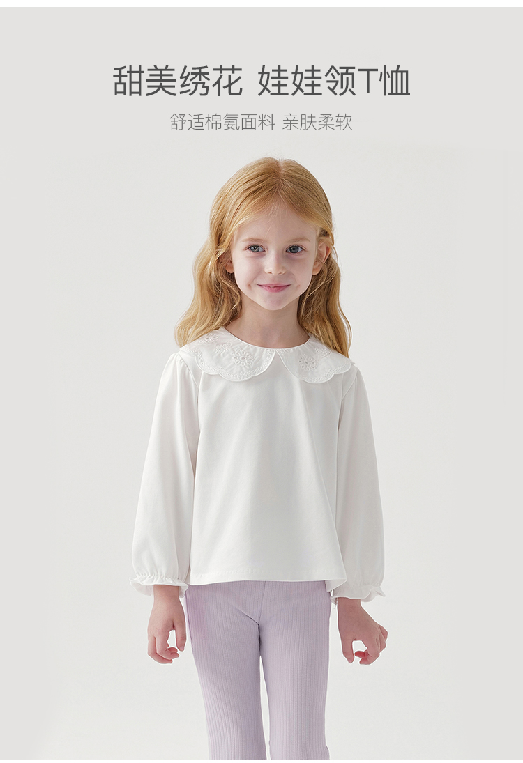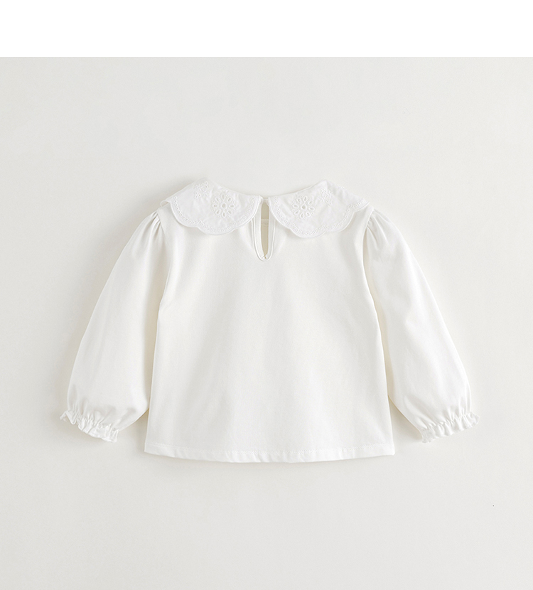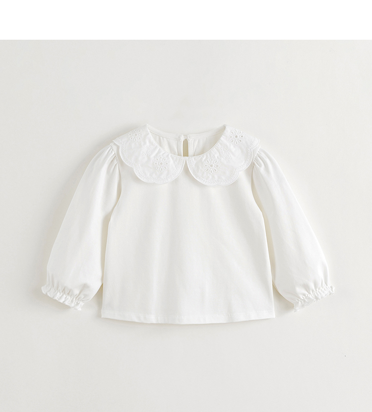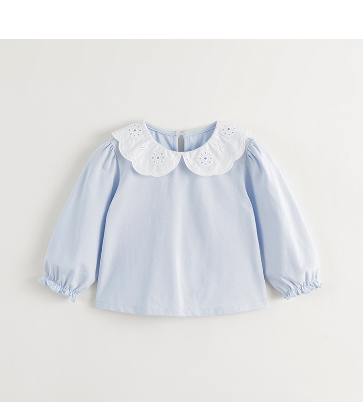 马克珍妮女童镂空大翻领泡泡袖打底衫儿童T恤春秋款上衣241182