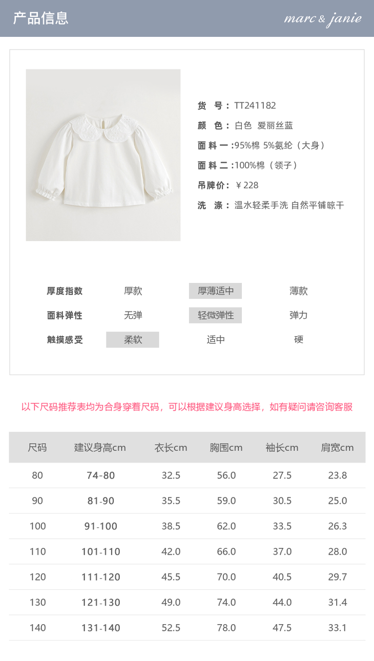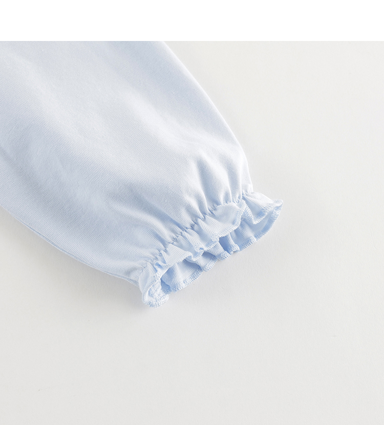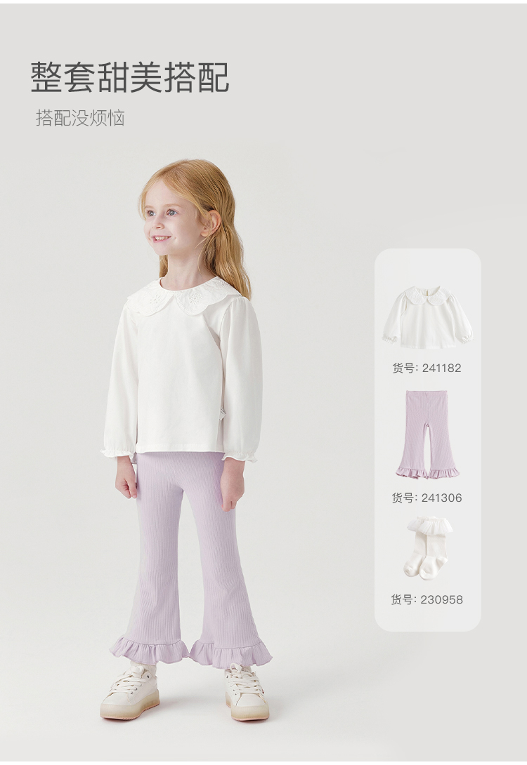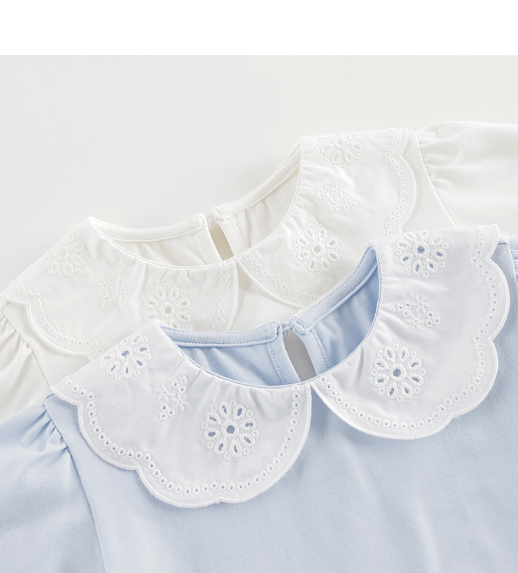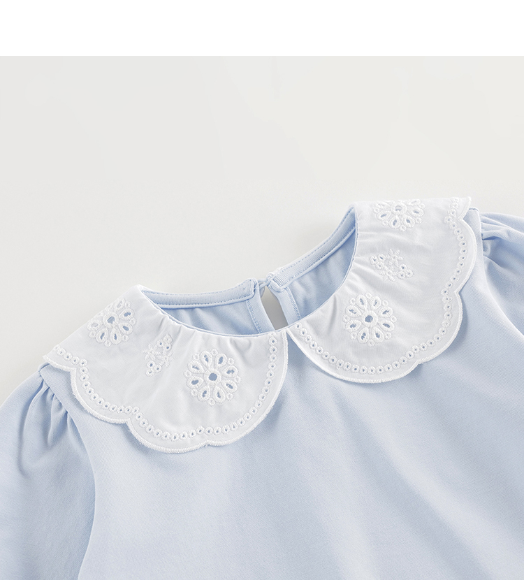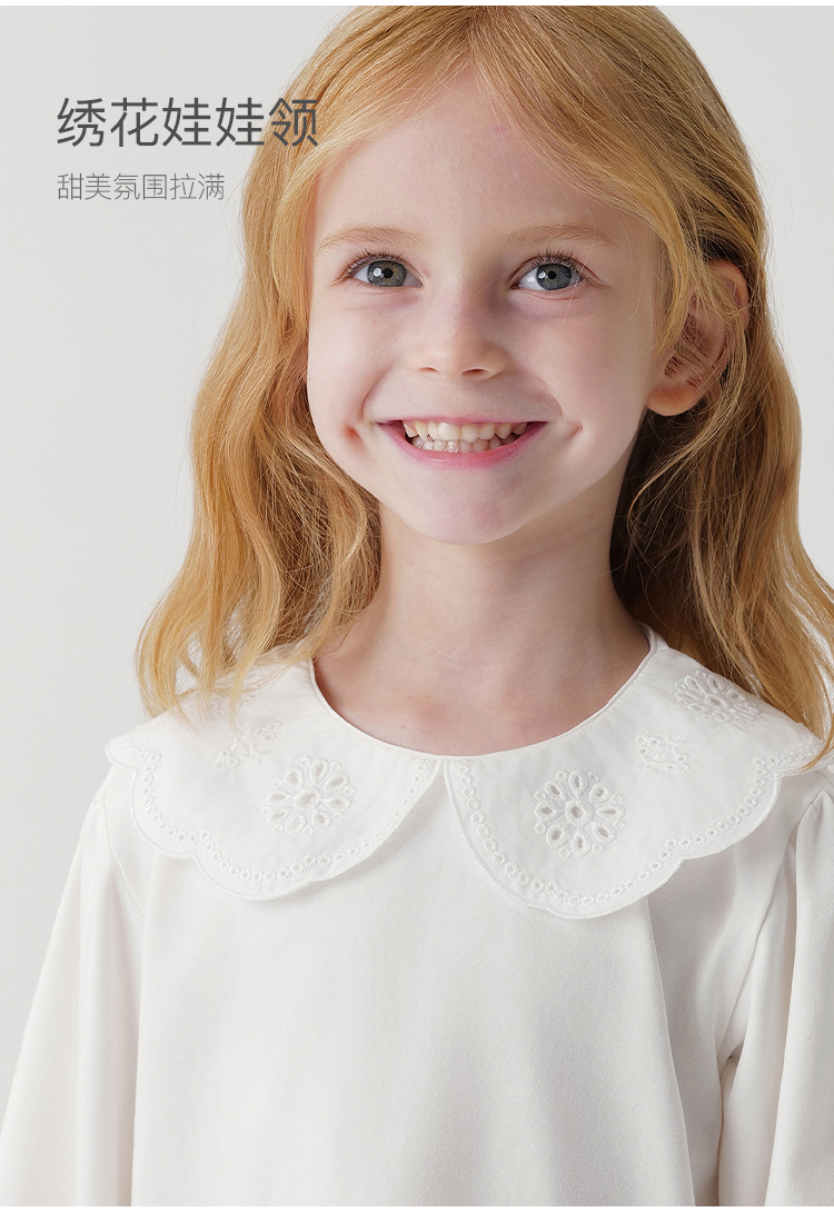 马克珍妮女童镂空大翻领泡泡袖打底衫儿童T恤春秋款上衣241182