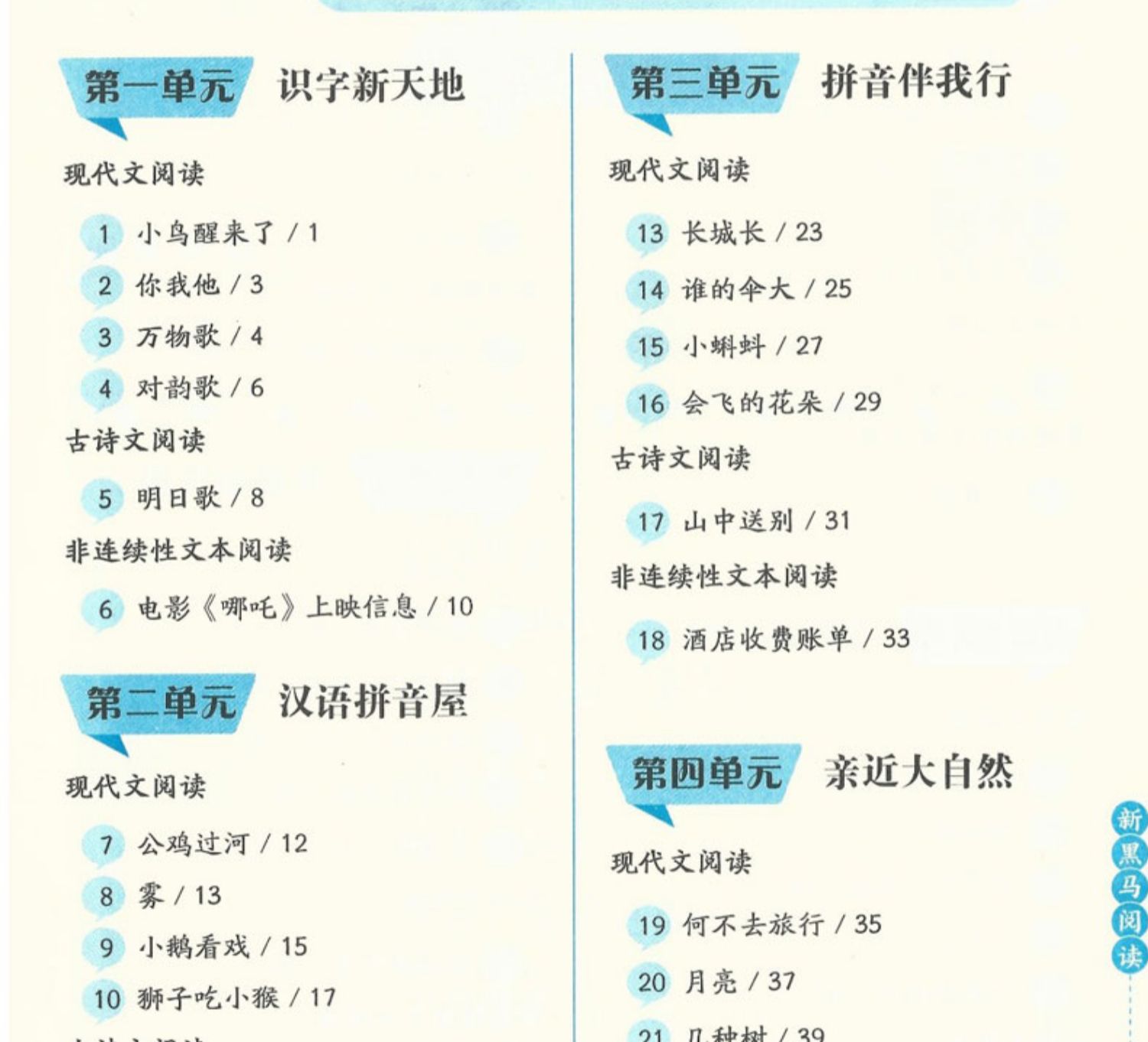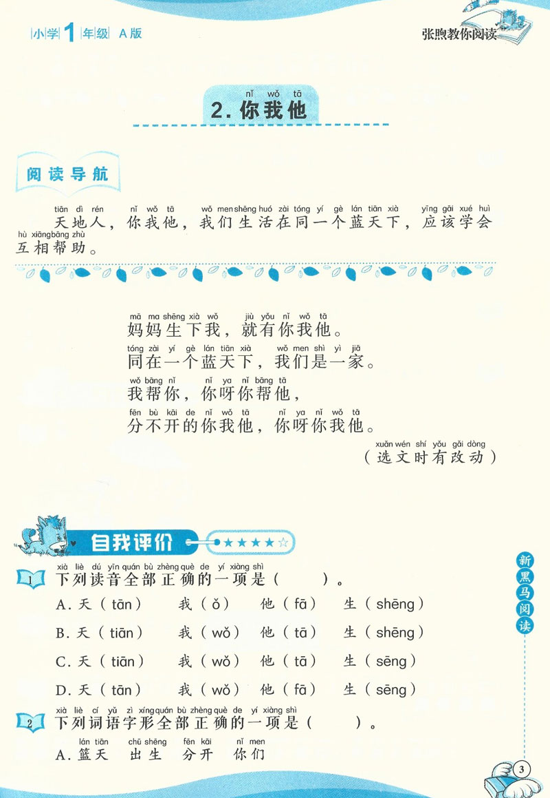 2022新版新黑马张煕教你阅读一年级A版全一册语文部编人教版小学1年级上下册课外新阶梯强化专项训练习题提高答题技巧68所有声阅读