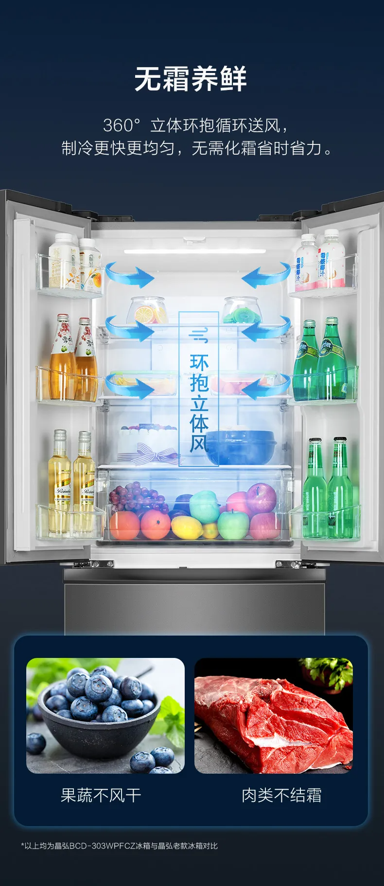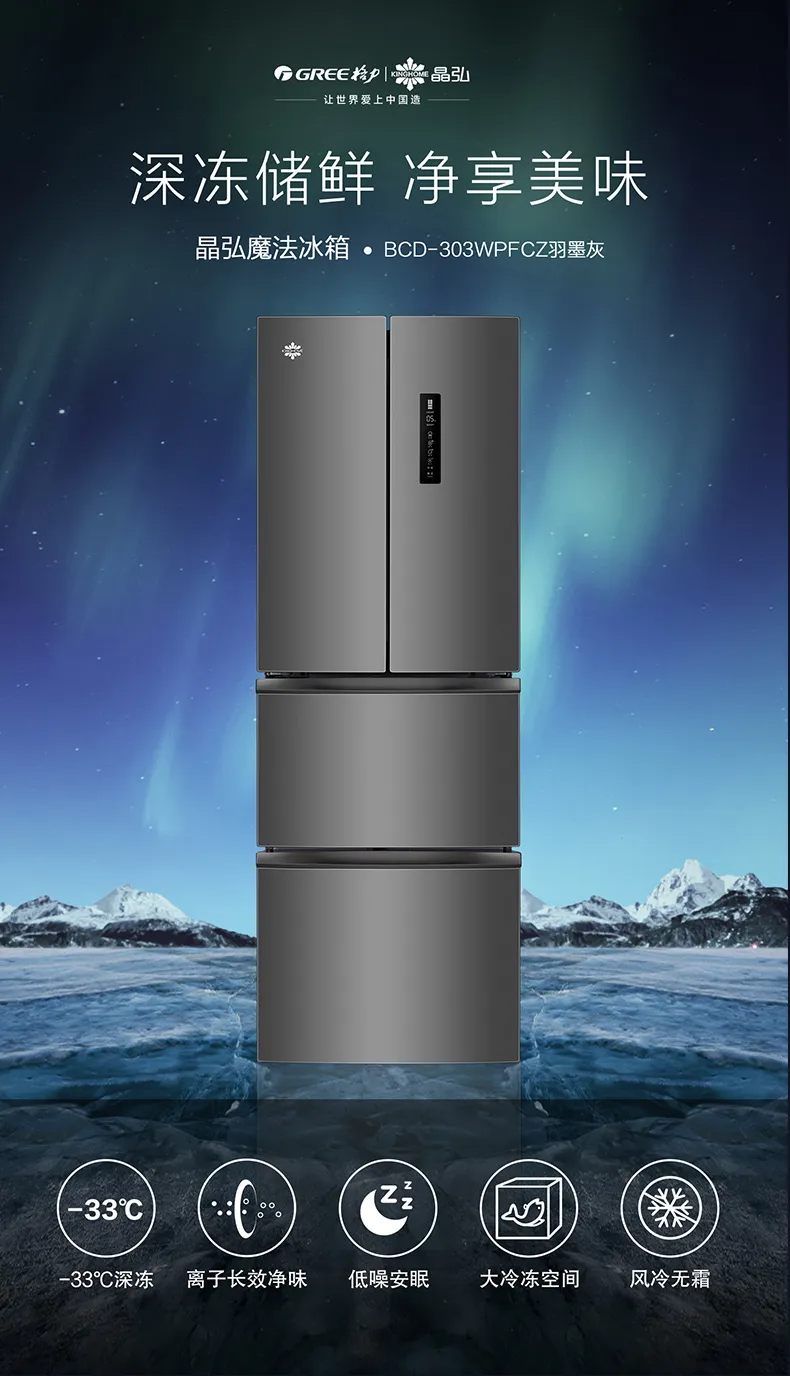 晶弘·多门冰箱 303L BCD-303WPFCZ/羽墨灰