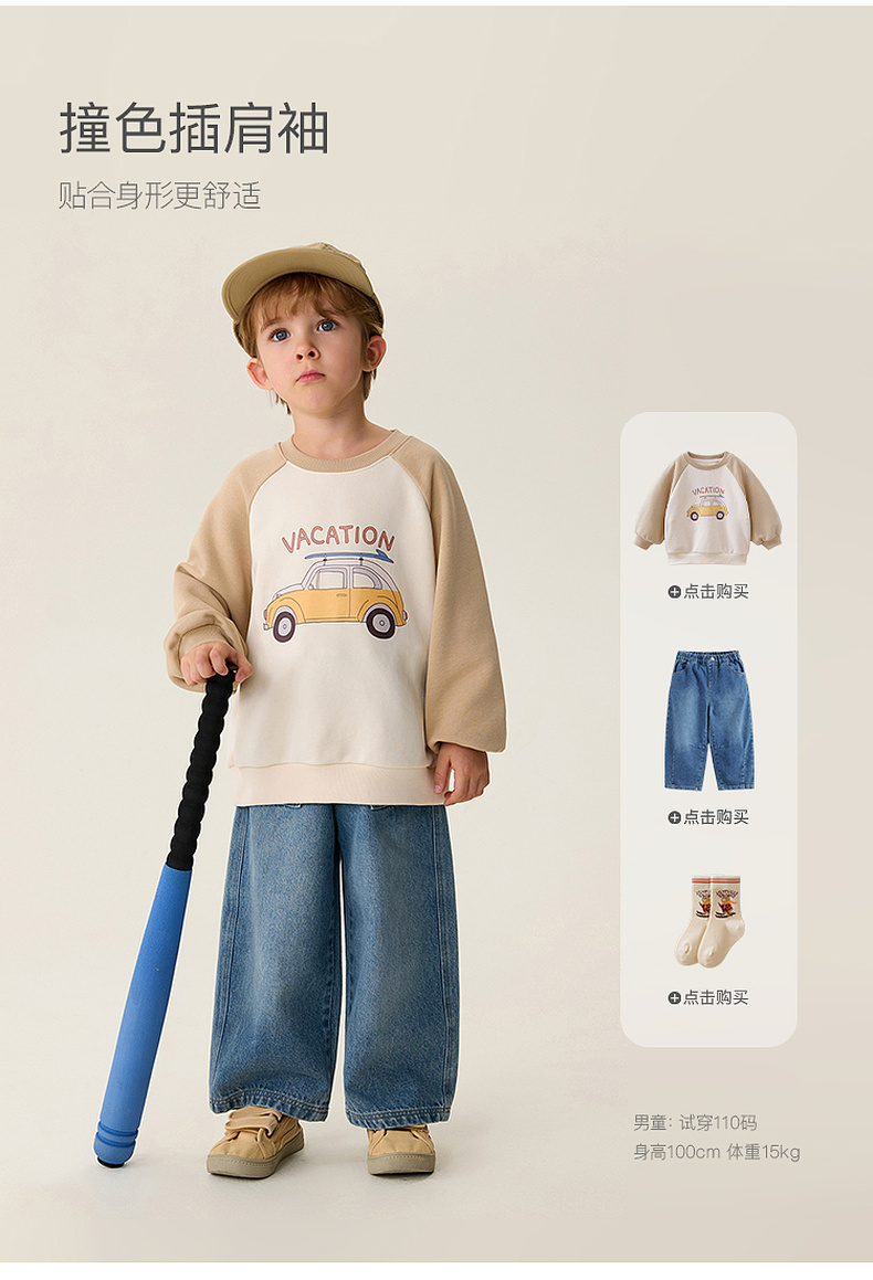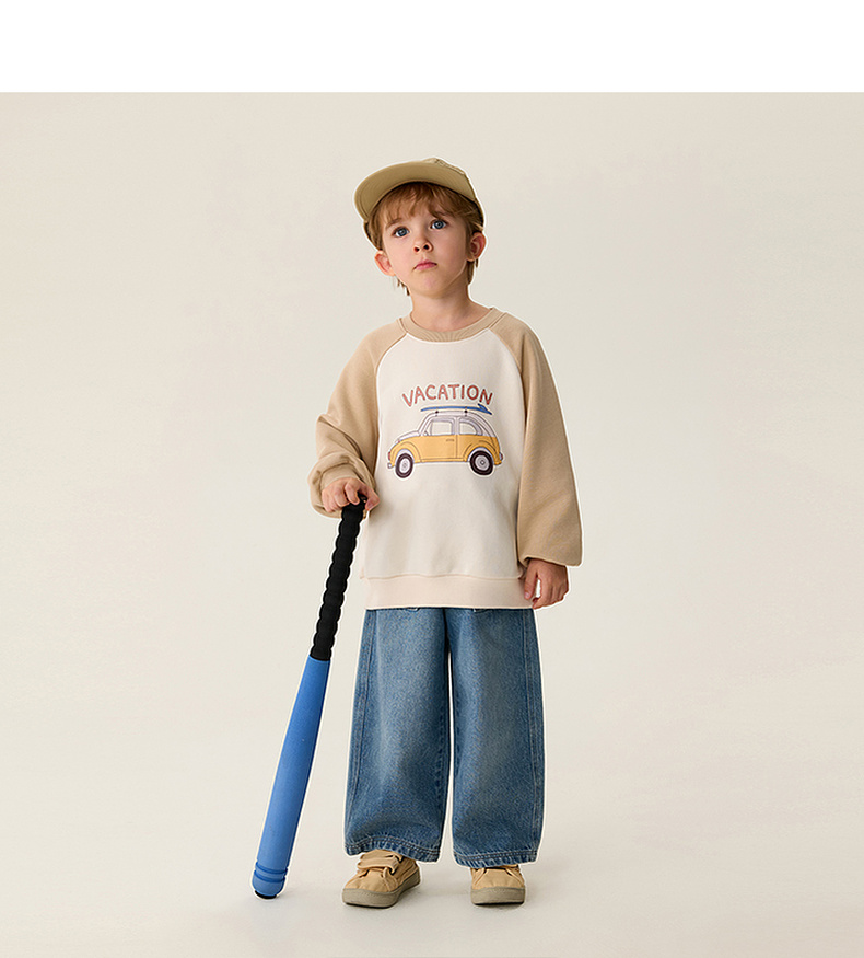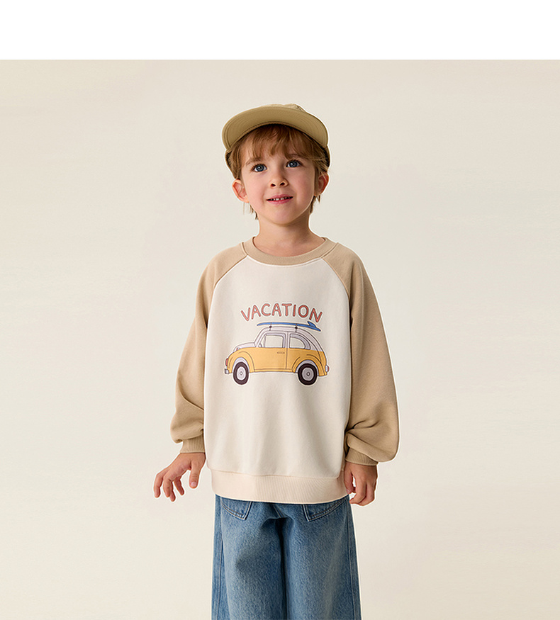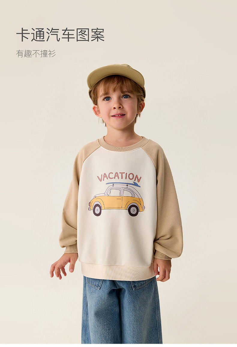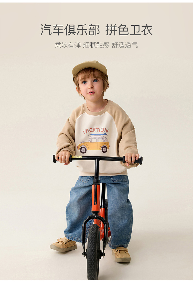 马克珍妮汽车俱乐部男童拼色卫衣宝宝套头衫2026年春装新款560009