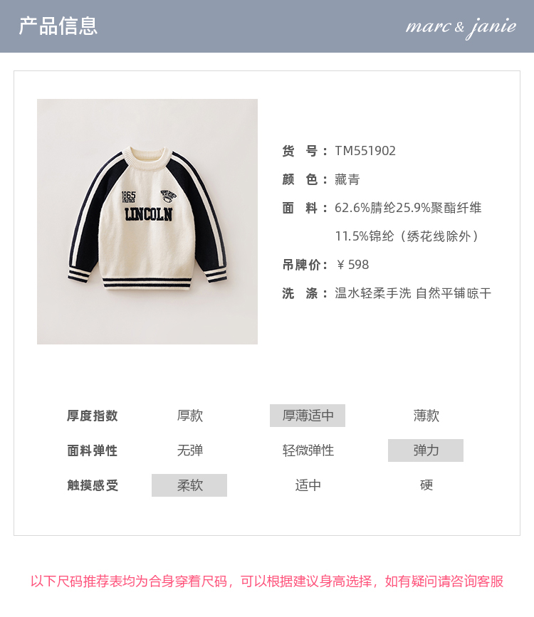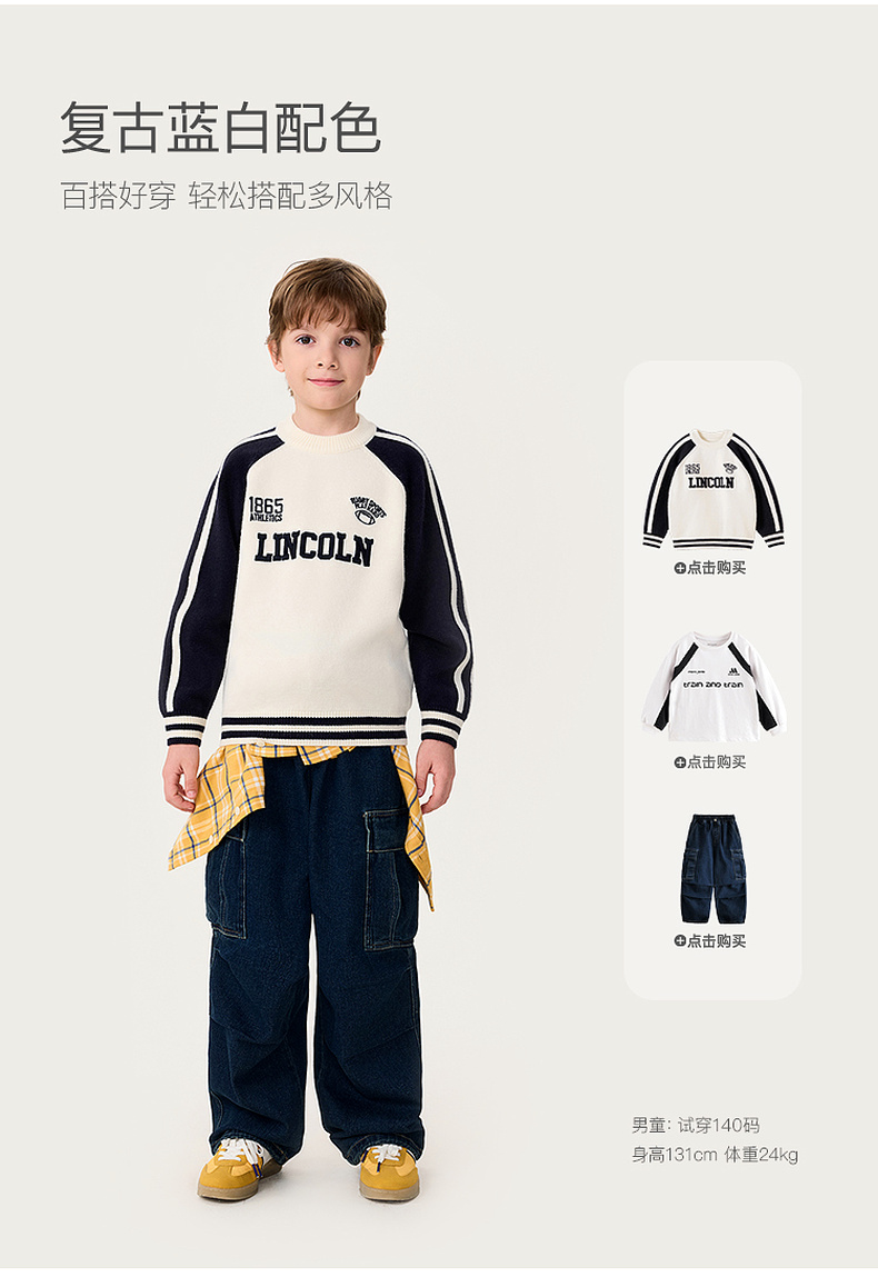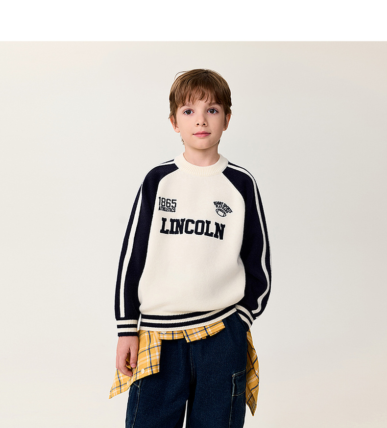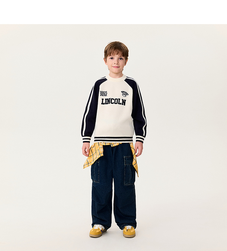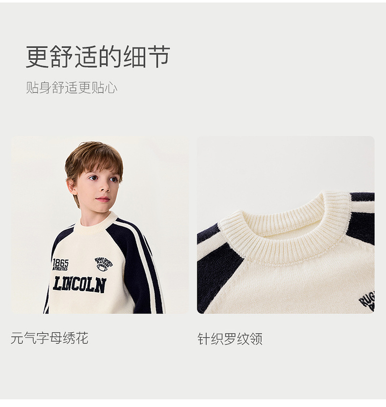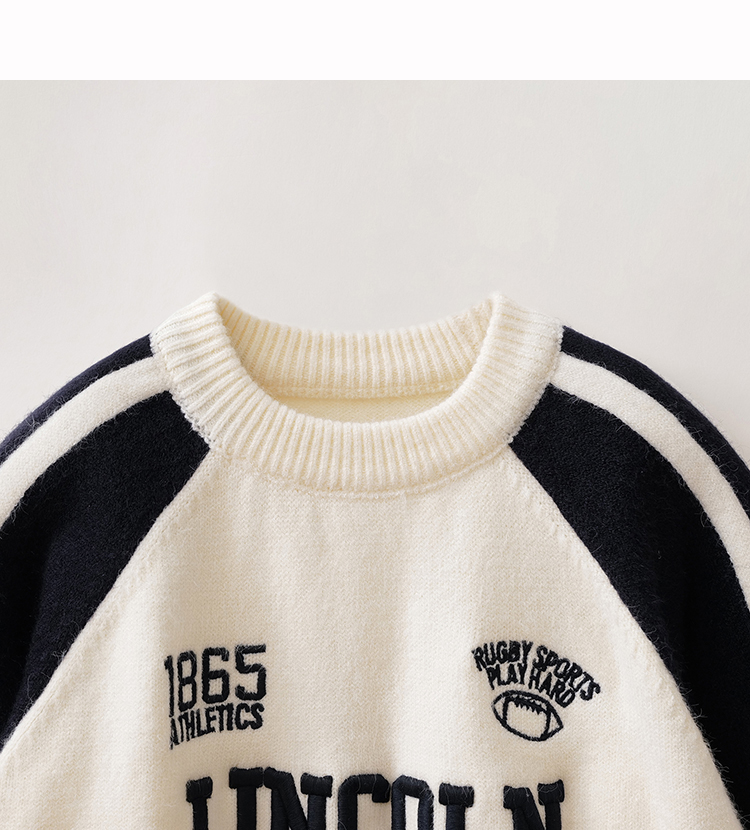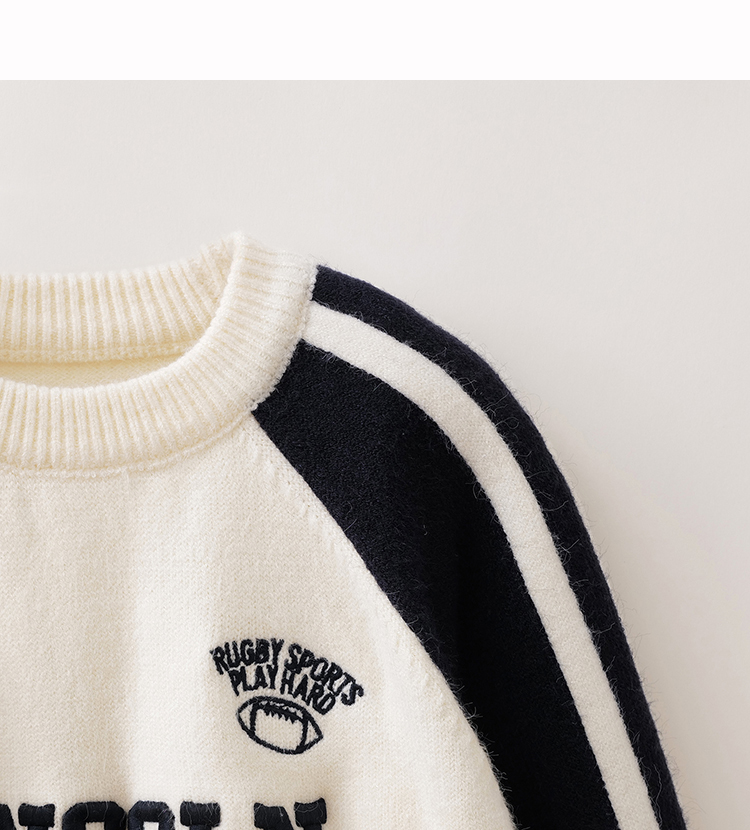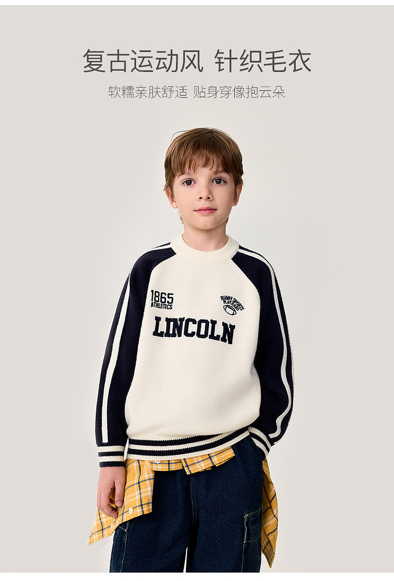 马克珍妮男童复古运动风软糯针织衫2025年冬装新款551902