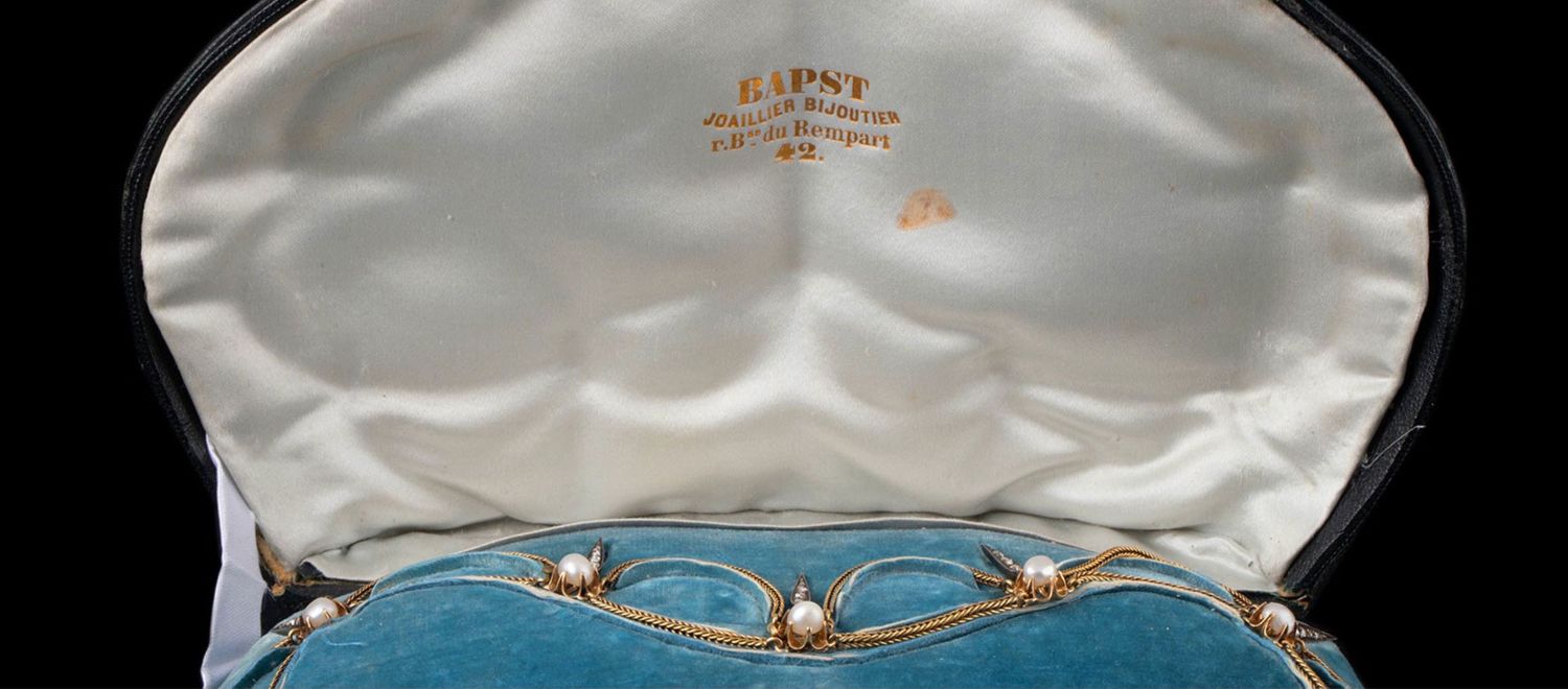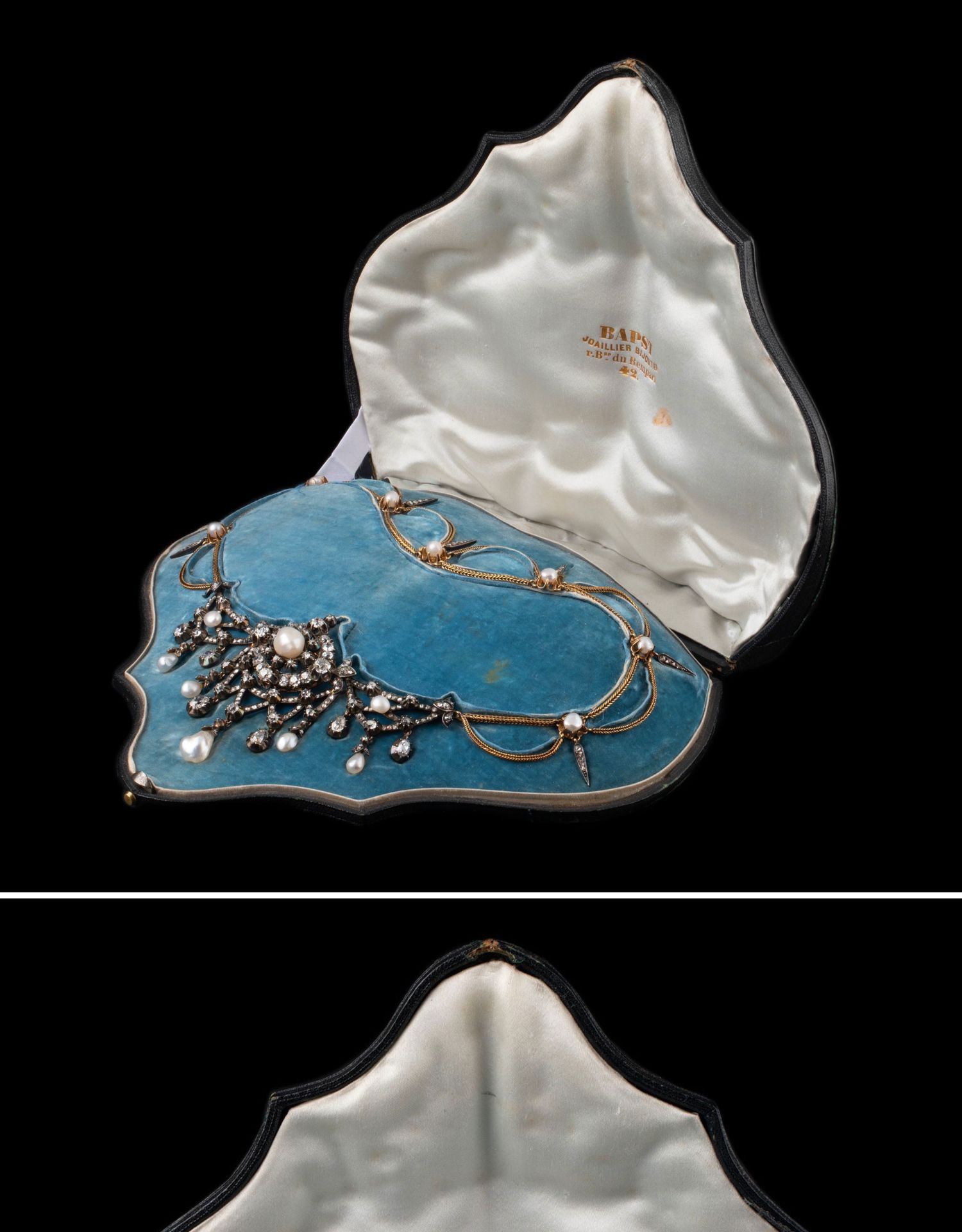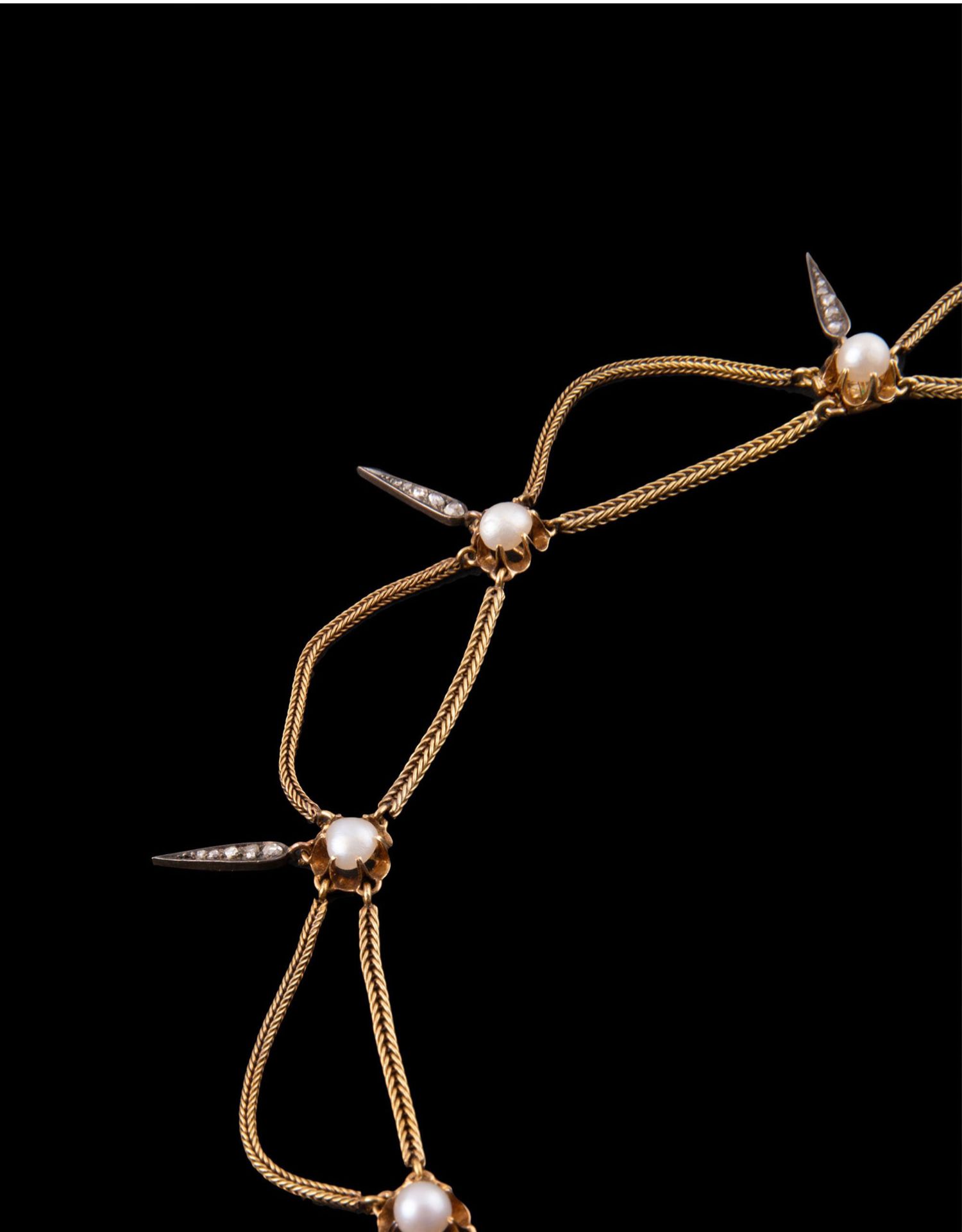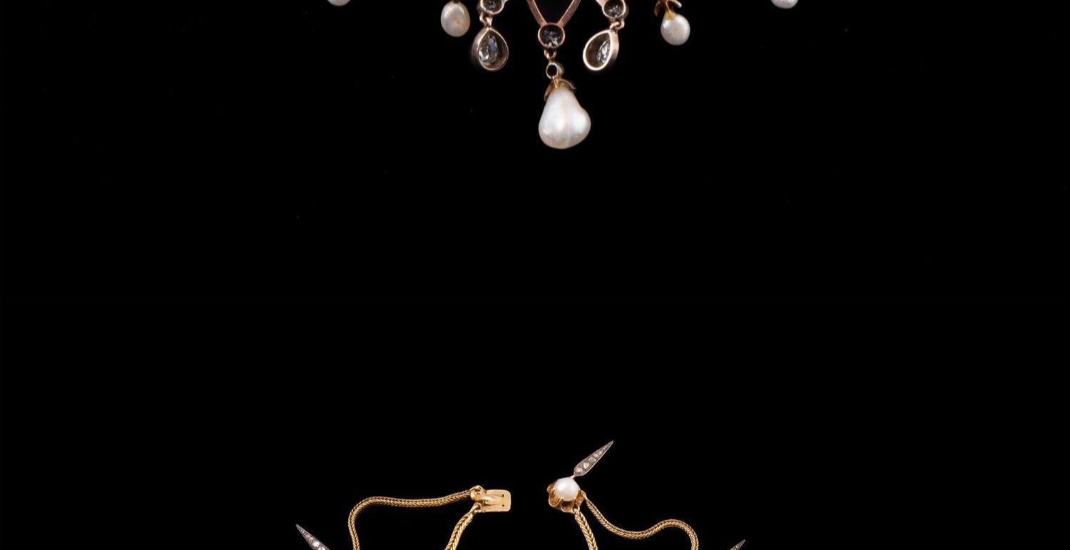 独角鹿西洋古董首饰法国珍珠钻石金银叠打可拆卸垂花帷幔式项链