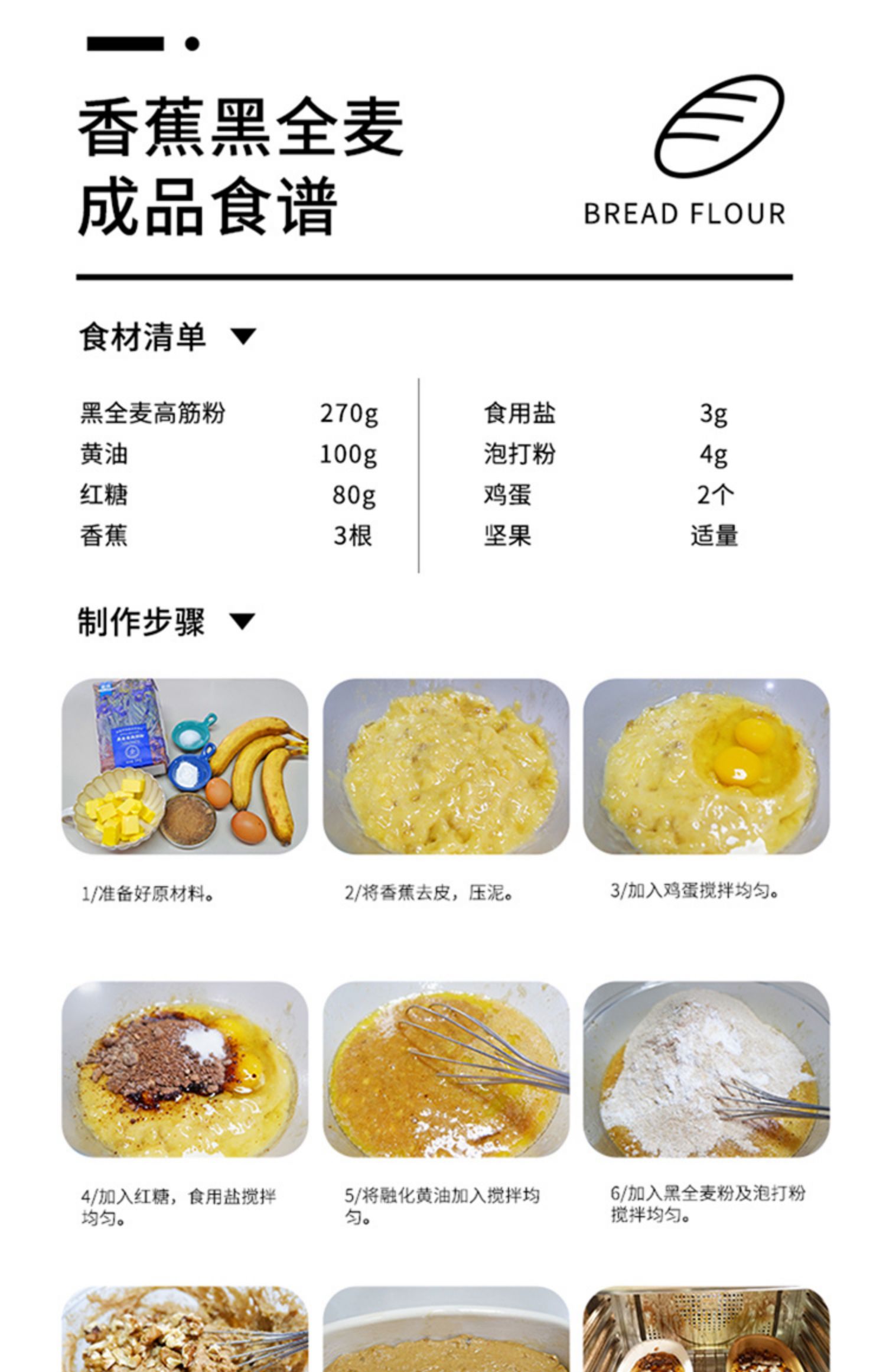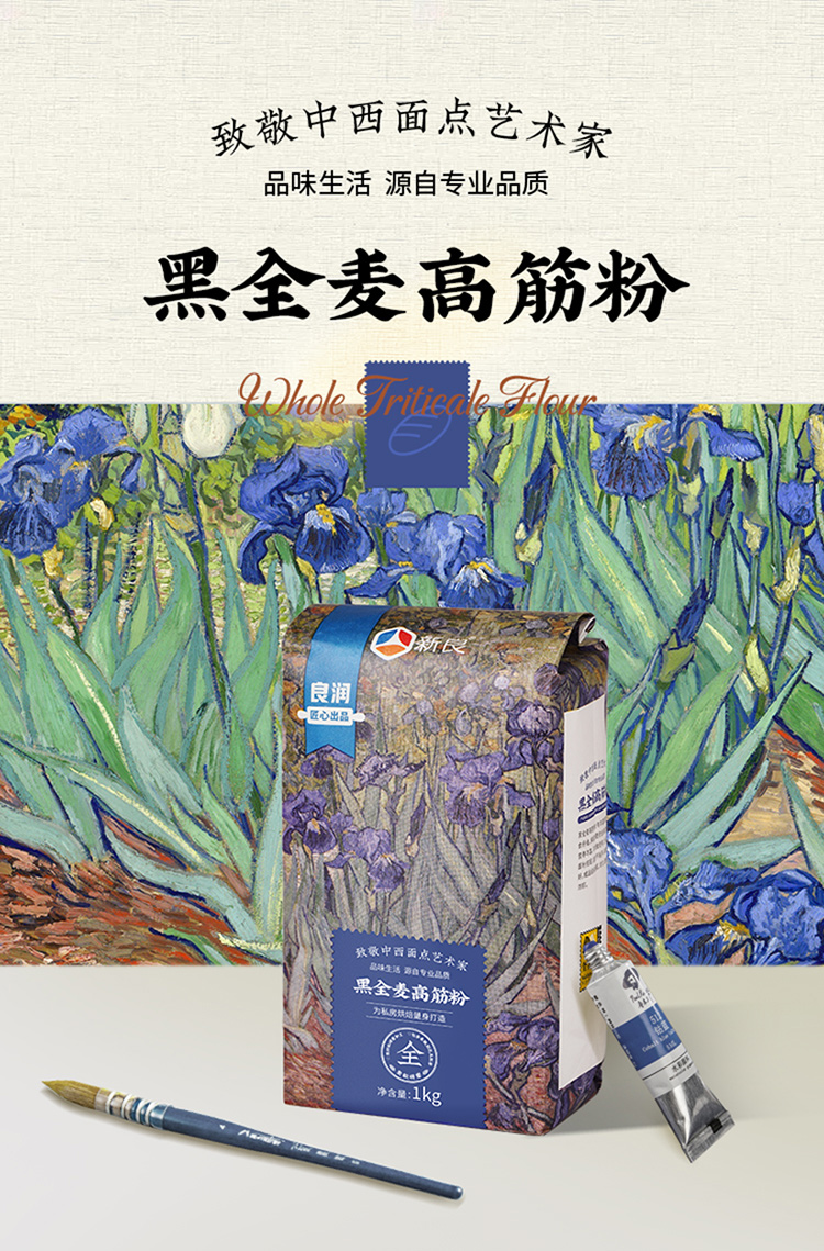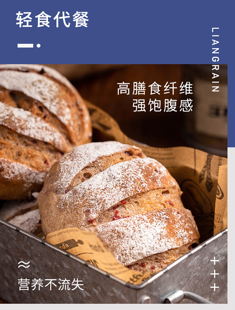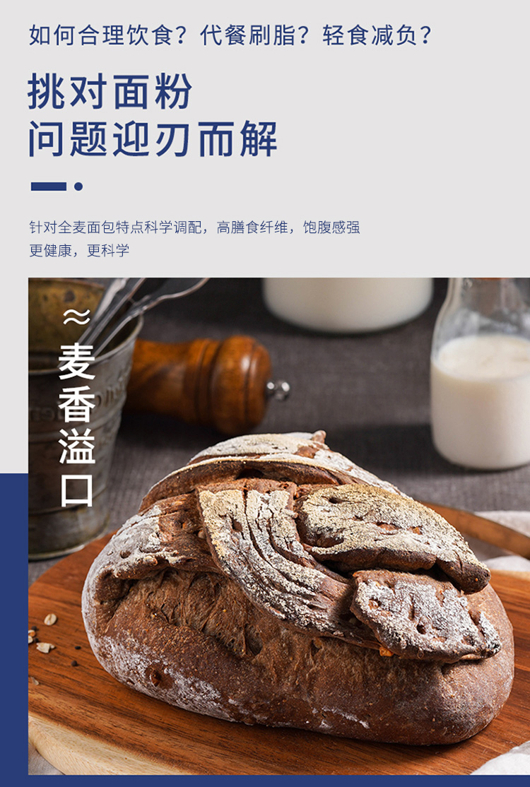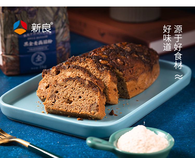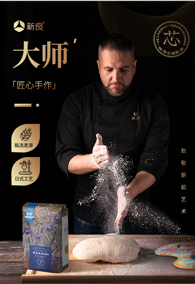 新良大师系列黑全麦高筋粉1kg*2 含麦麸黑全麦高筋面粉面包粉烘焙