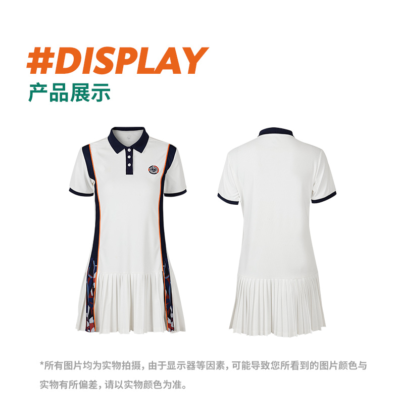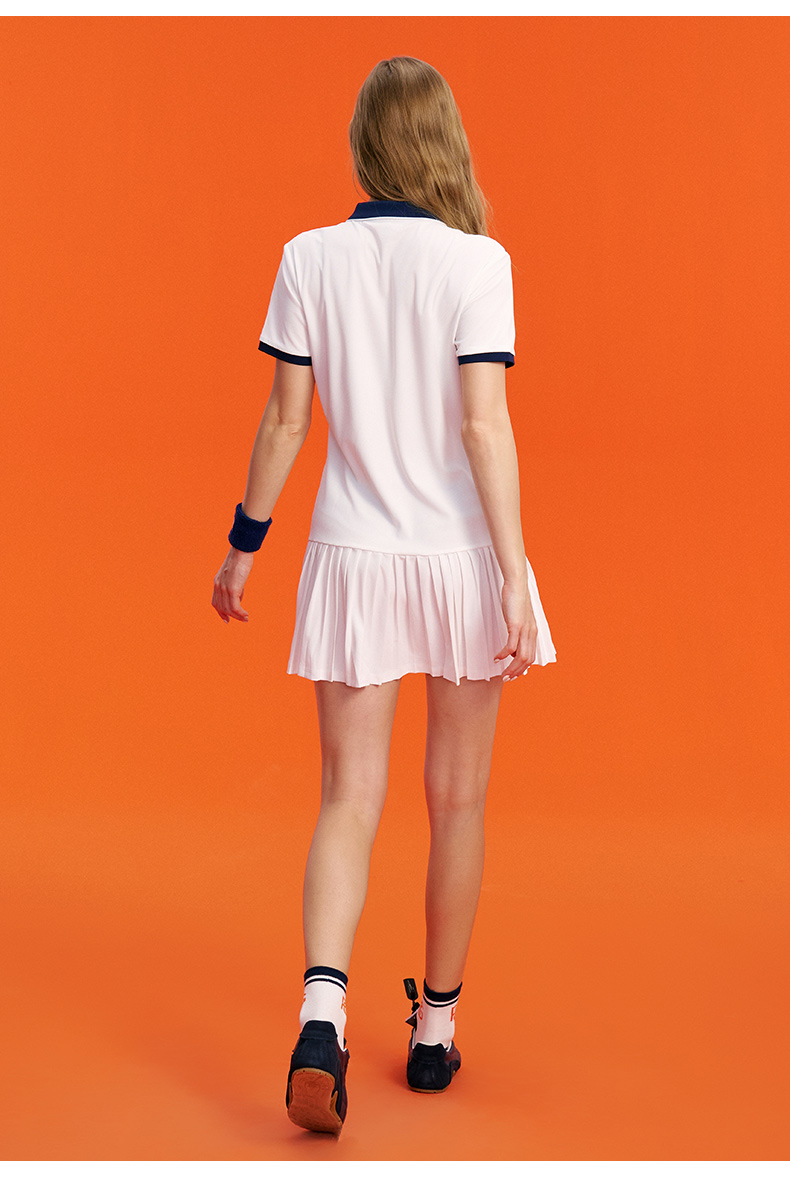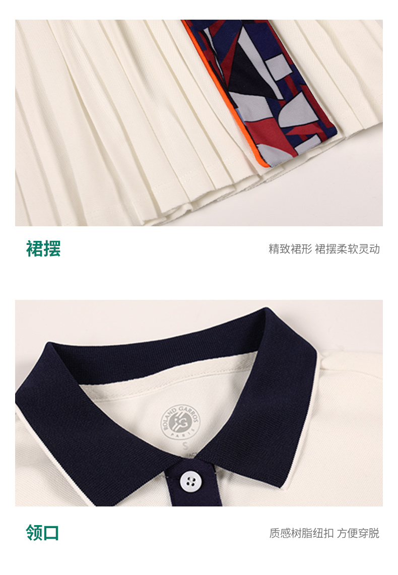 罗兰加洛斯女士连衣裙夏季新款polo领学院风收腰运动休闲百褶裙