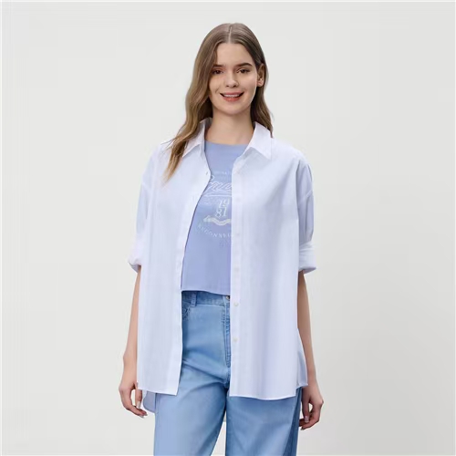 佐丹奴女装26年新款全棉液氨侧抽褶宽松版型短袖T恤衫05326204