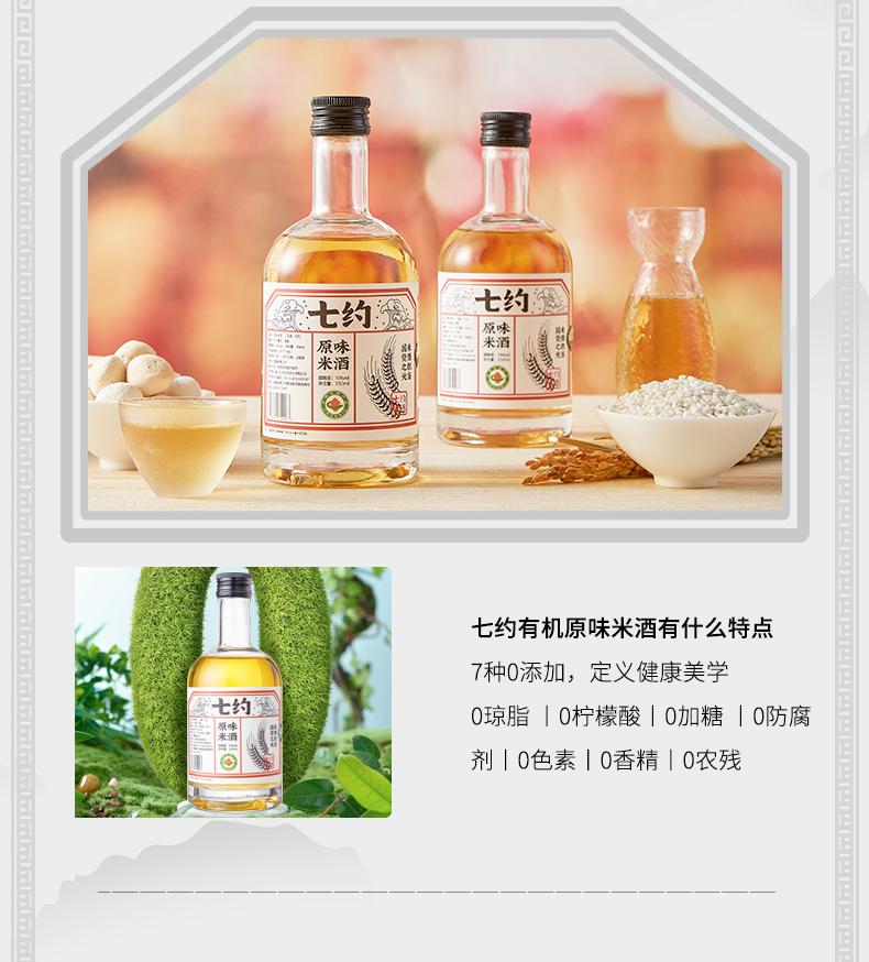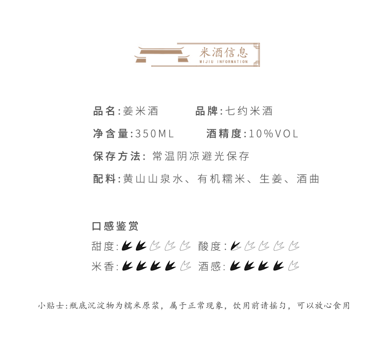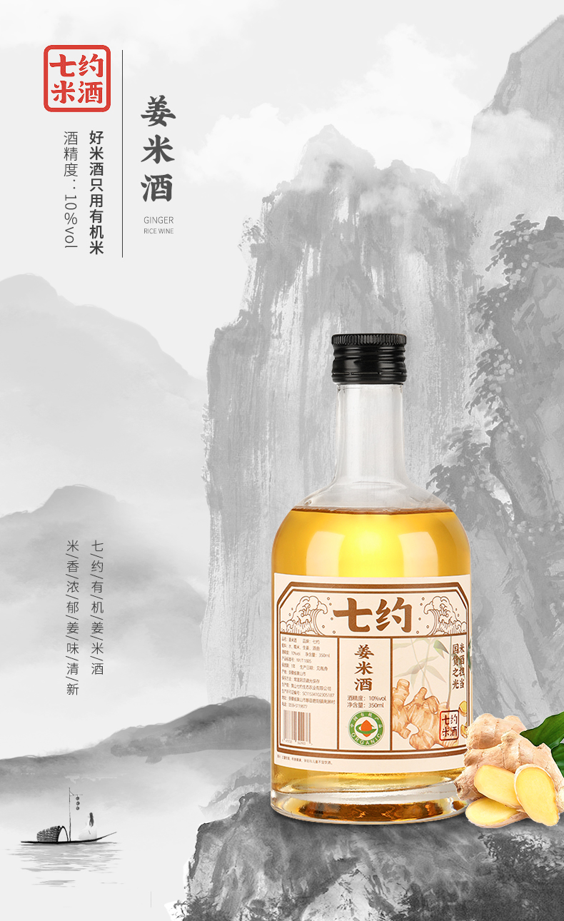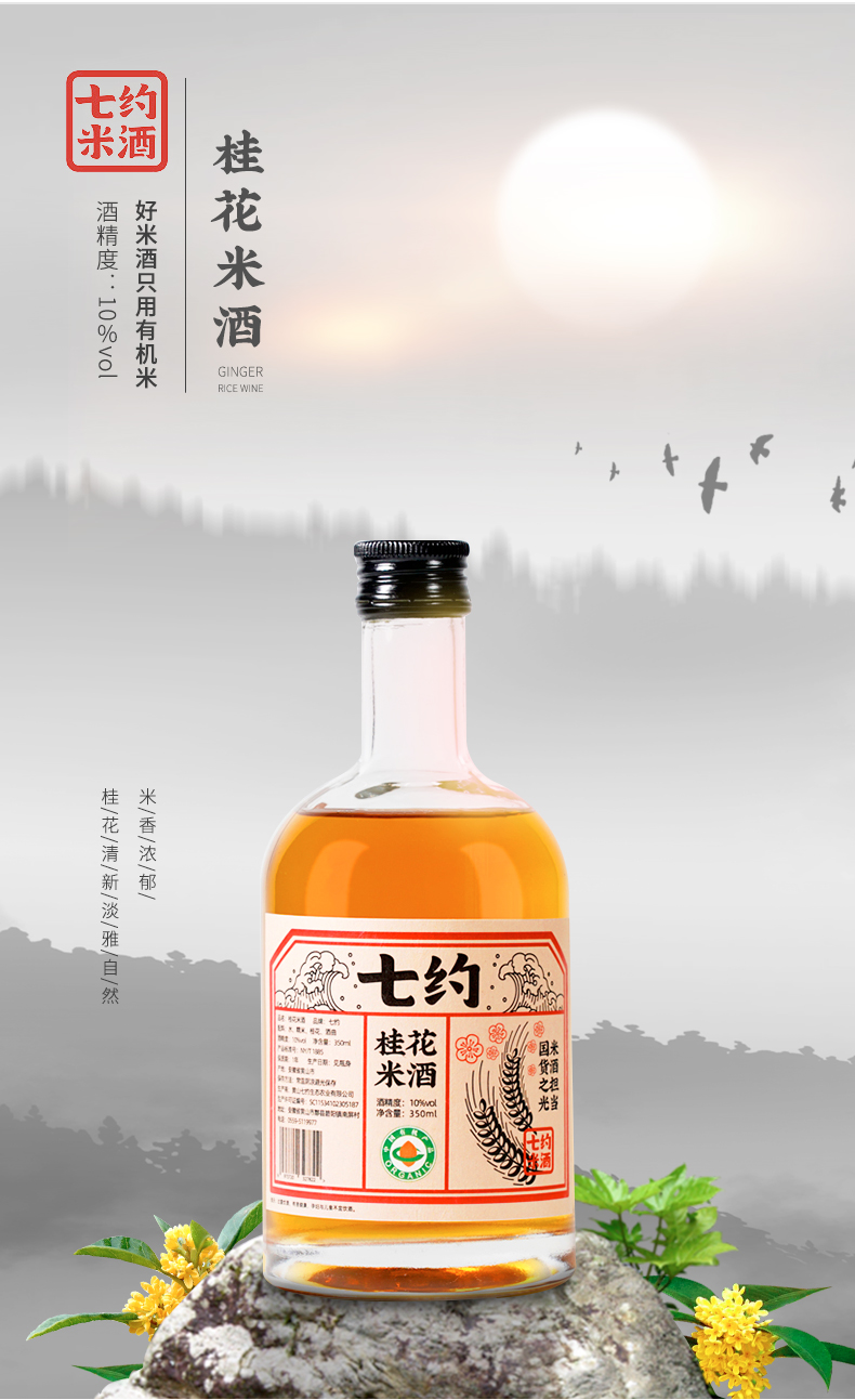丨有机丨10度精酿米酒系列 姜米酒 桂花米酒 350ml/瓶 酒精度10%VOL 七约农场自种有机粮食自己酿制 无添加剂