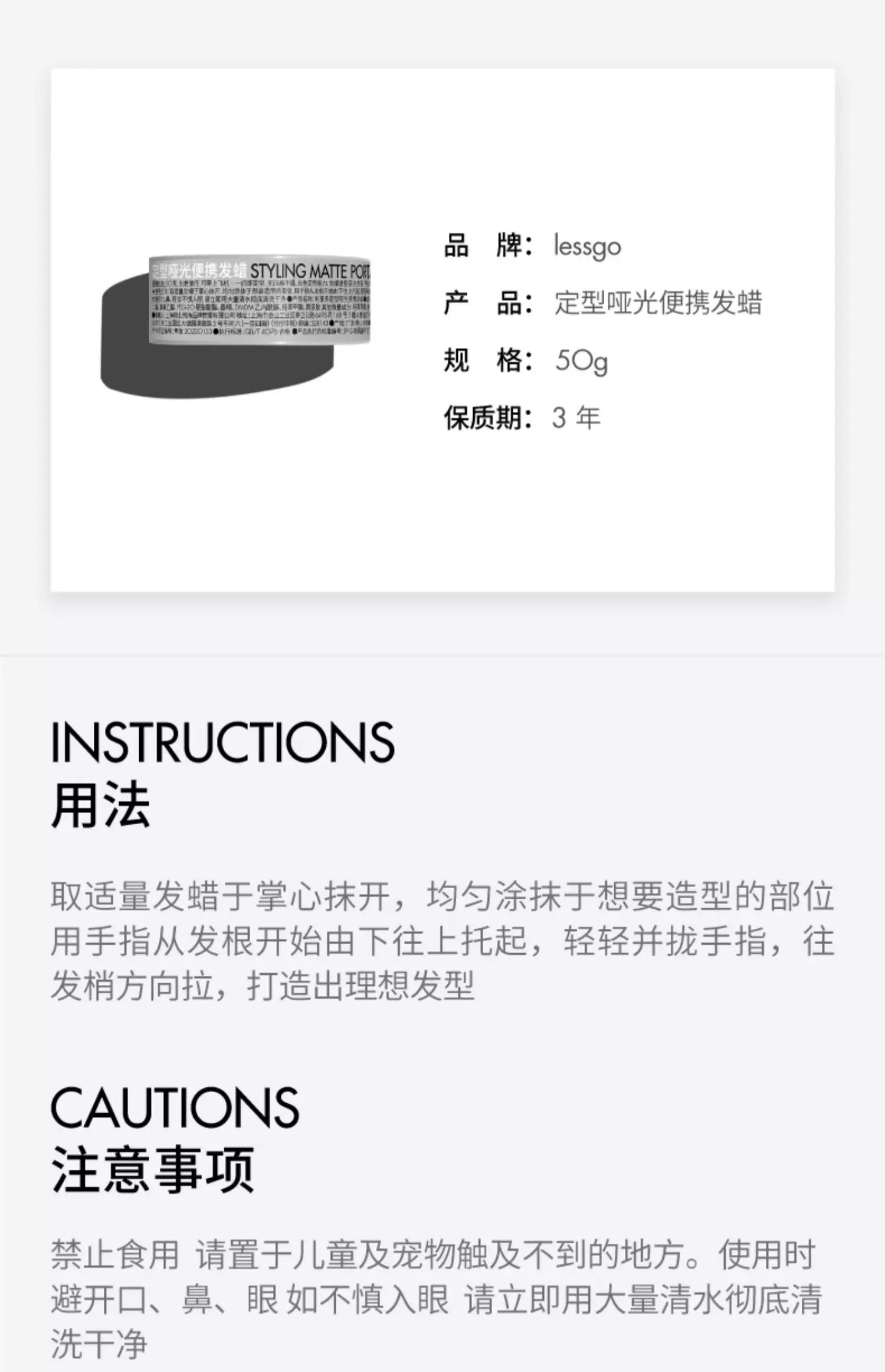 lessgo利事多男士发蜡50g 持久定型