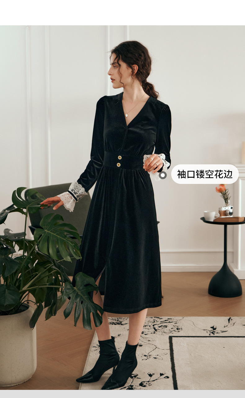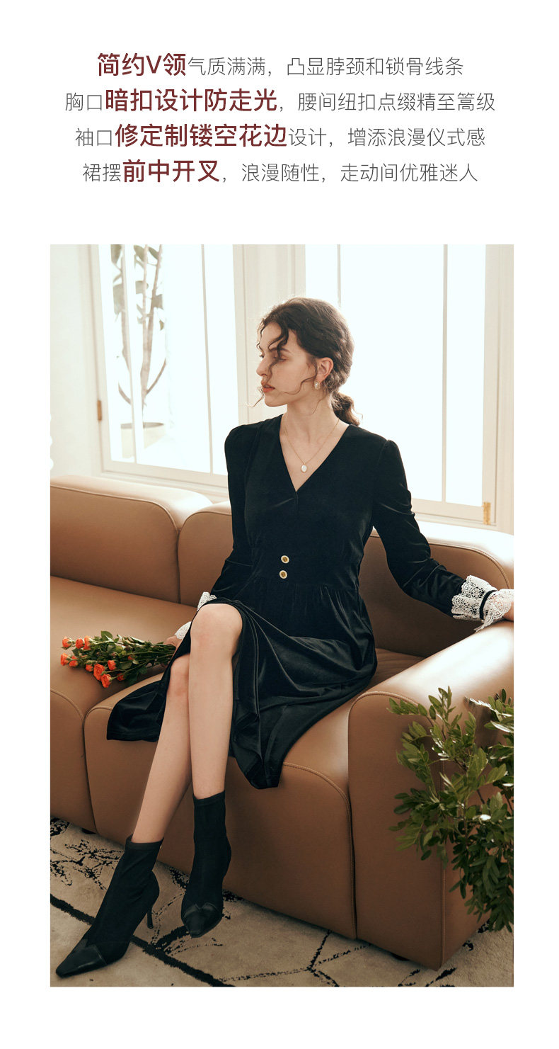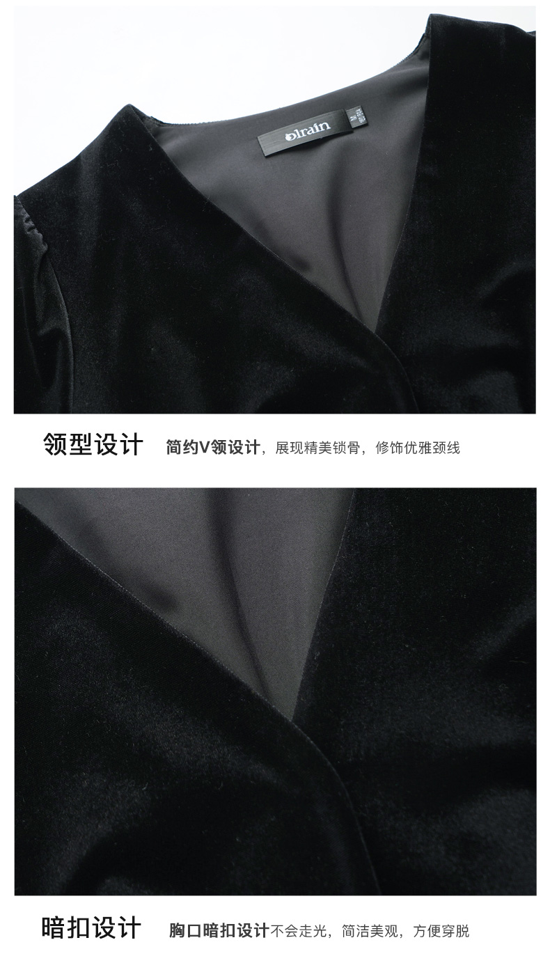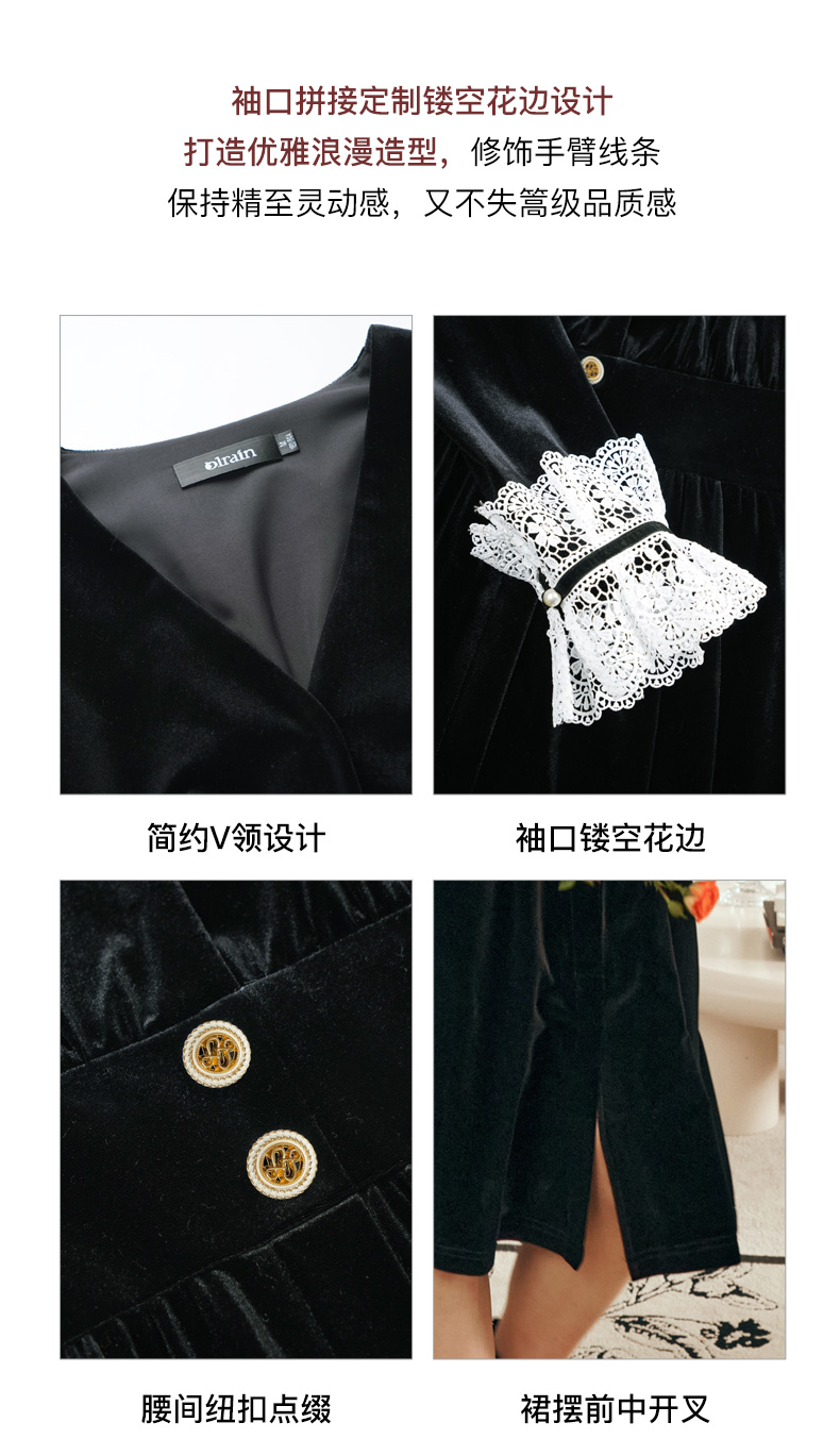 OLrain欧芮儿法式黑色连衣裙女春2025年新款气质V领显瘦裙子