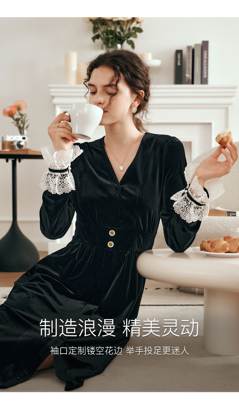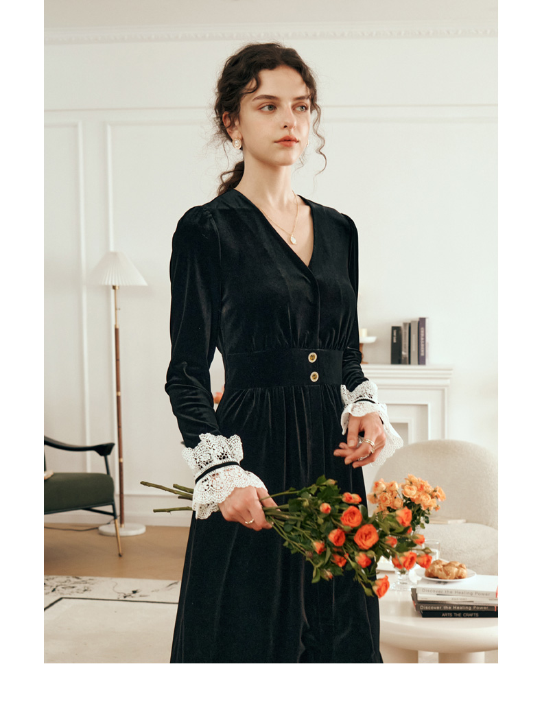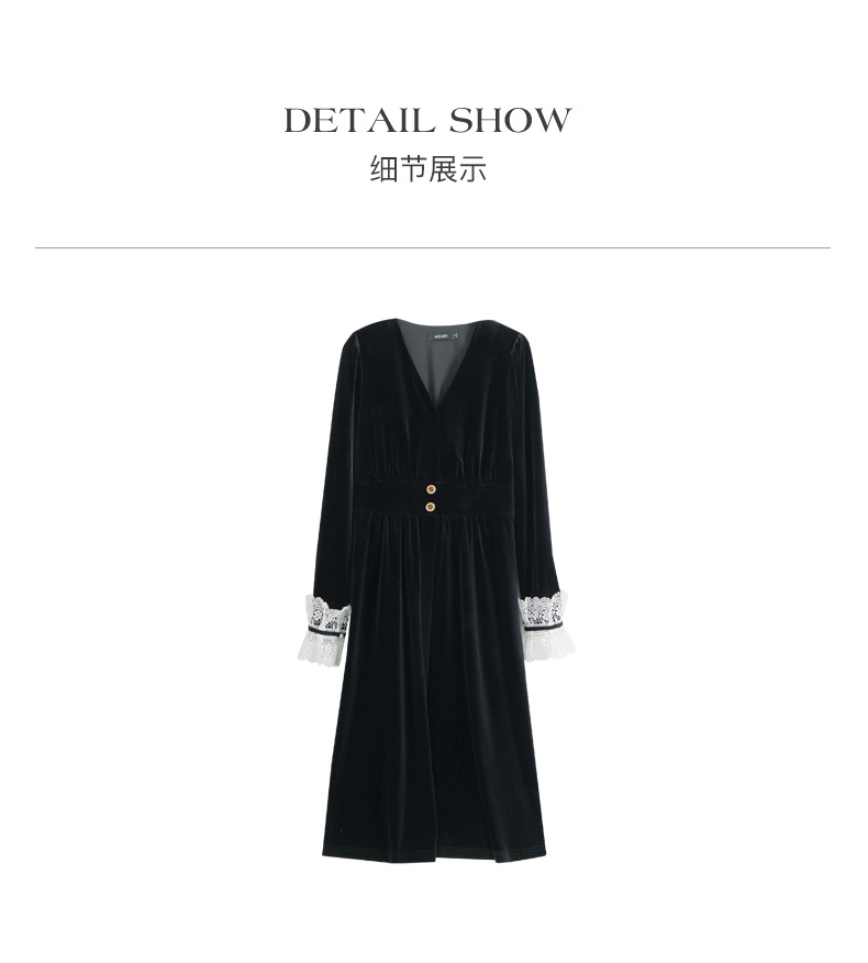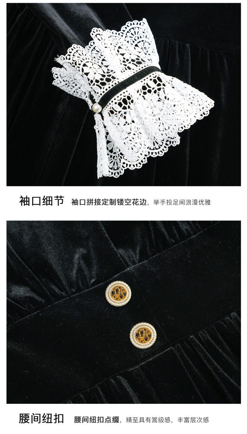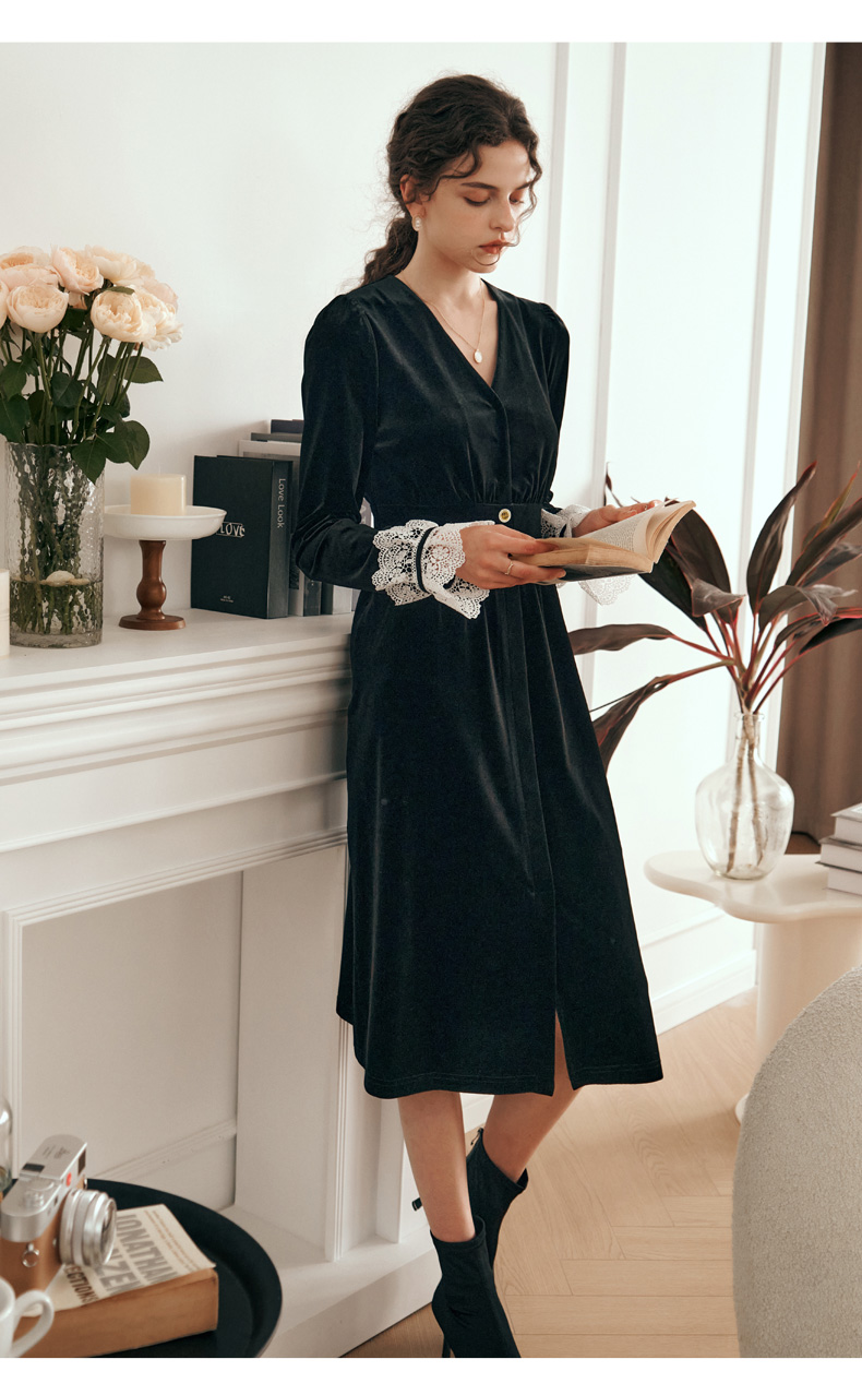 OLrain欧芮儿法式黑色连衣裙女春2025年新款气质V领显瘦裙子