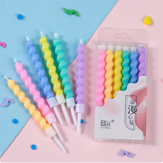 【浪漫心旋】扭扭彩色蜡烛 6支装 小清新彩色粗蜡烛 生日蛋糕蜡烛 扭扭蜡烛
