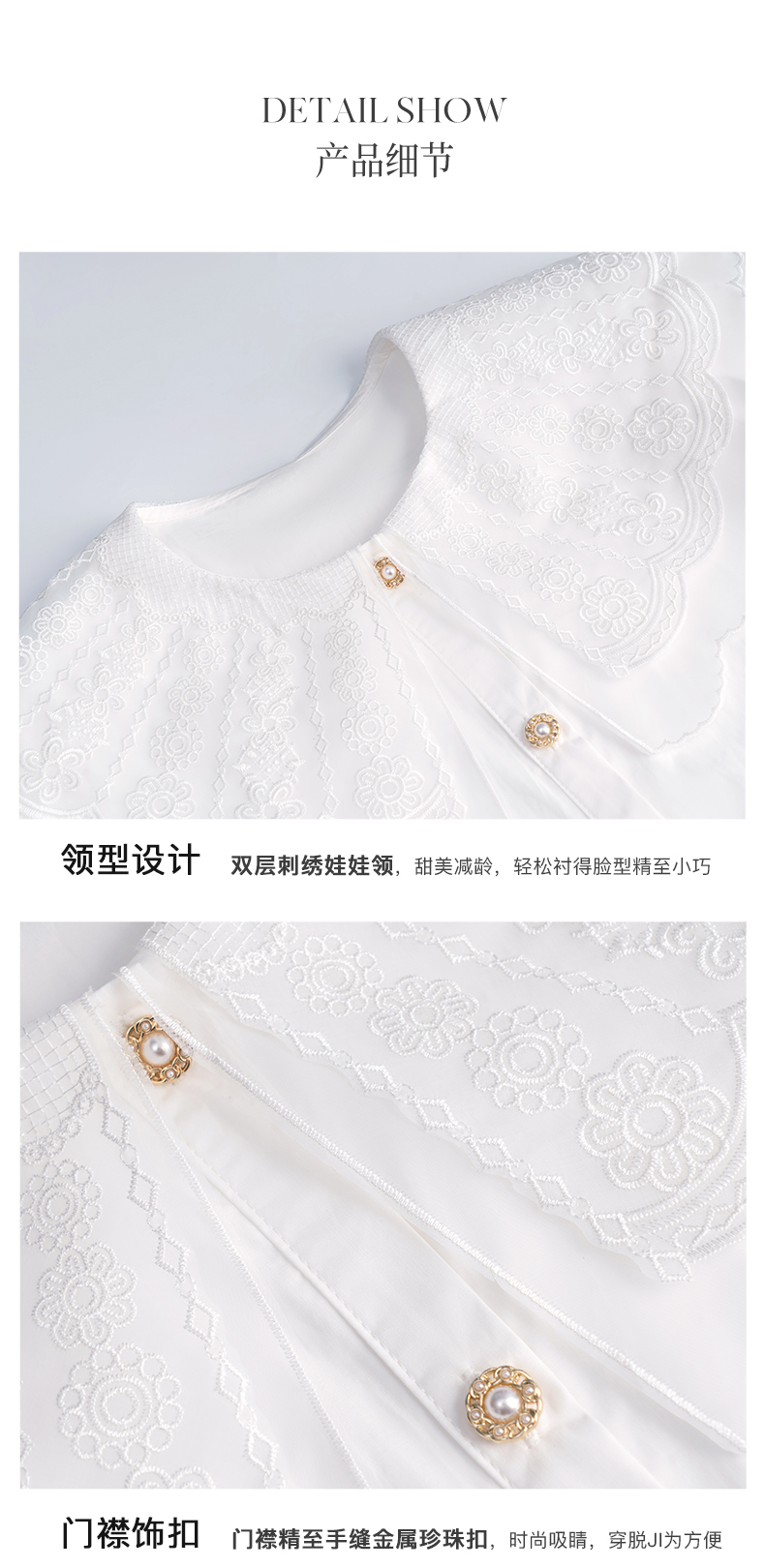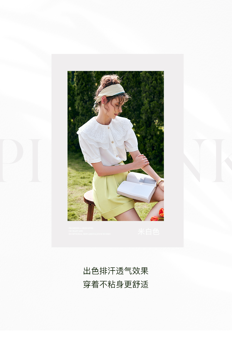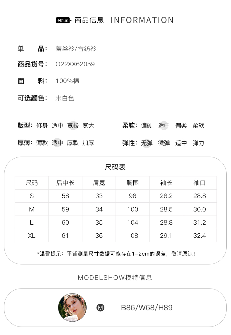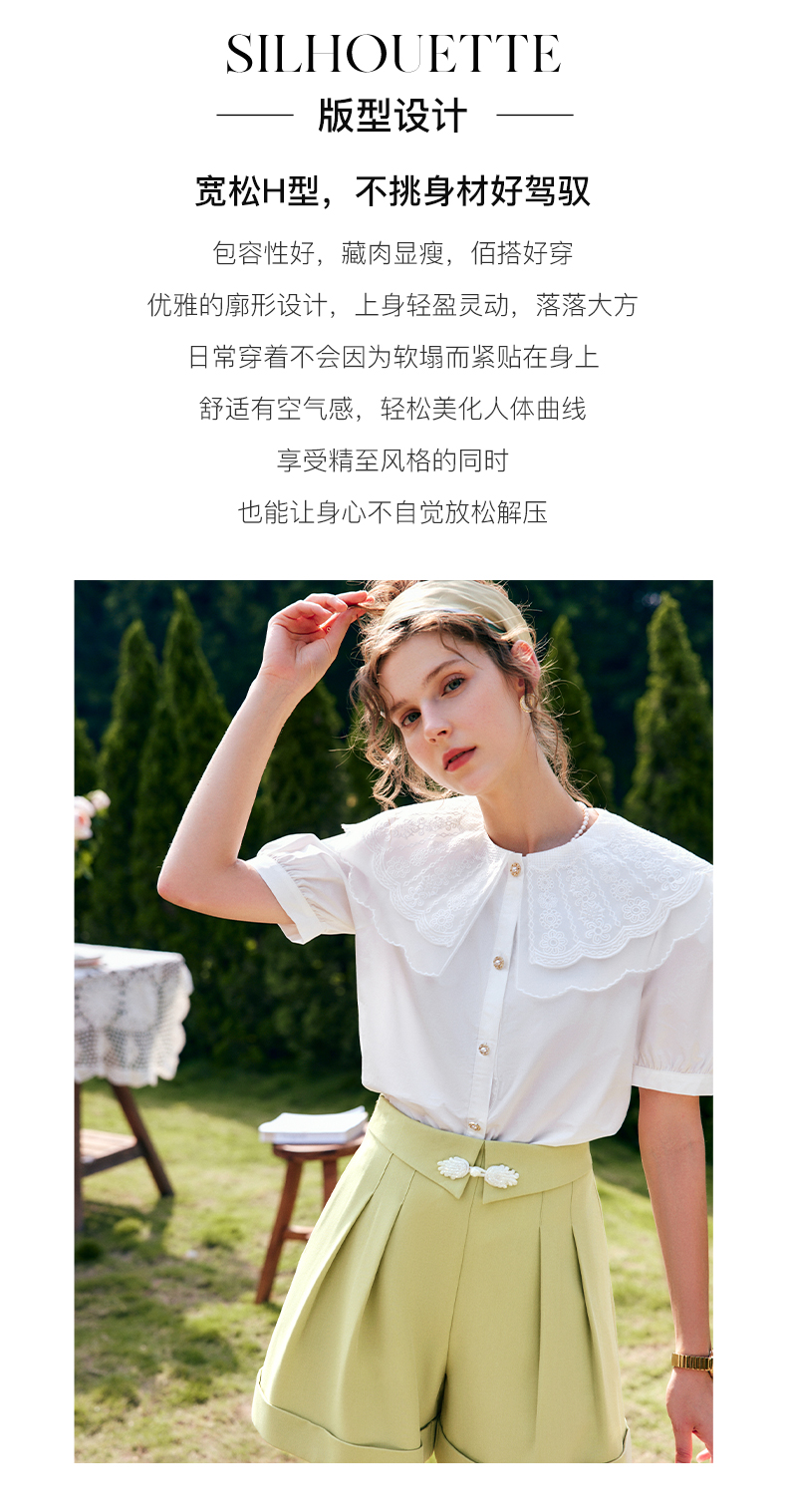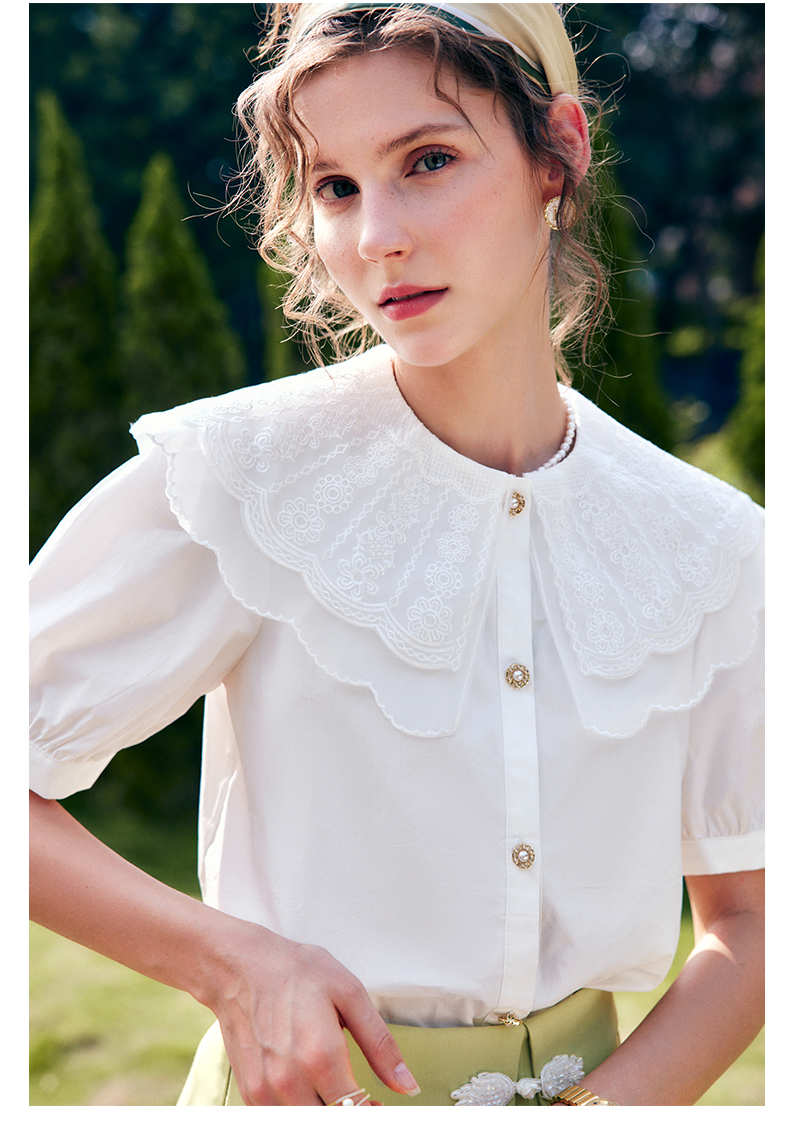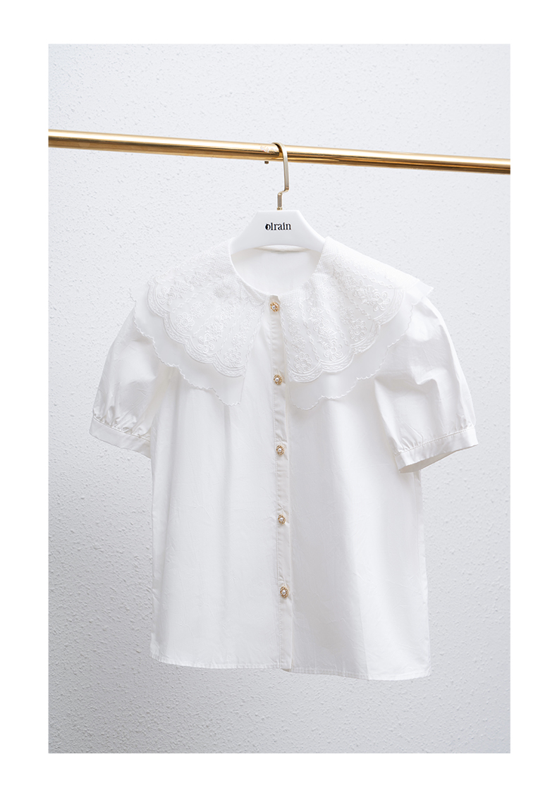 欧芮儿OLrain法式白色雪纺蕾丝衫女夏季2022新款宫廷风甜美小衫