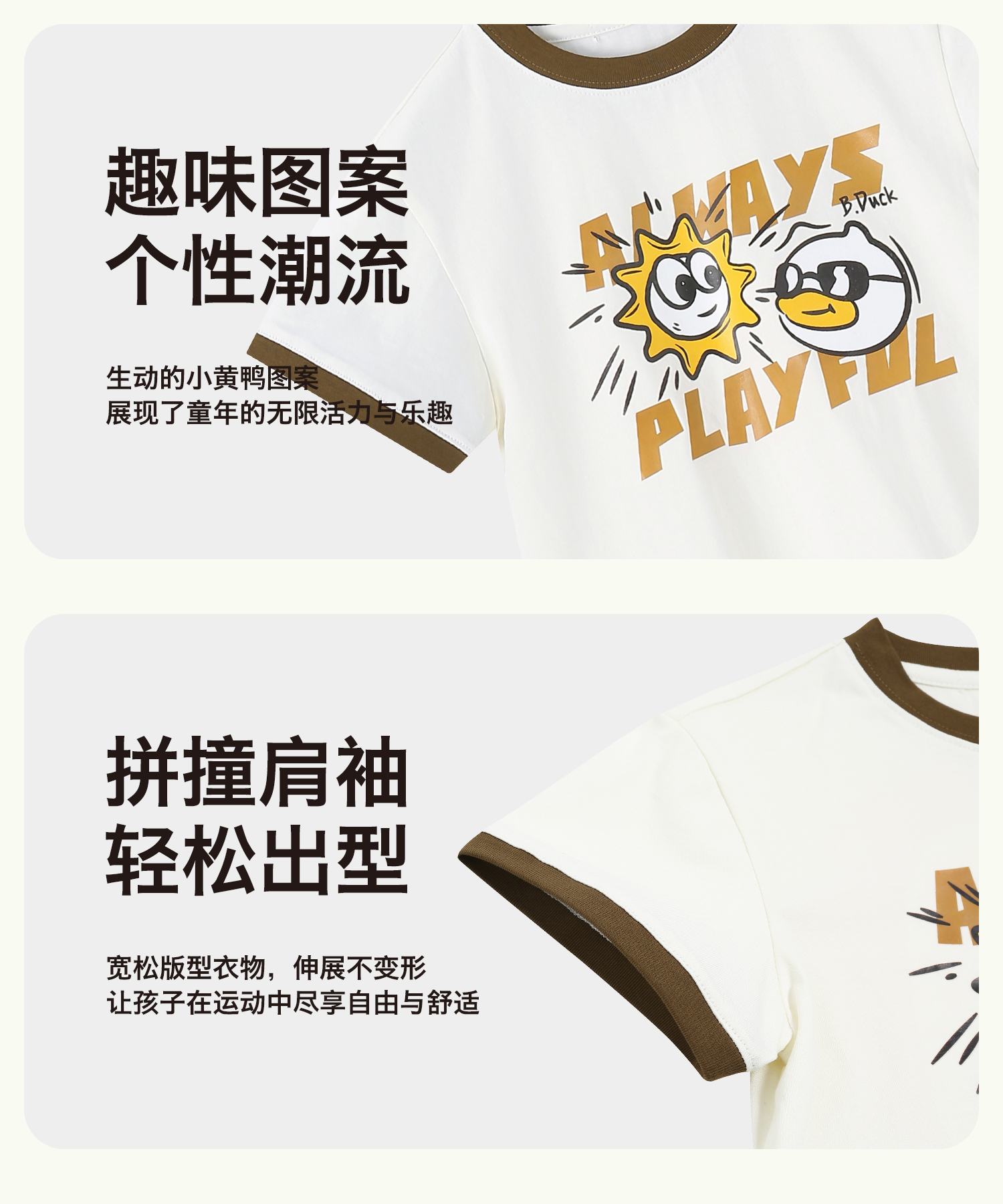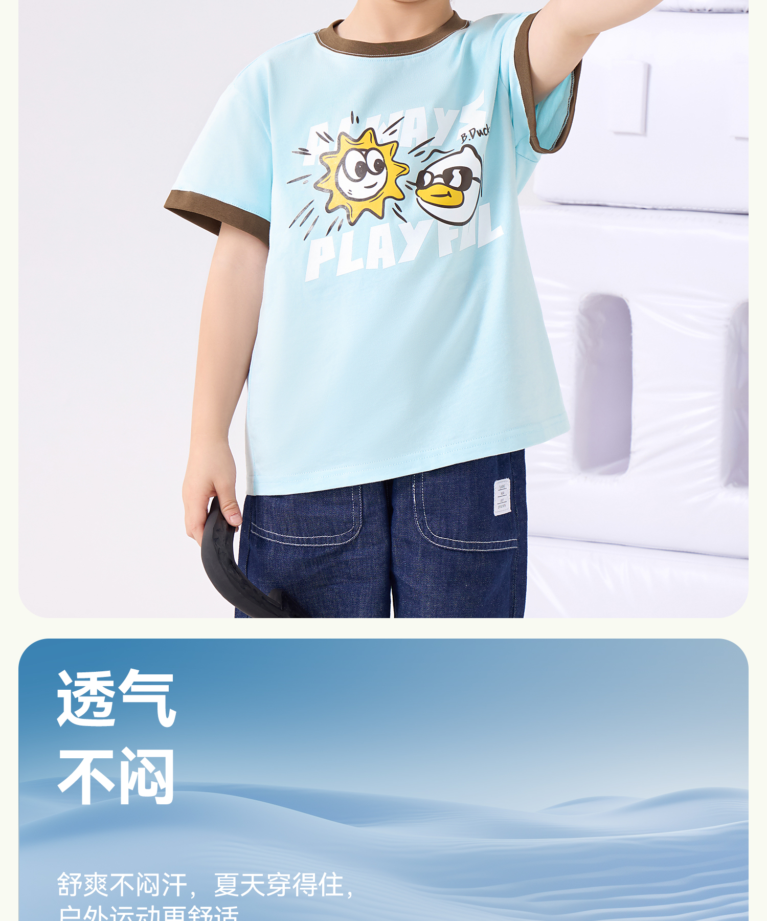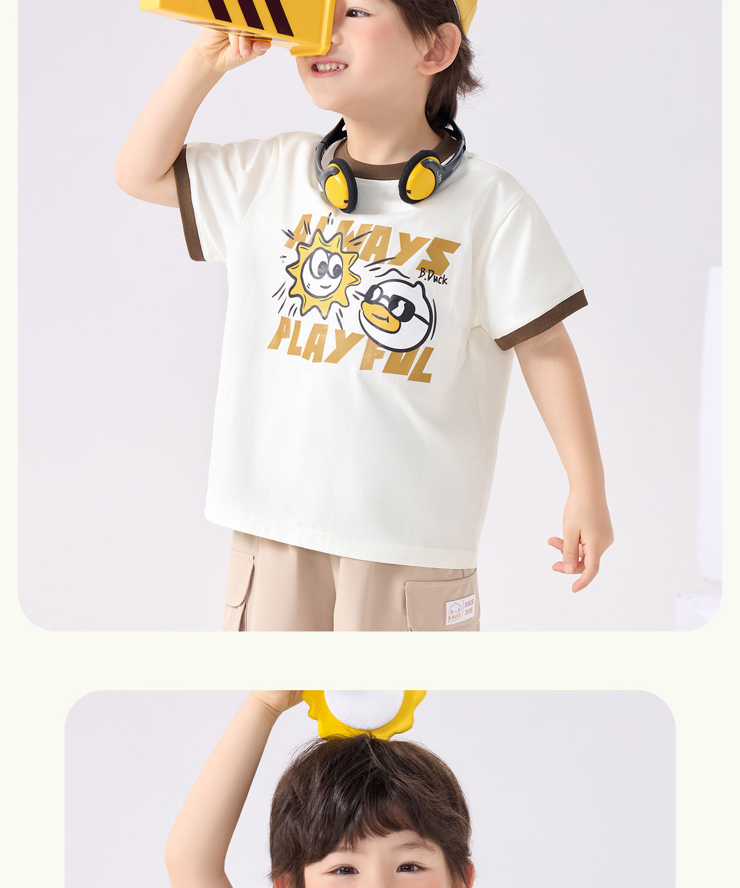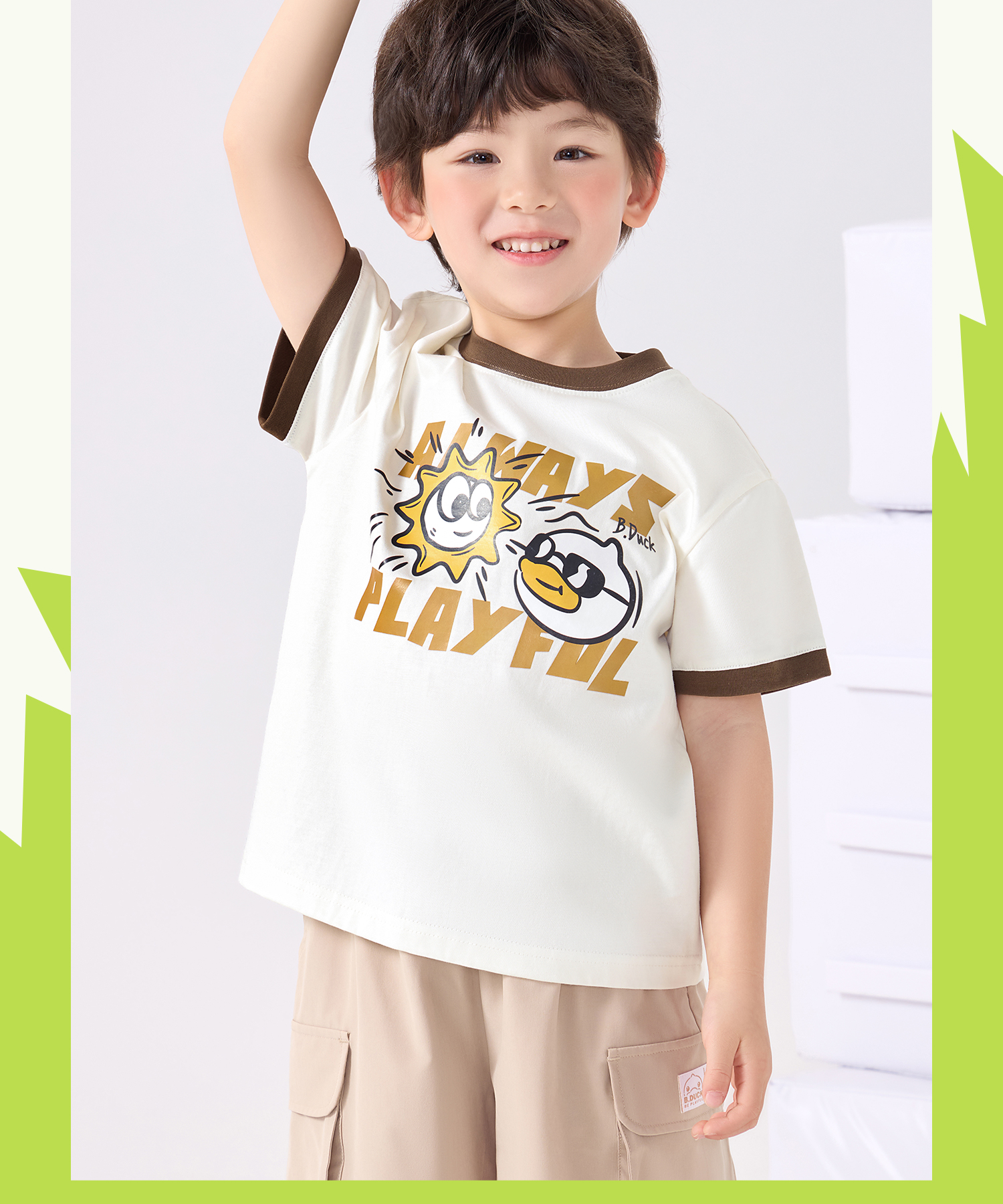 bduck小黄鸭童装夏季男童短袖T恤儿童纯棉洋气小男孩上衣夏季110-160 BF2601095