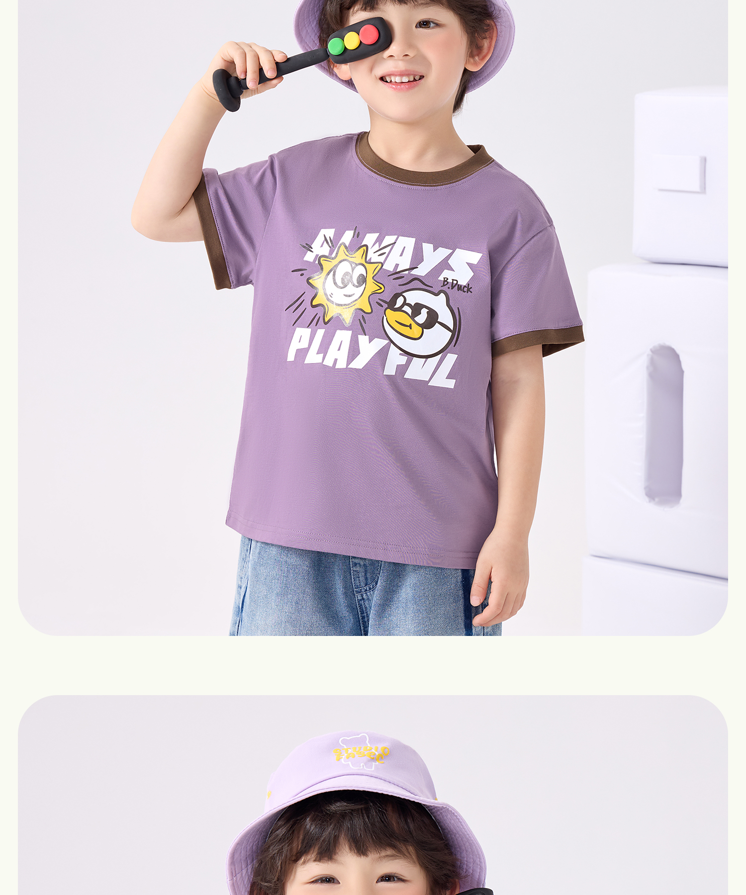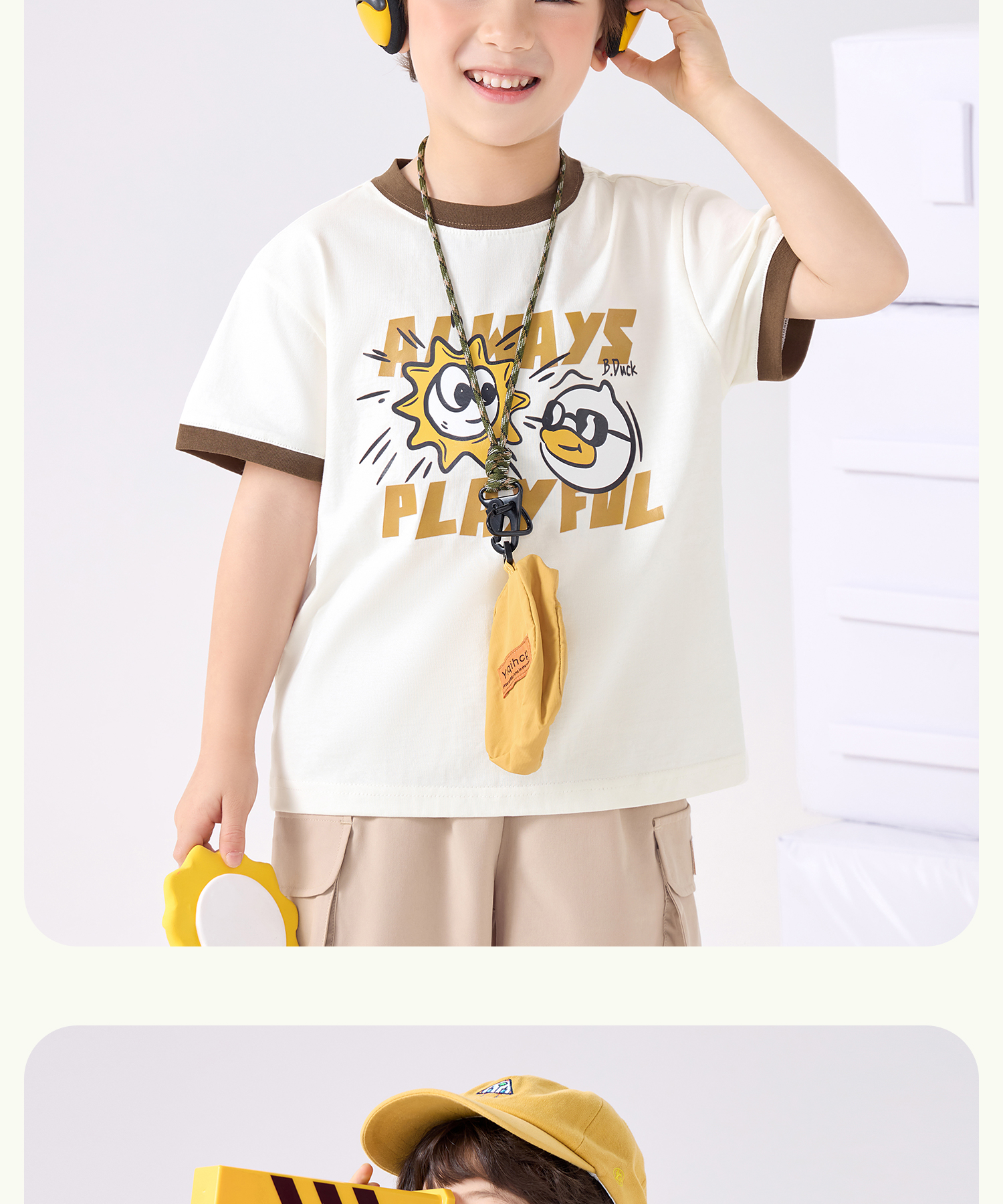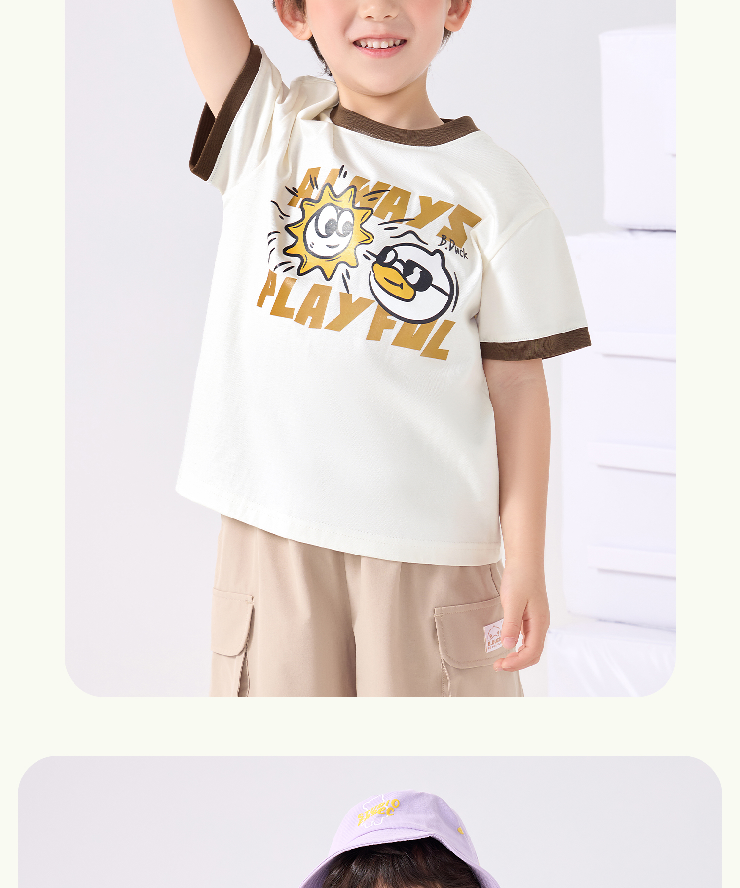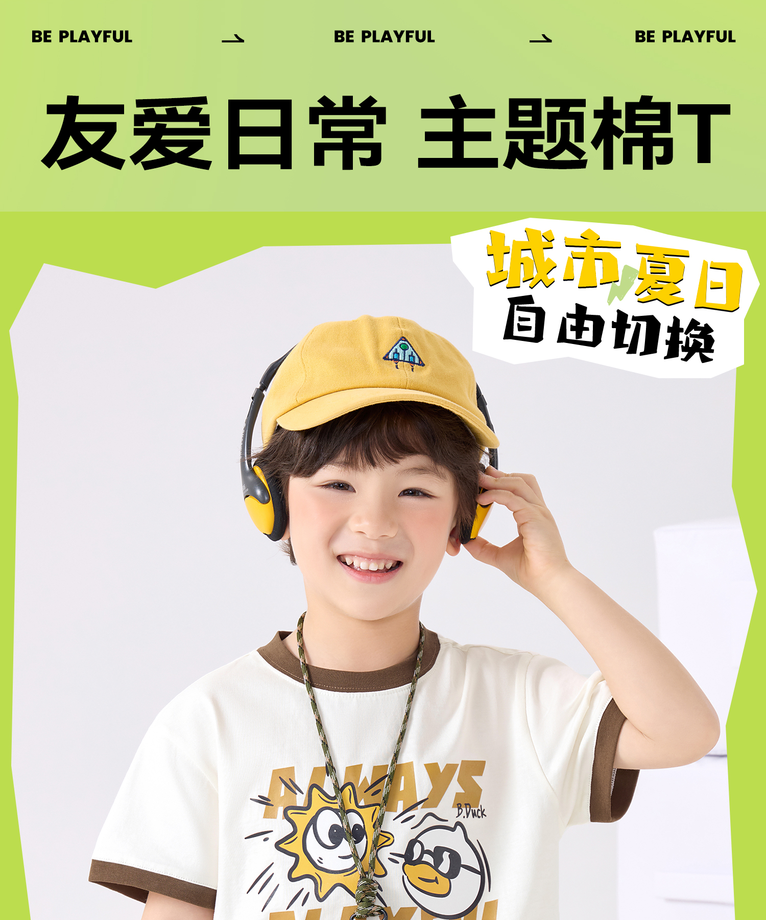 bduck小黄鸭童装夏季男童短袖T恤儿童纯棉洋气小男孩上衣夏季110-160 BF2601095