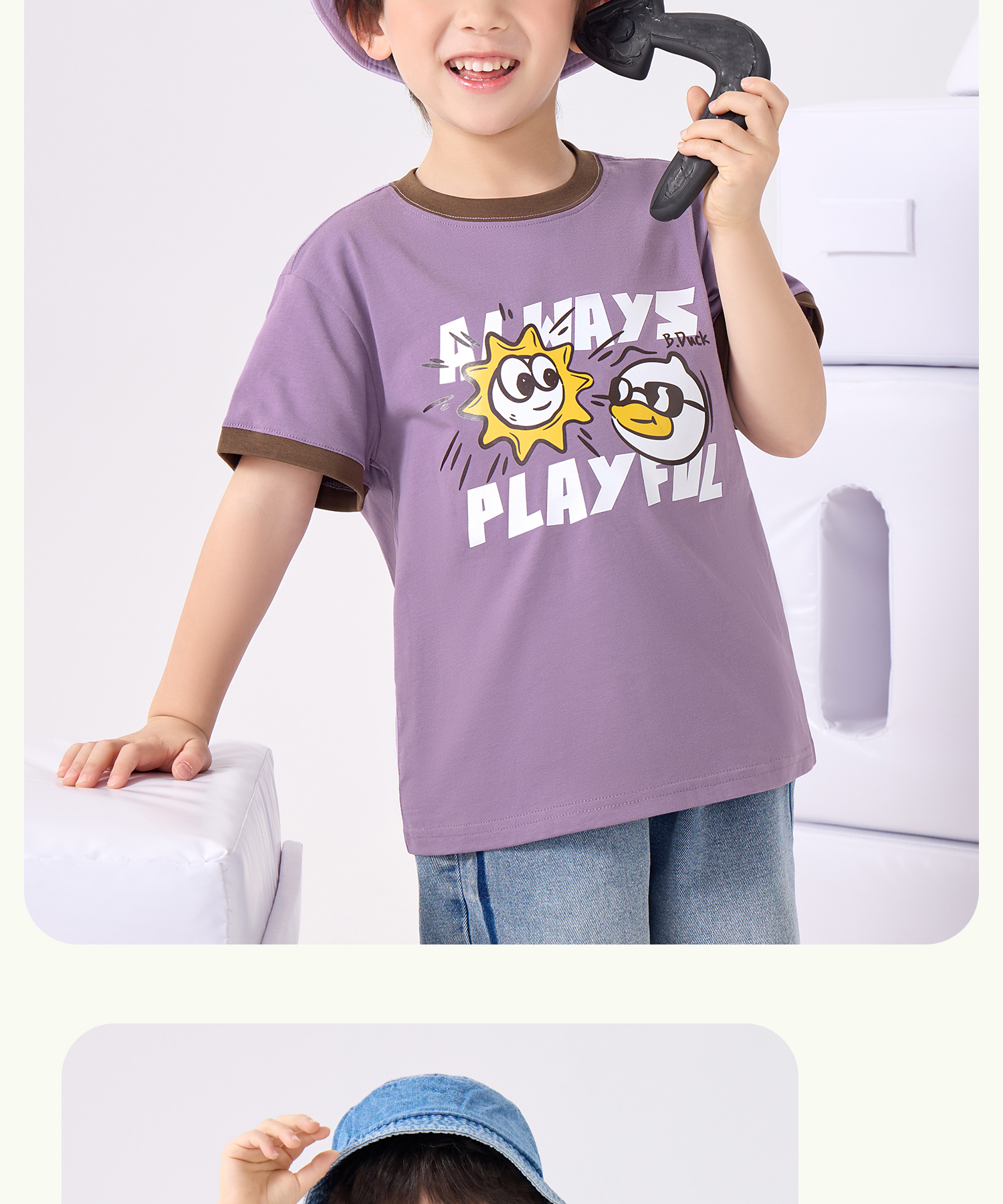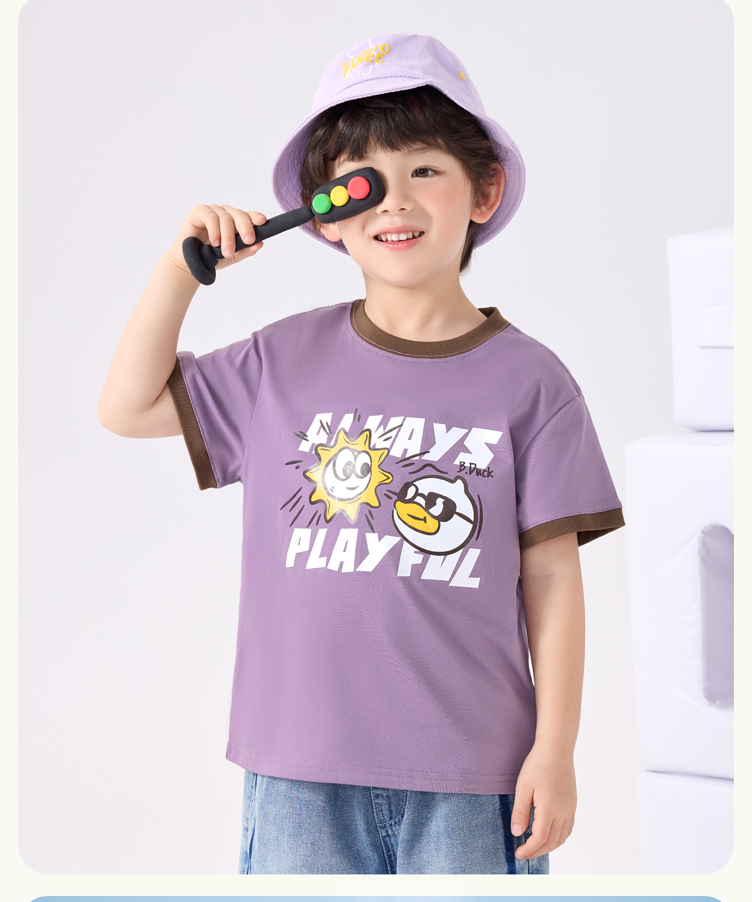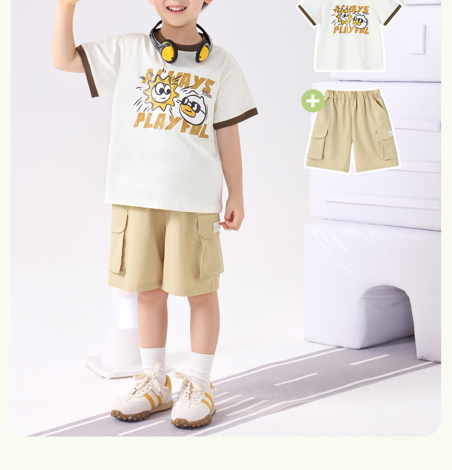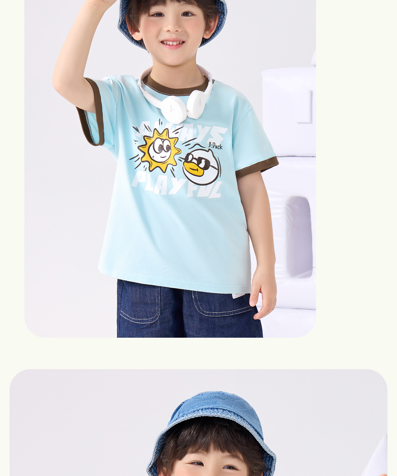 bduck小黄鸭童装夏季男童短袖T恤儿童纯棉洋气小男孩上衣夏季110-160 BF2601095