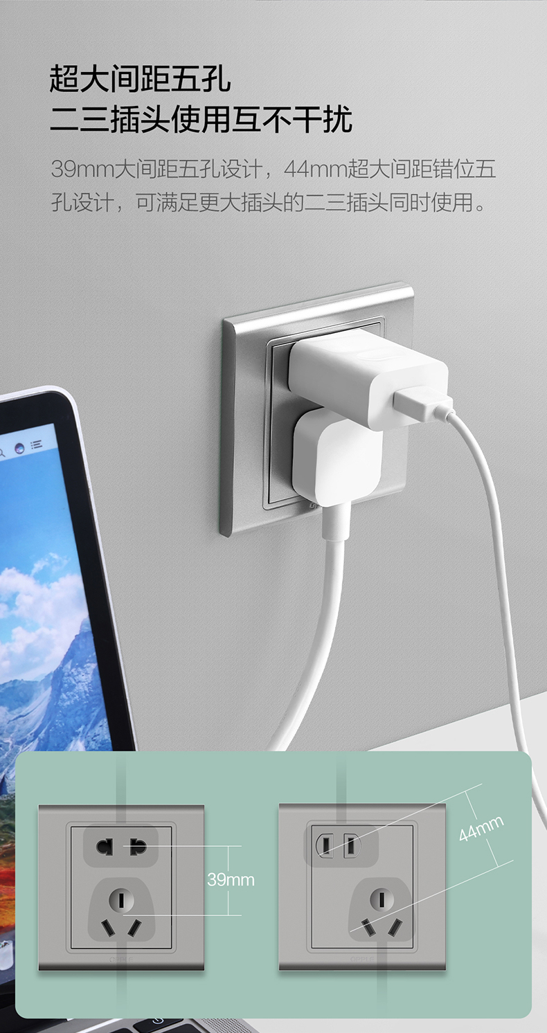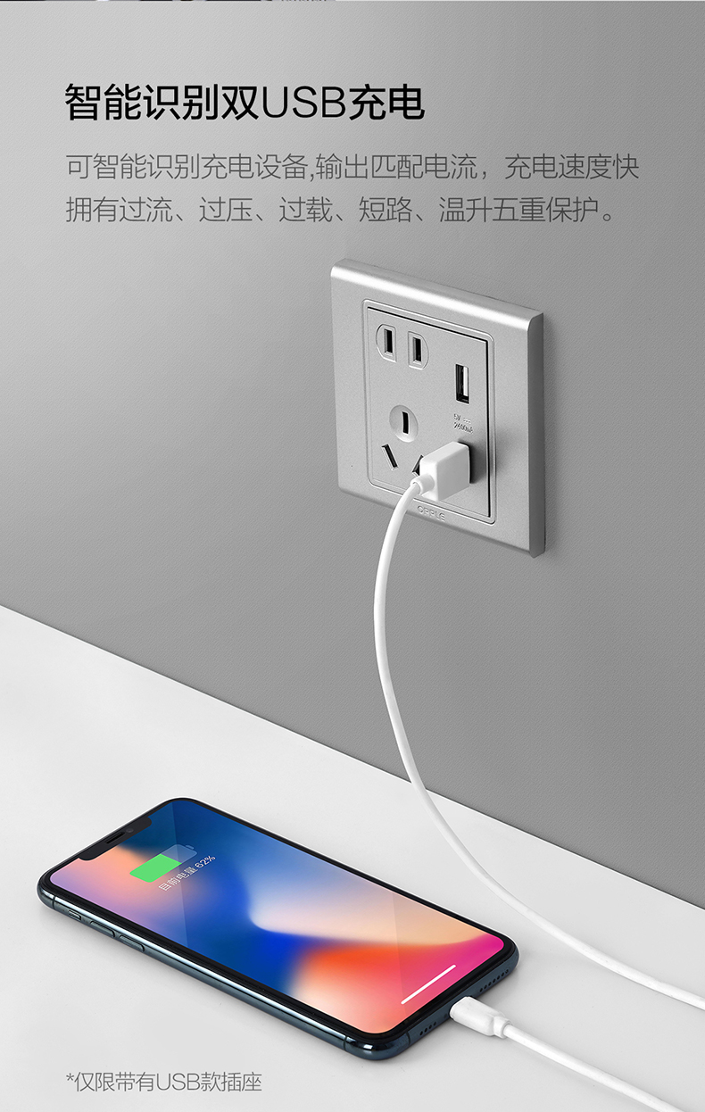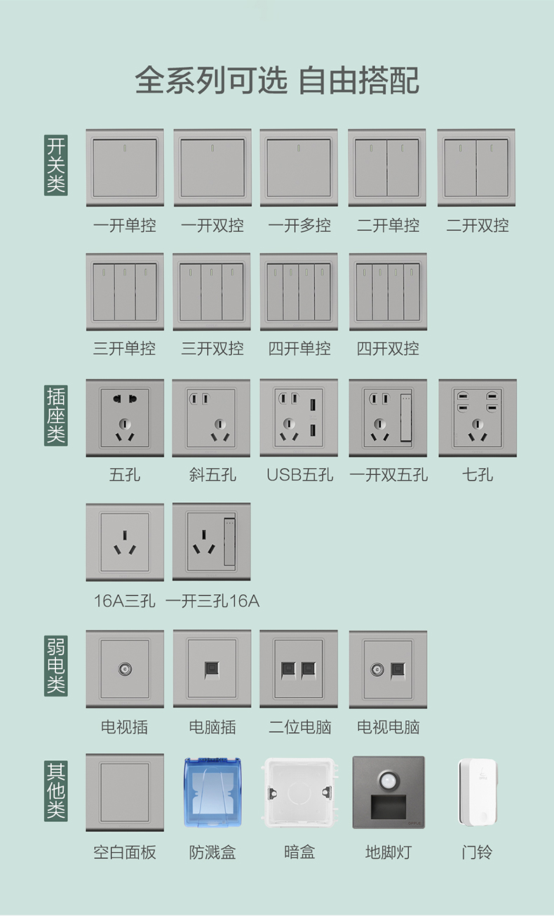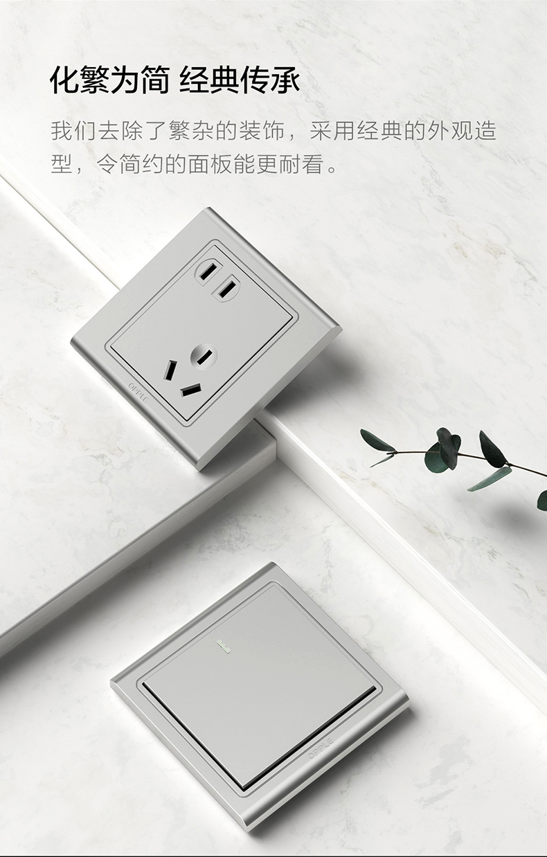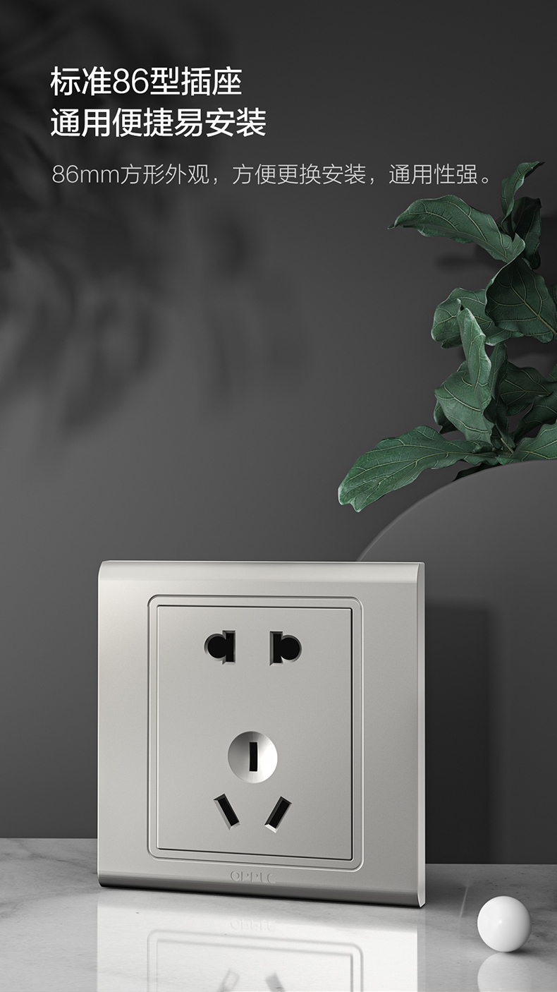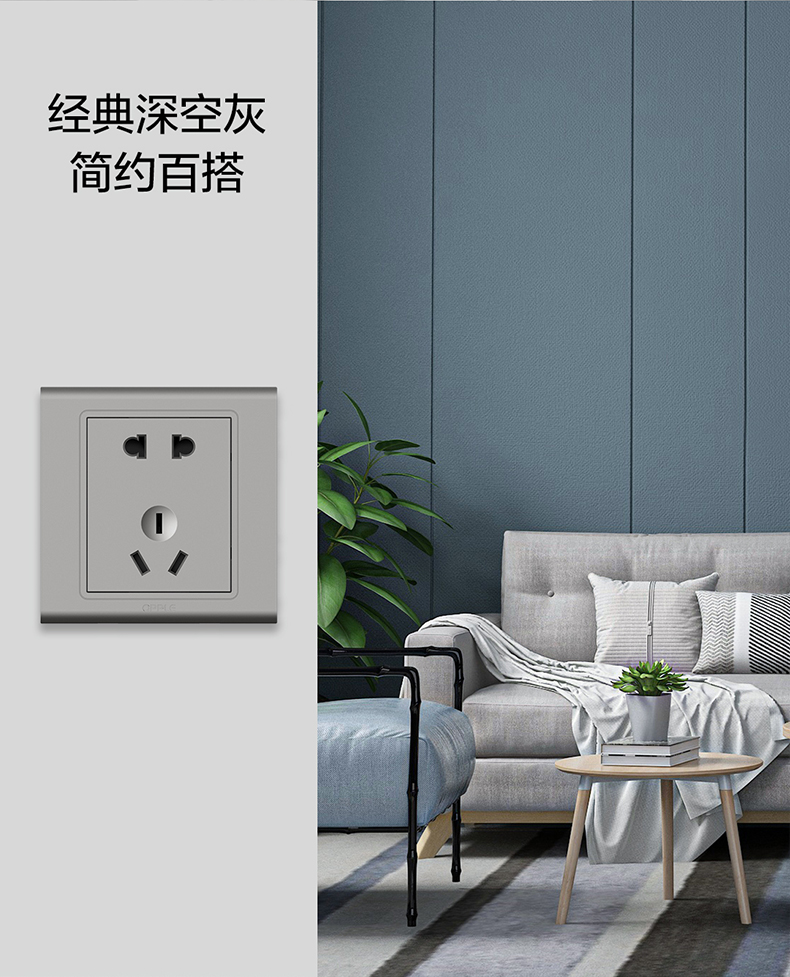 欧普(OPPLE)开关插座W51悦动深空灰五孔usb16a多孔空调面板墙壁家用86型