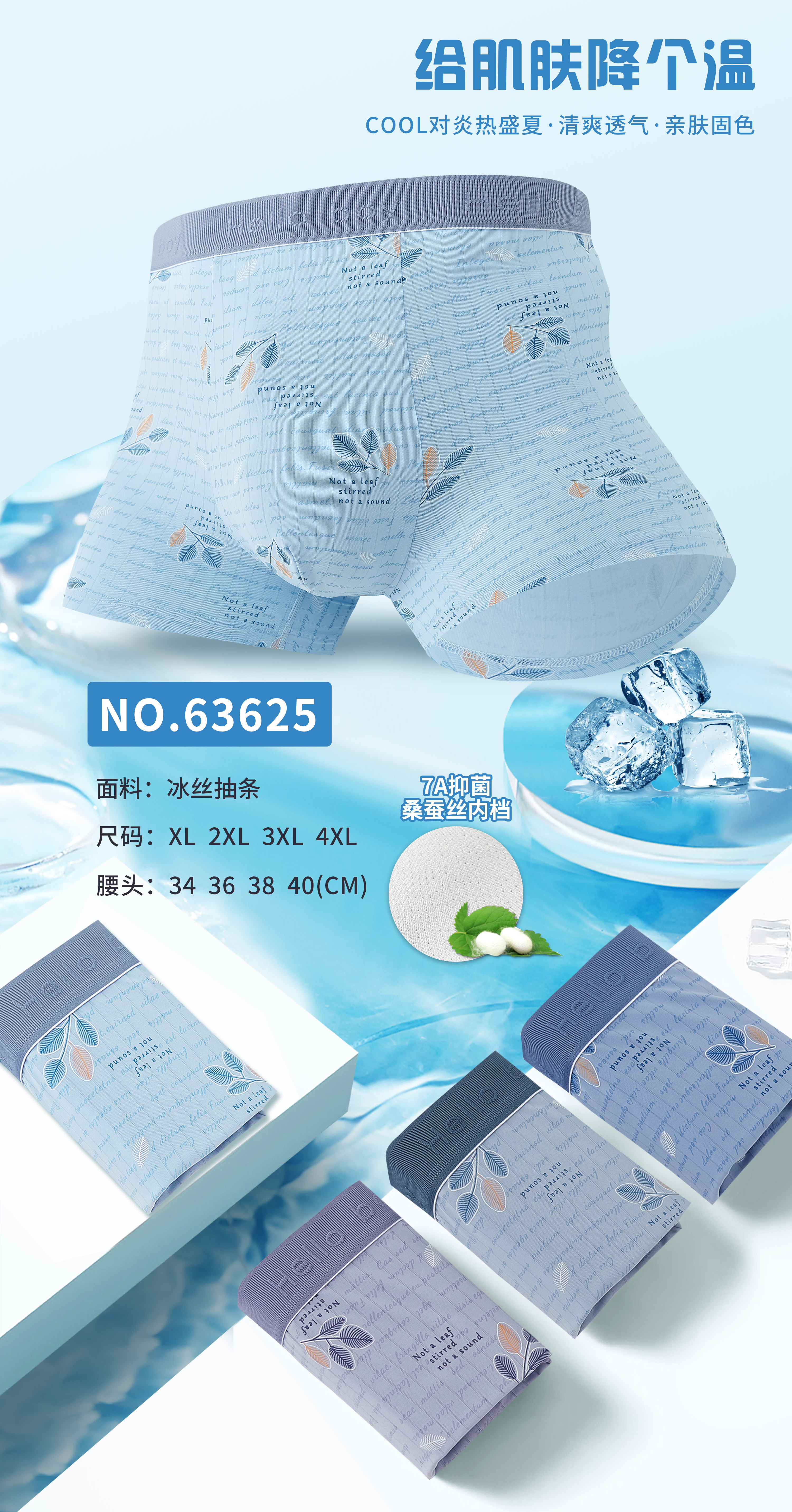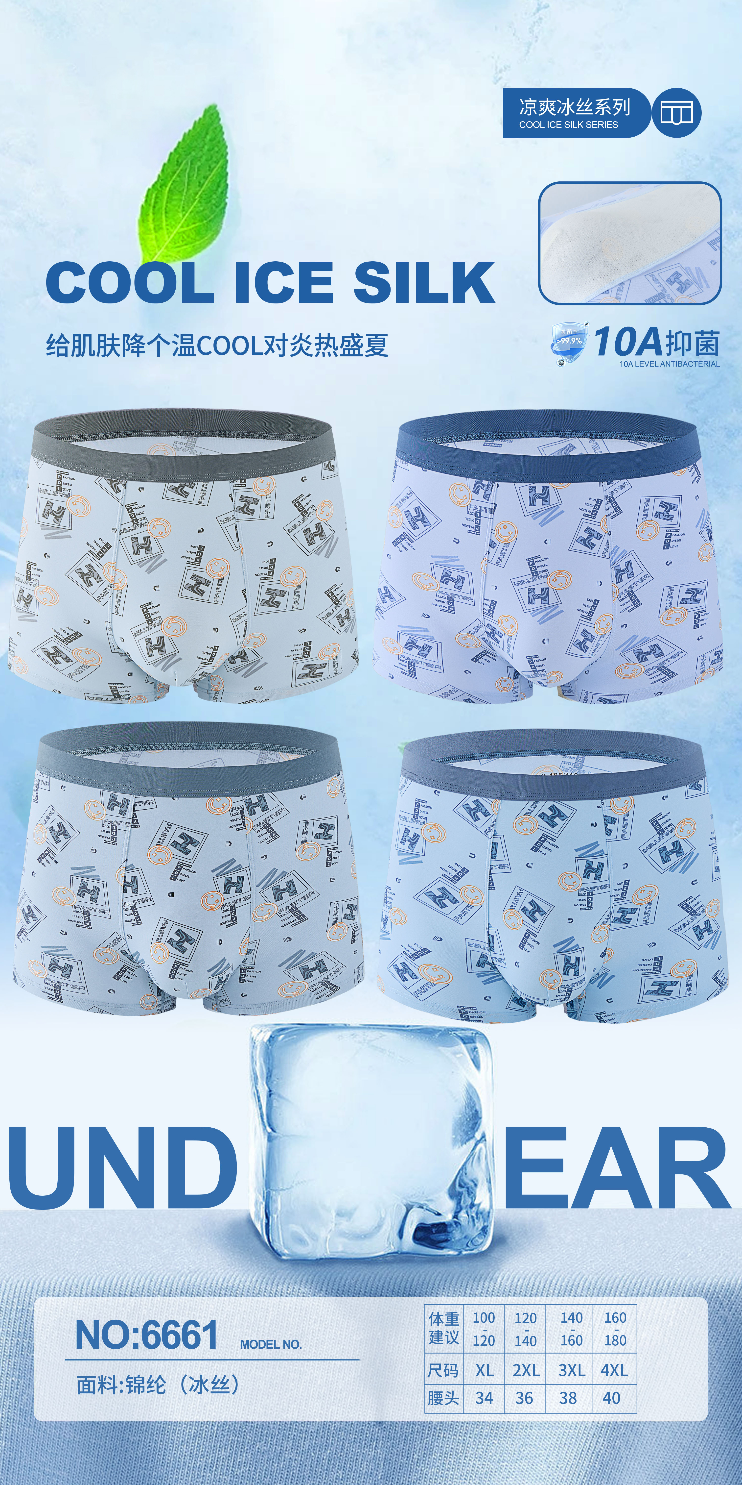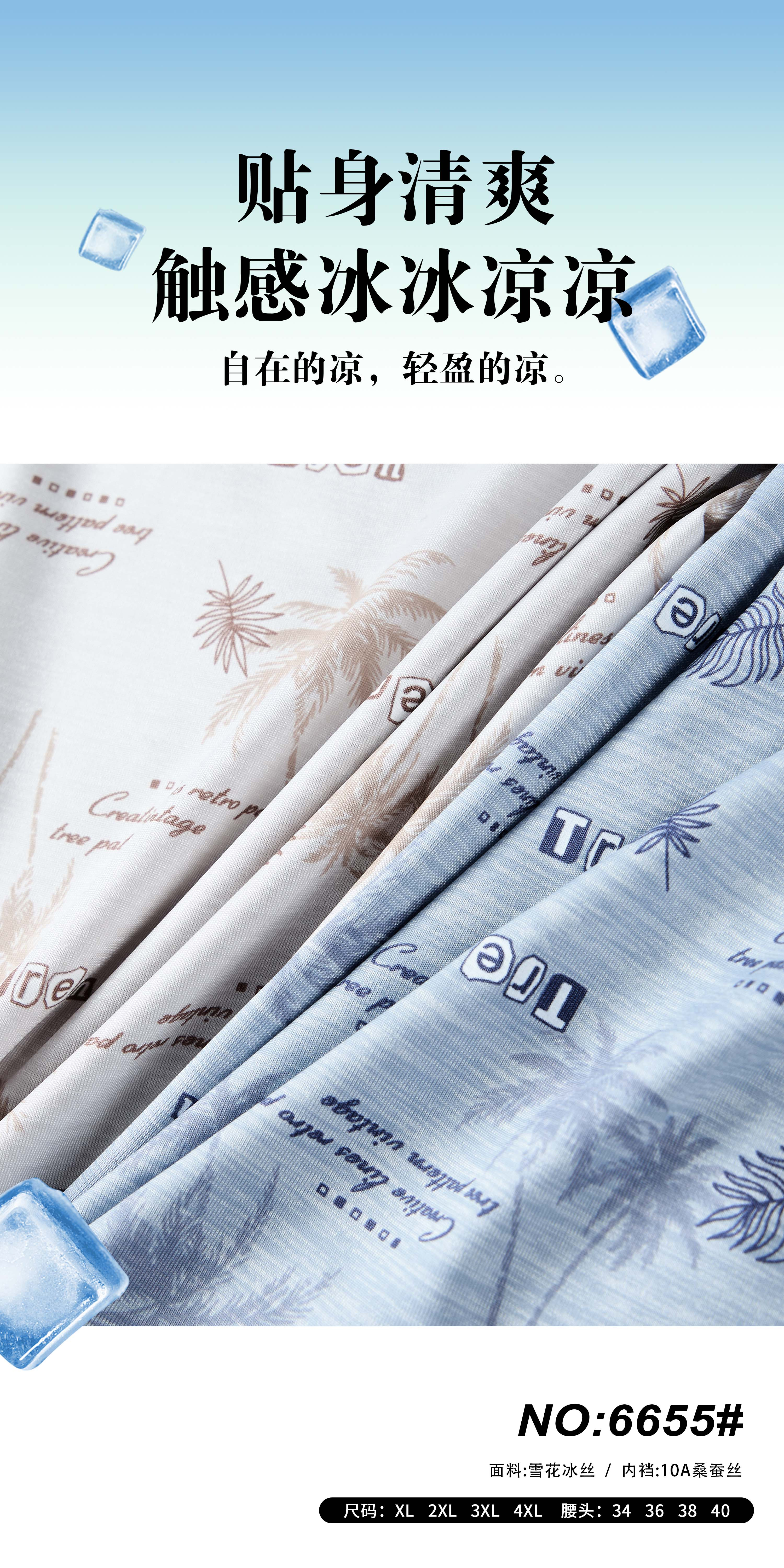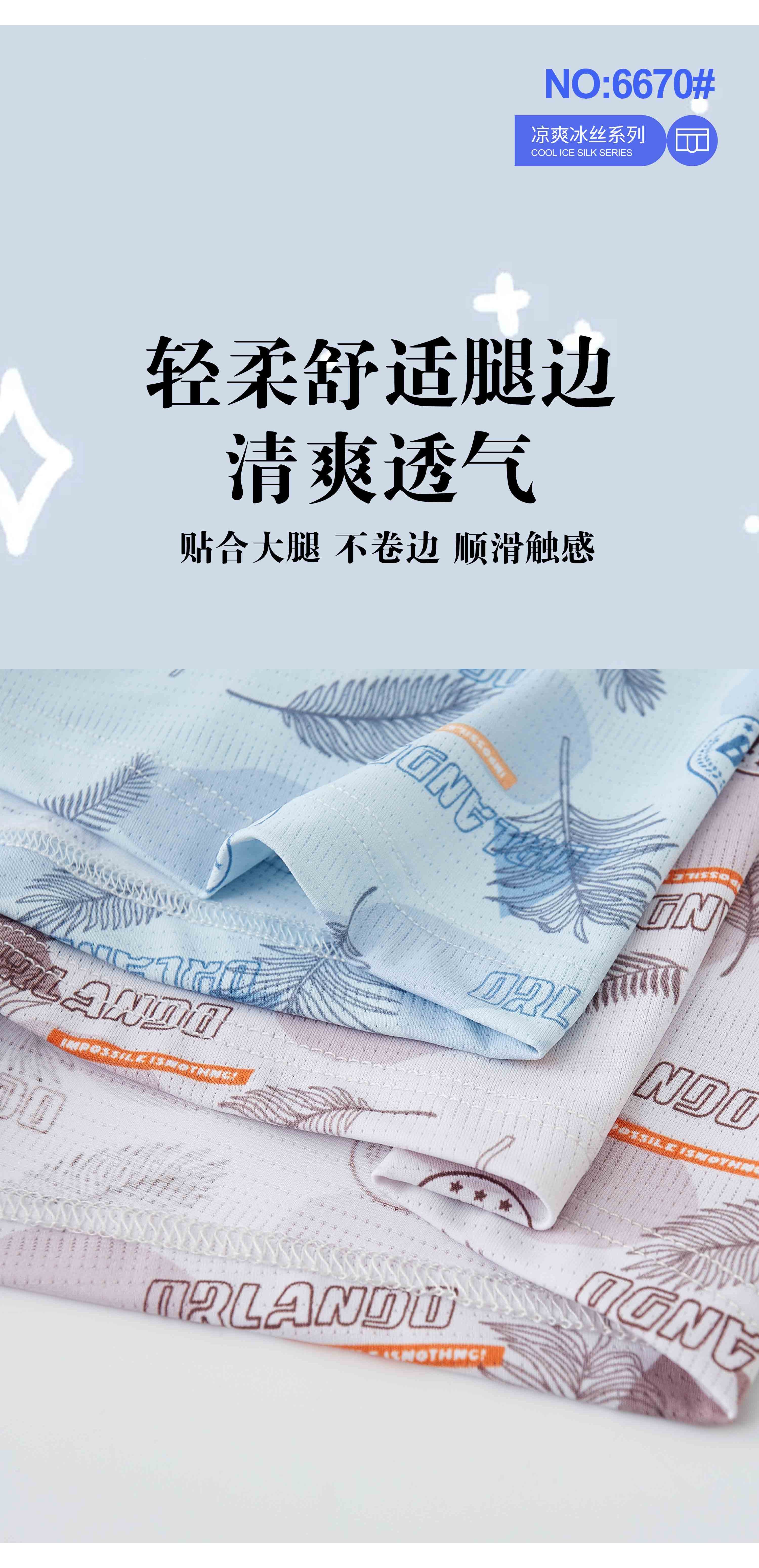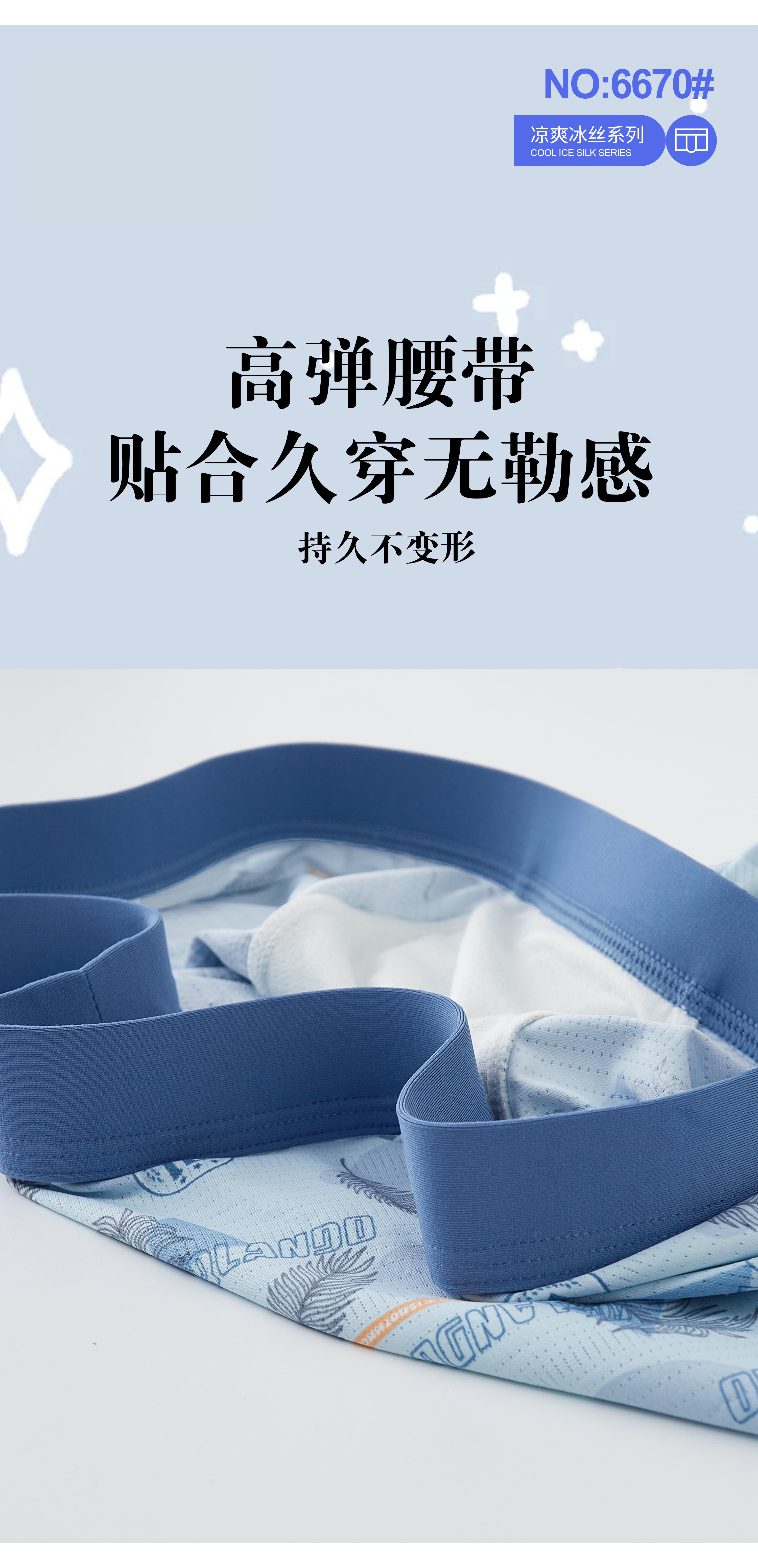 男士凉爽锦纶冰丝印花平角内裤23625/33625/43625/53625/63625/6655/6661/6665/6670