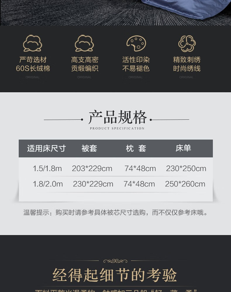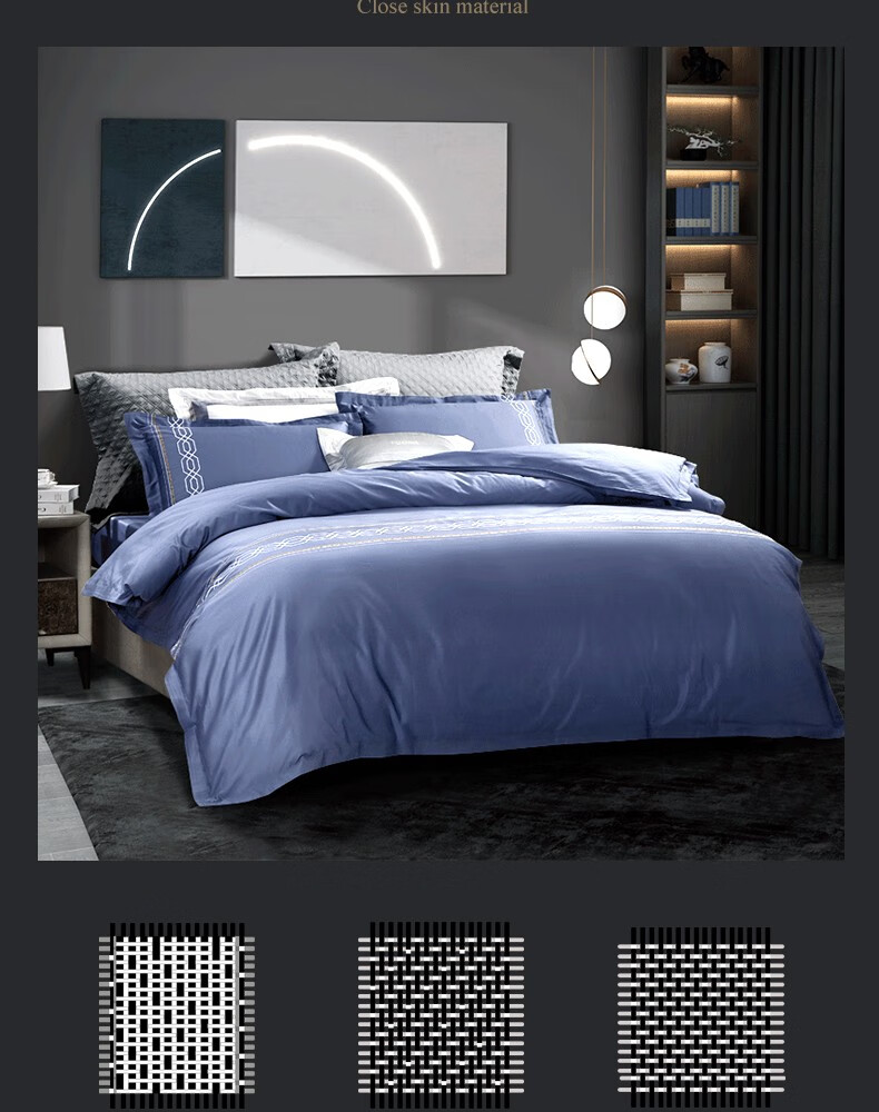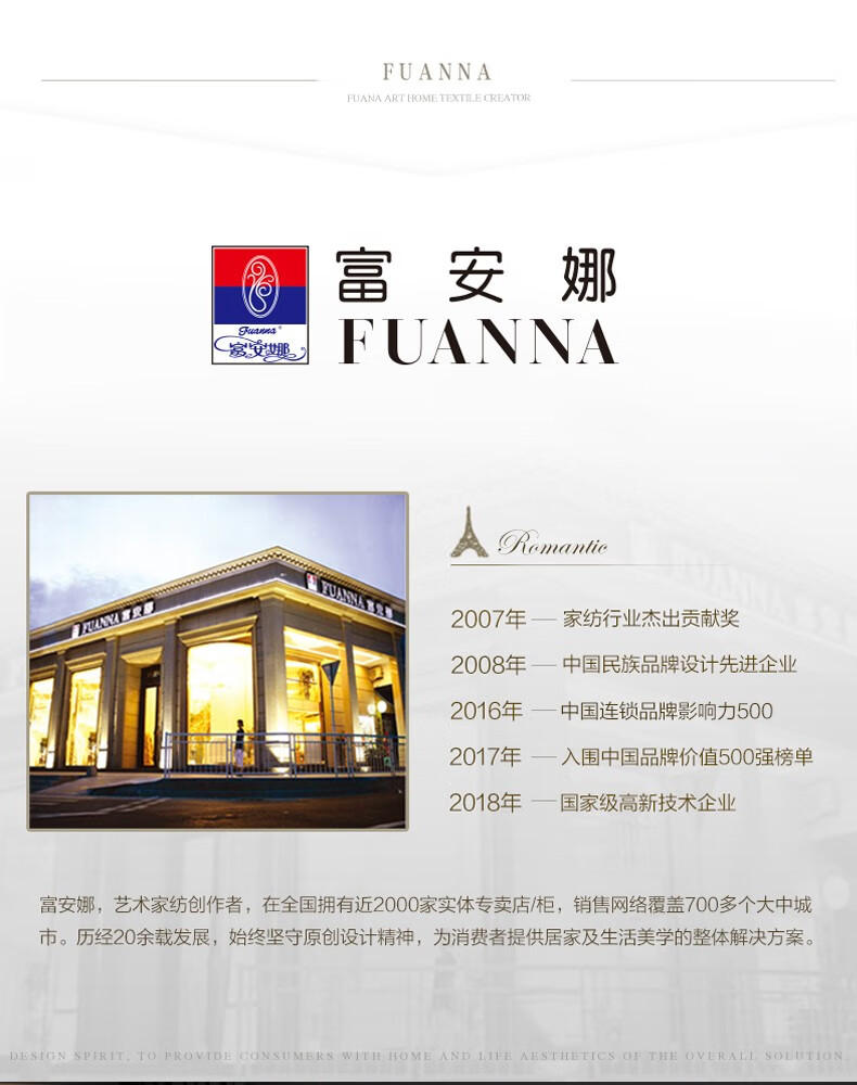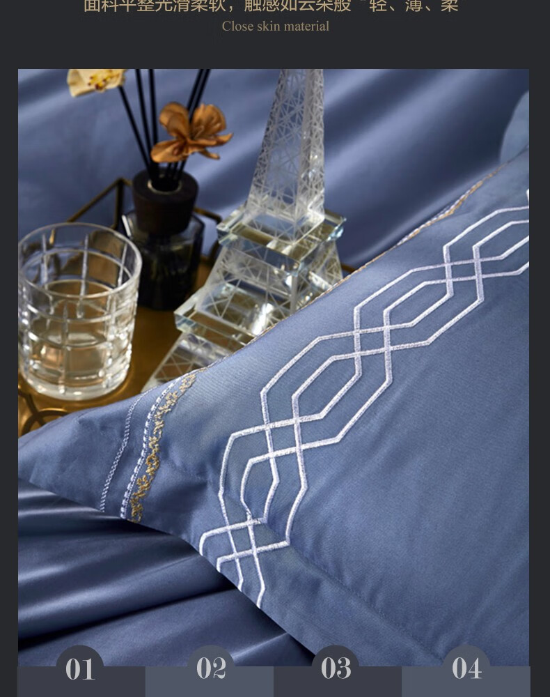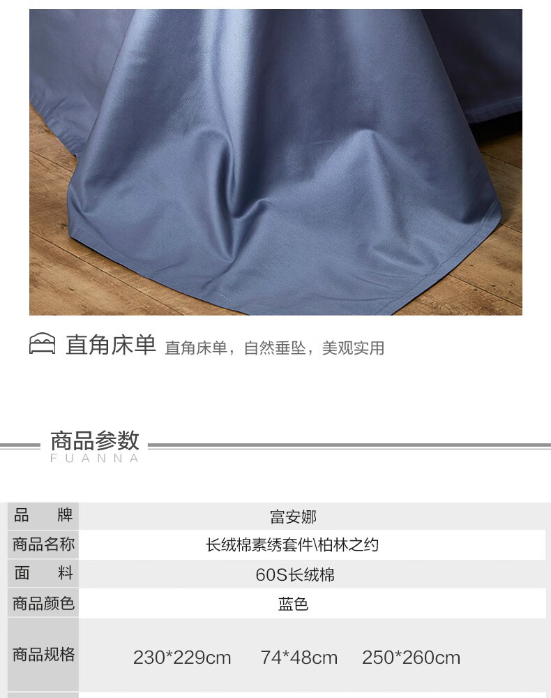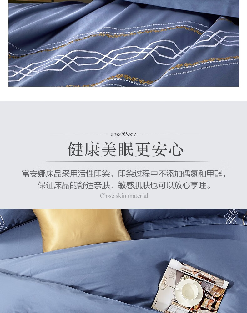 【高档】富安娜床品素绣60支长绒棉高档四件套 柏林之约 XHR