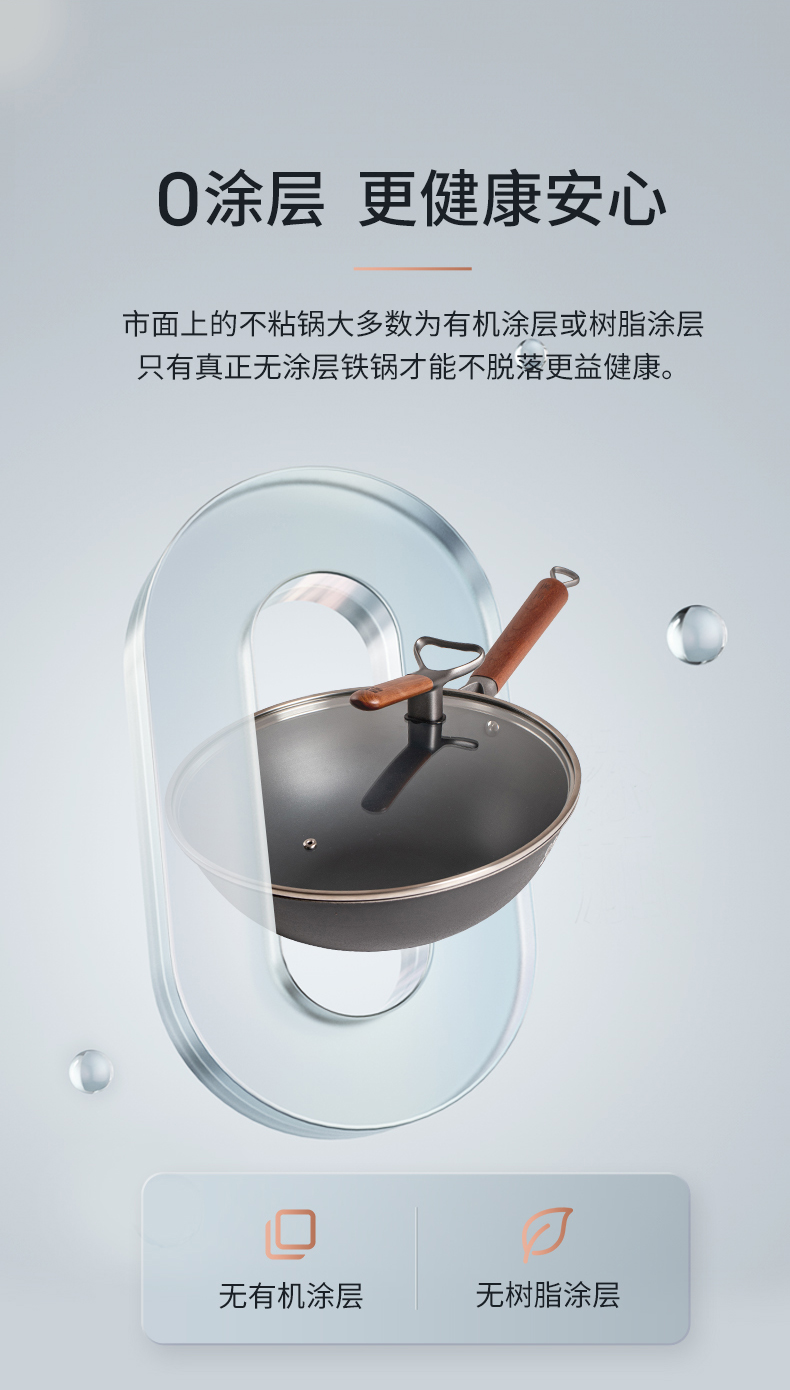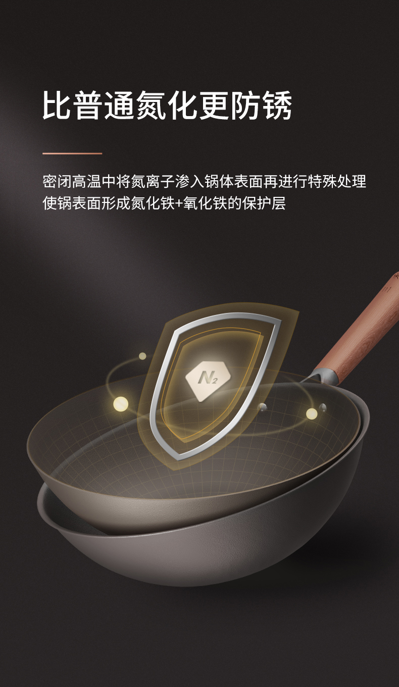 三禾窒氮防锈炒菜铁锅燃气灶专用无涂层微纳不粘炒锅 30/32CM