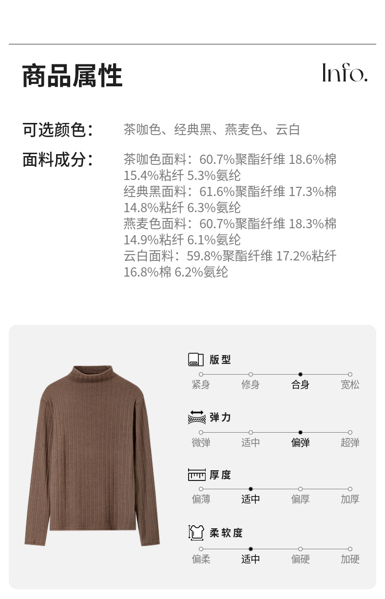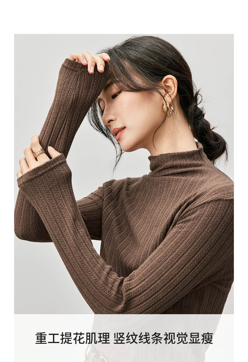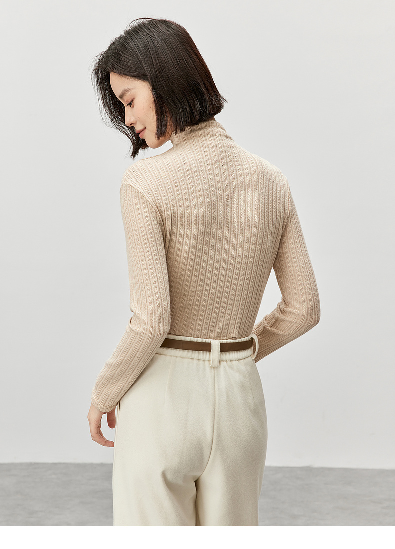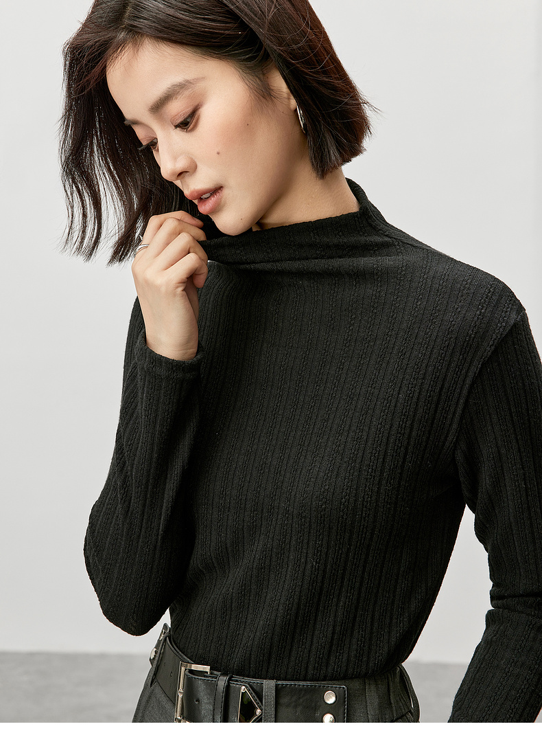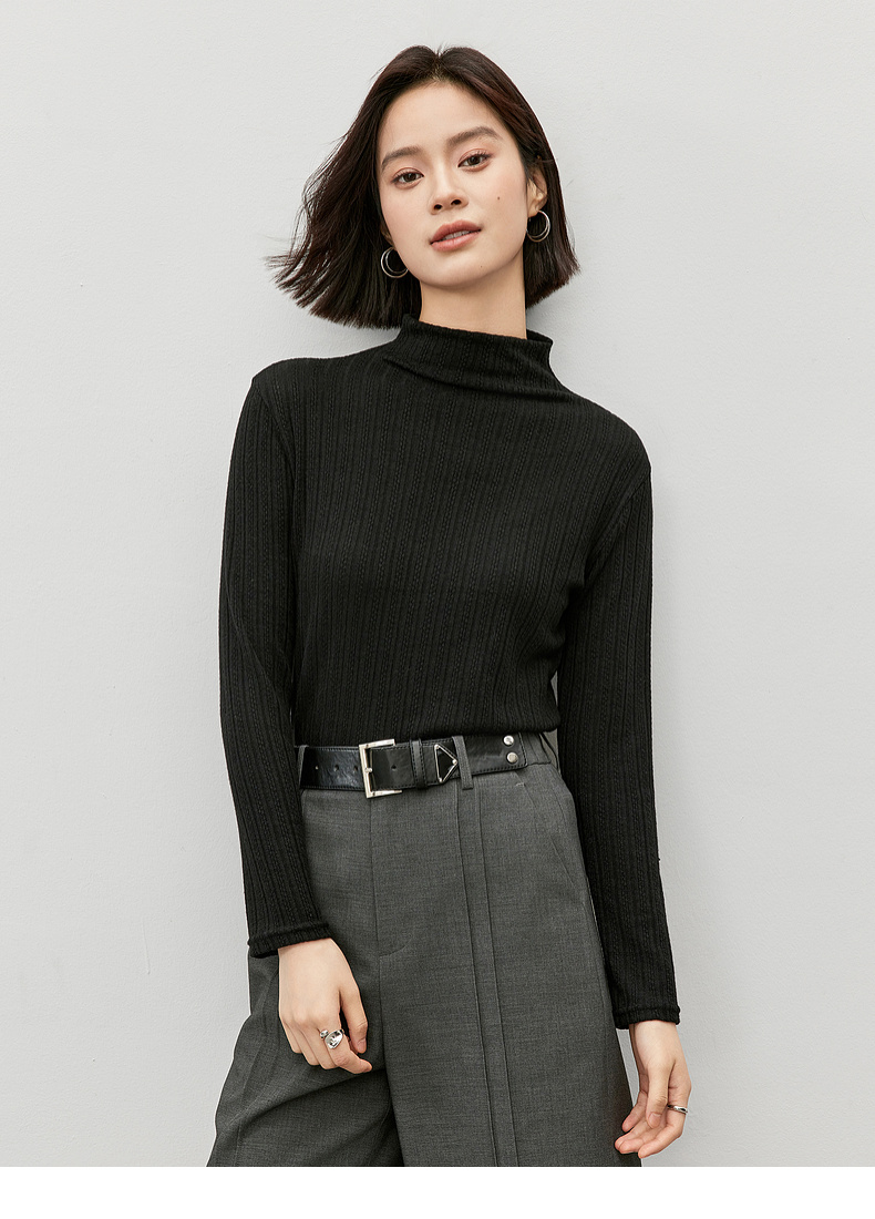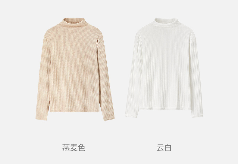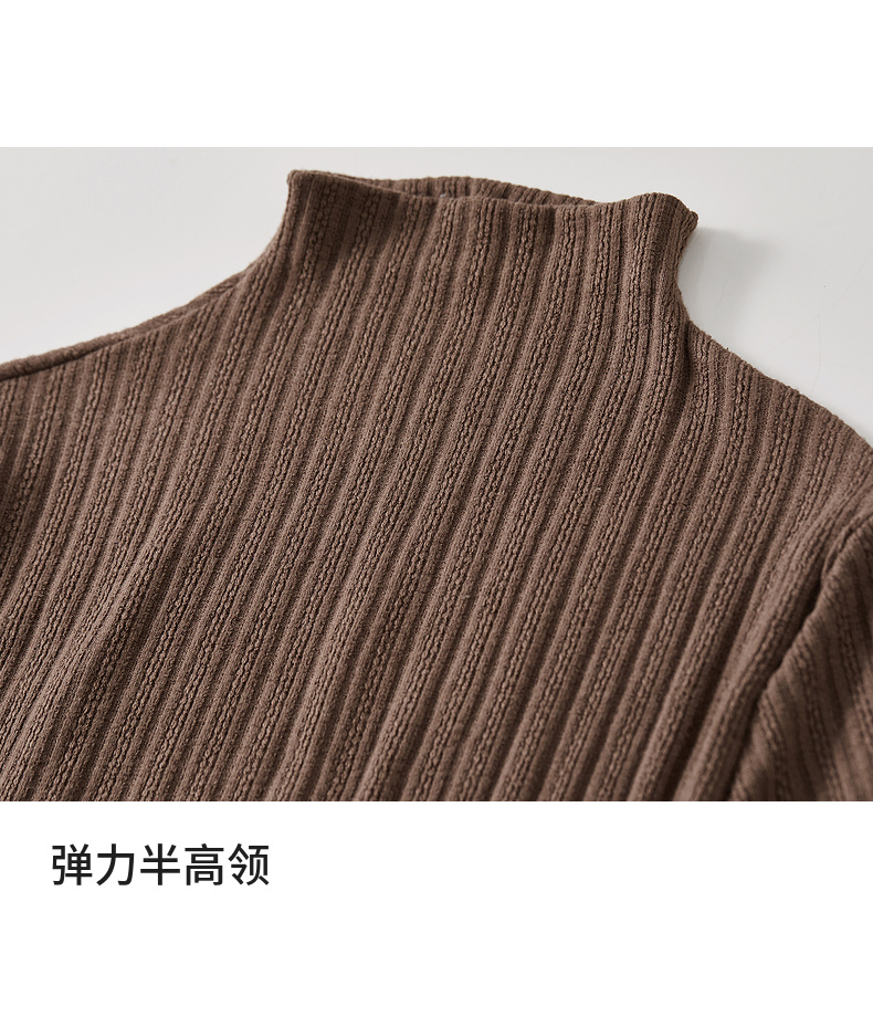 【内购】简约休闲基础棉质打底衫磨毛提花半高领弹力保暖针织上衣-W44S57119