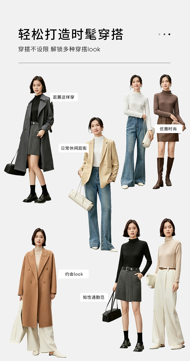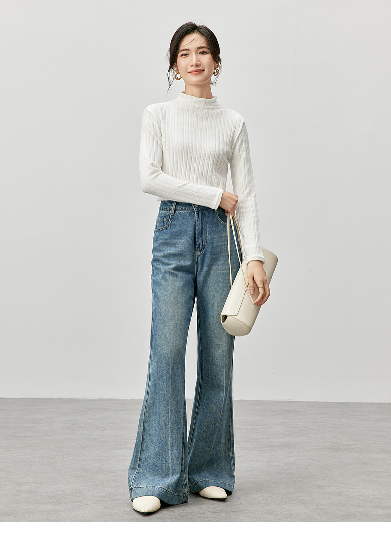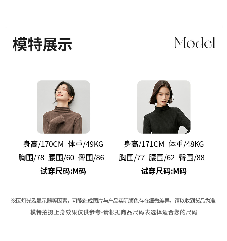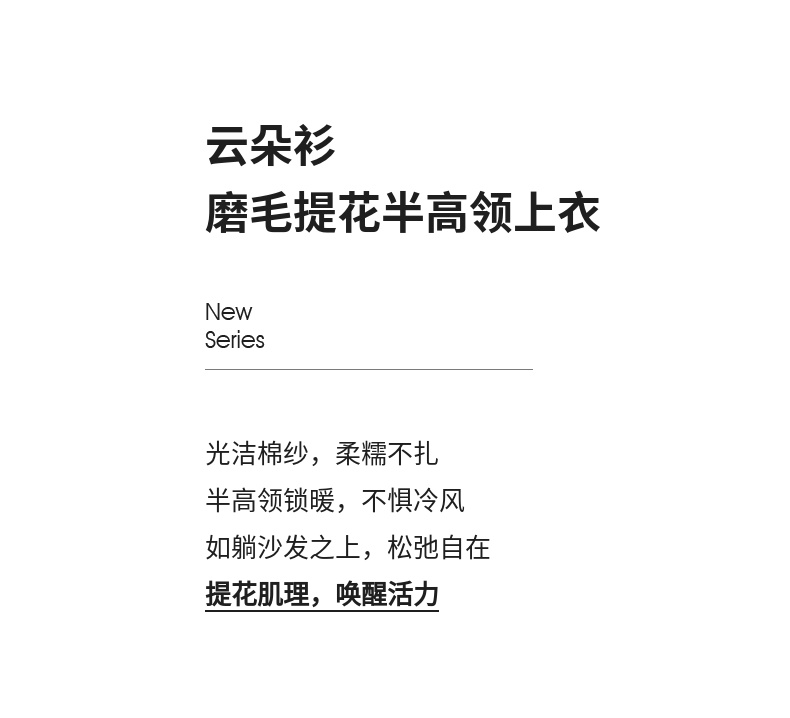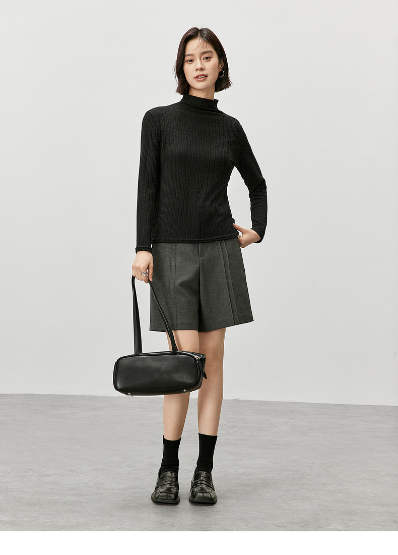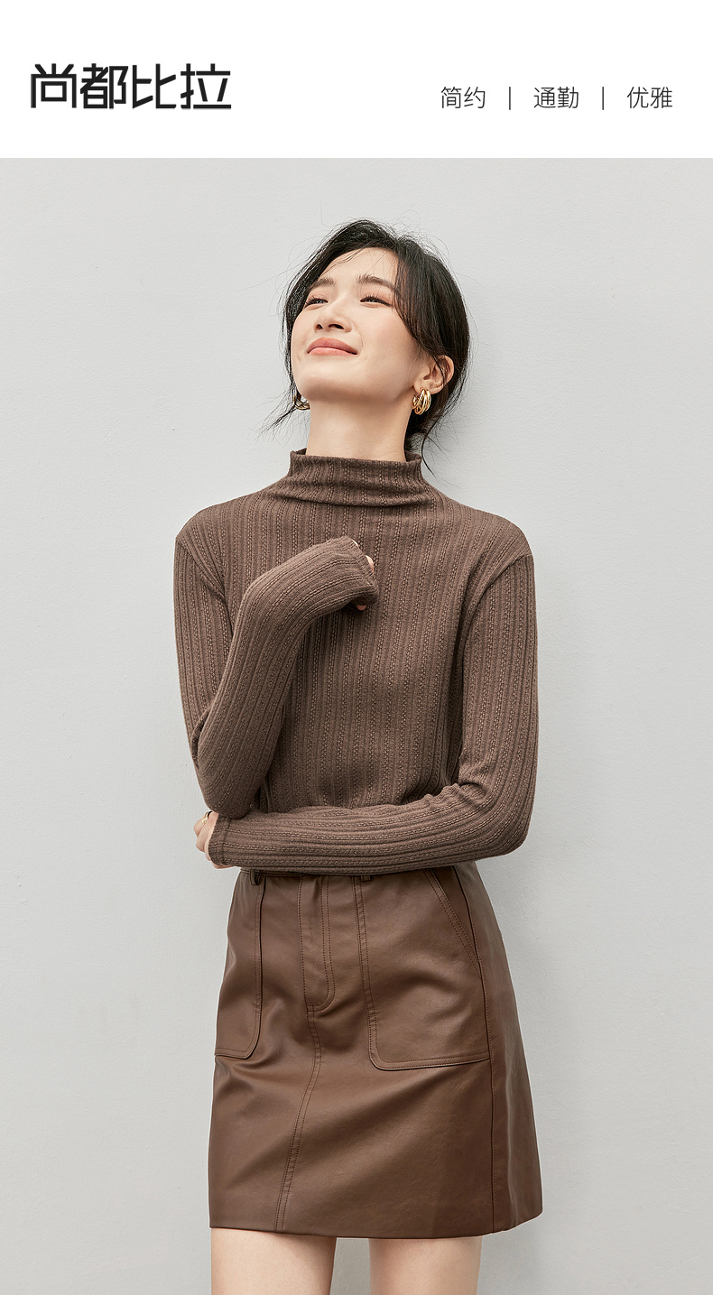 【内购】简约休闲基础棉质打底衫磨毛提花半高领弹力保暖针织上衣-W44S57119