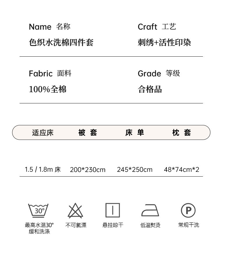 百丽安娜全棉色织水洗棉四件套 -幽雅200*230cm