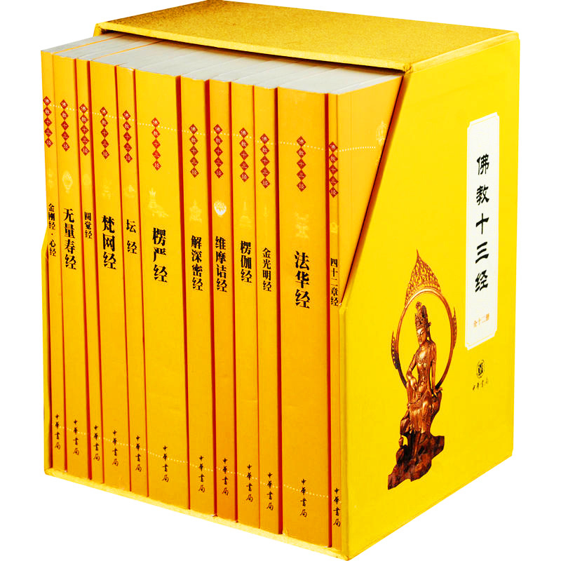 4、 “佛教十三经”自面市以来,均有很好的销售量。本次推出的全套装,外面包以函套,结集出版,包装精美,携带方便,更满足于广大读者送礼所需。