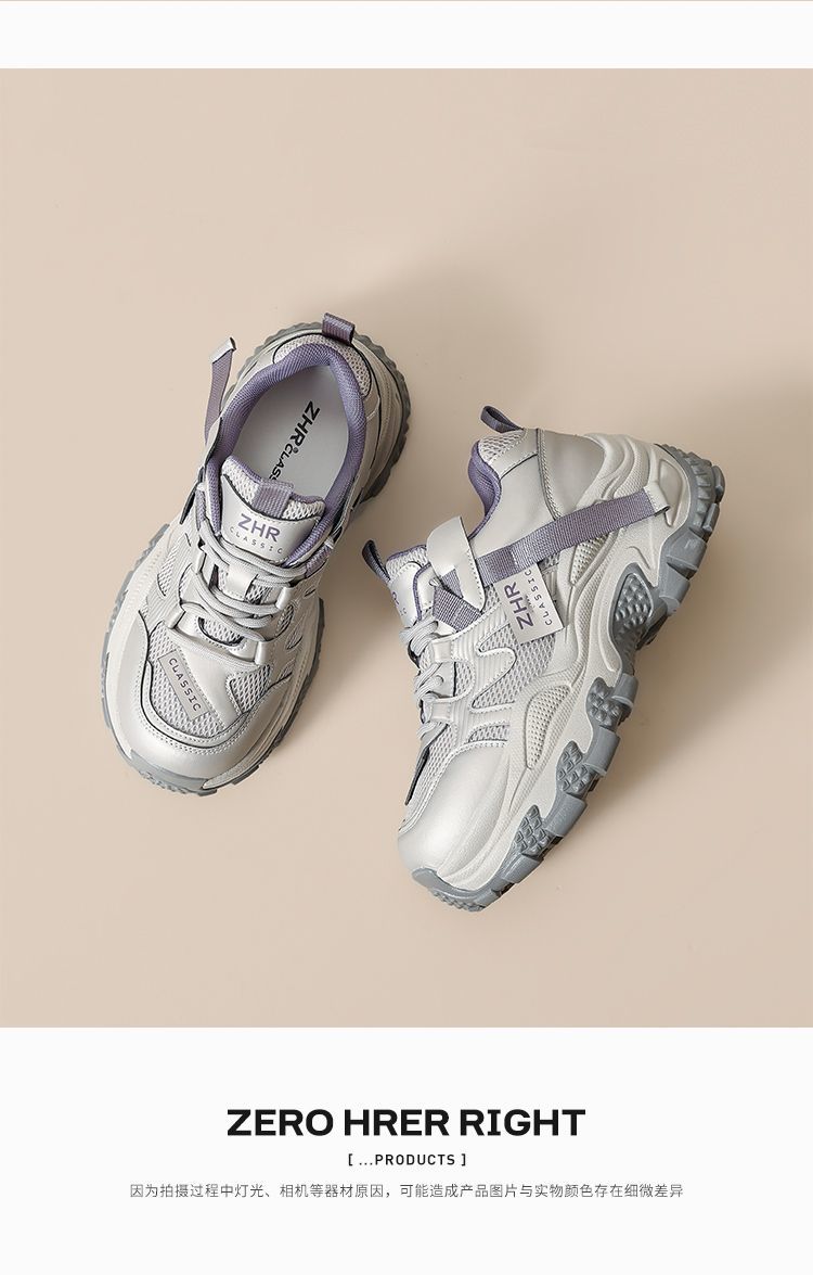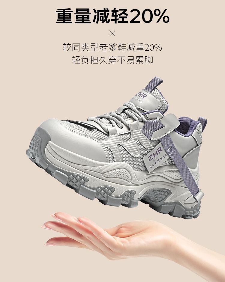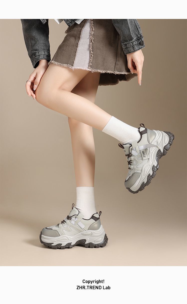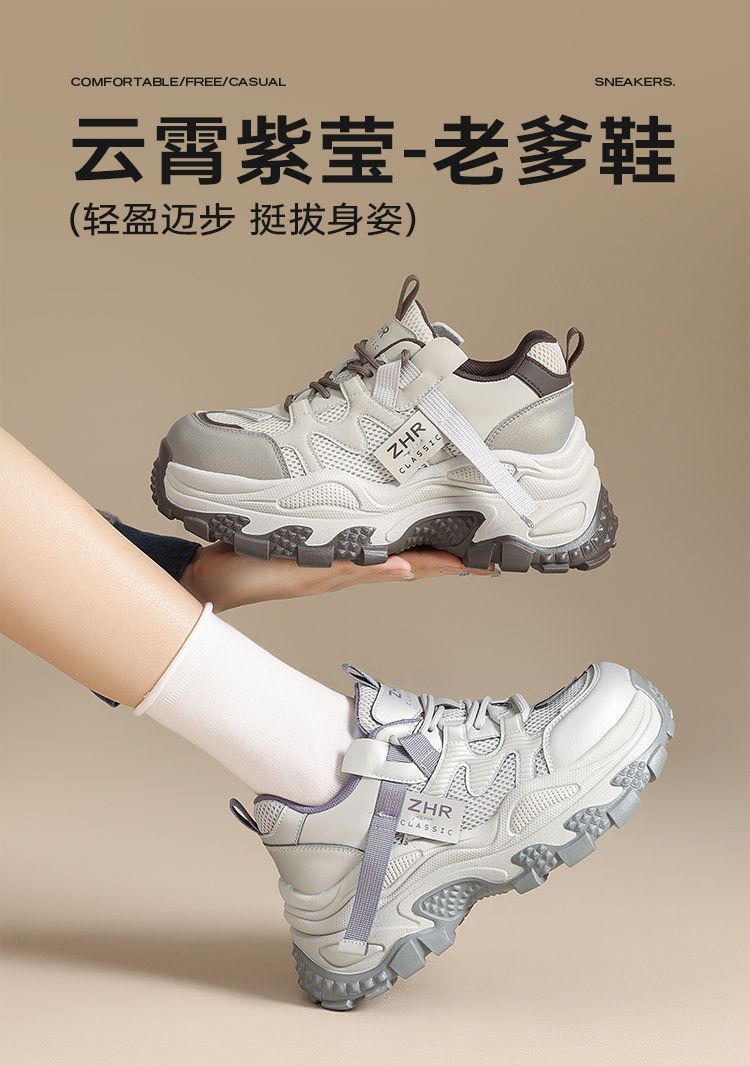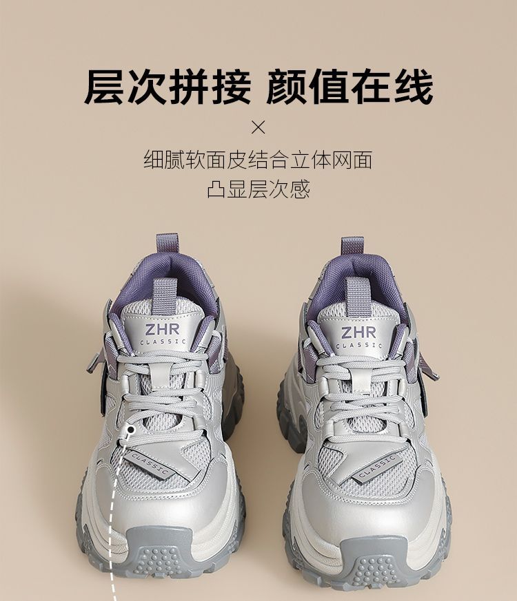 ZHR则则厚底老爹鞋女2025秋冬新款灰色户外休闲鞋百搭增高运动鞋