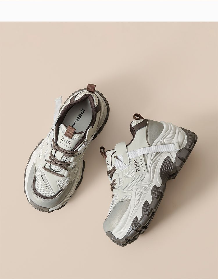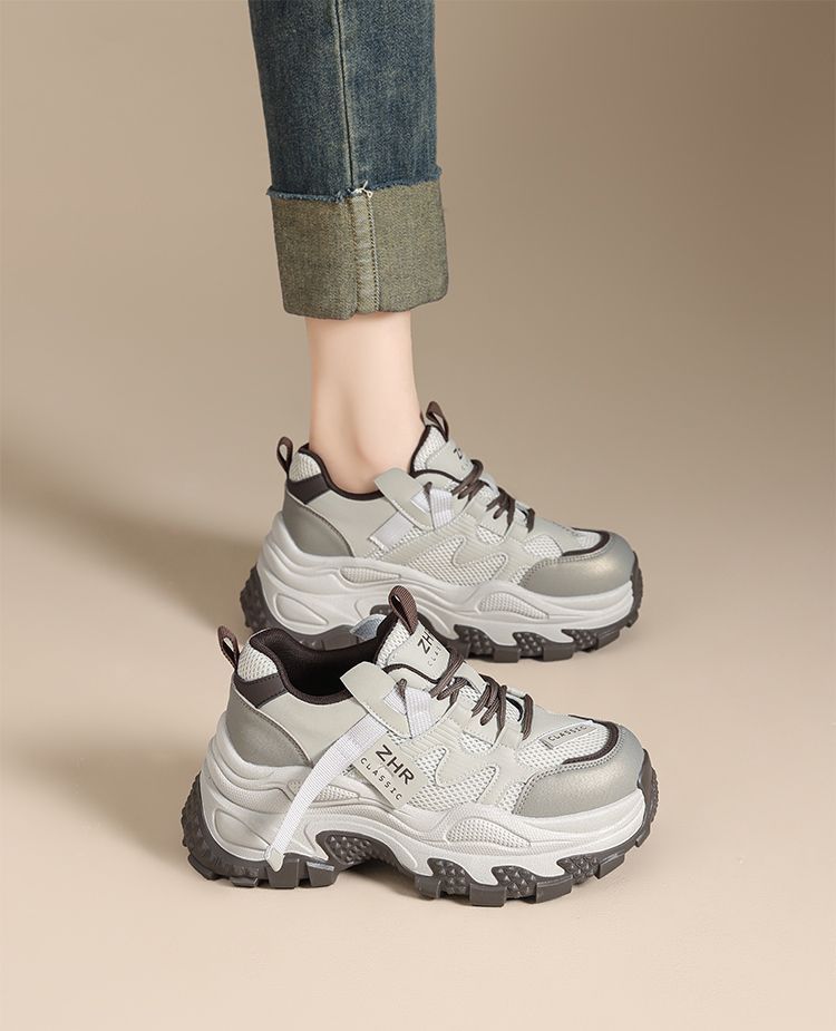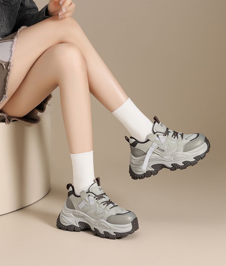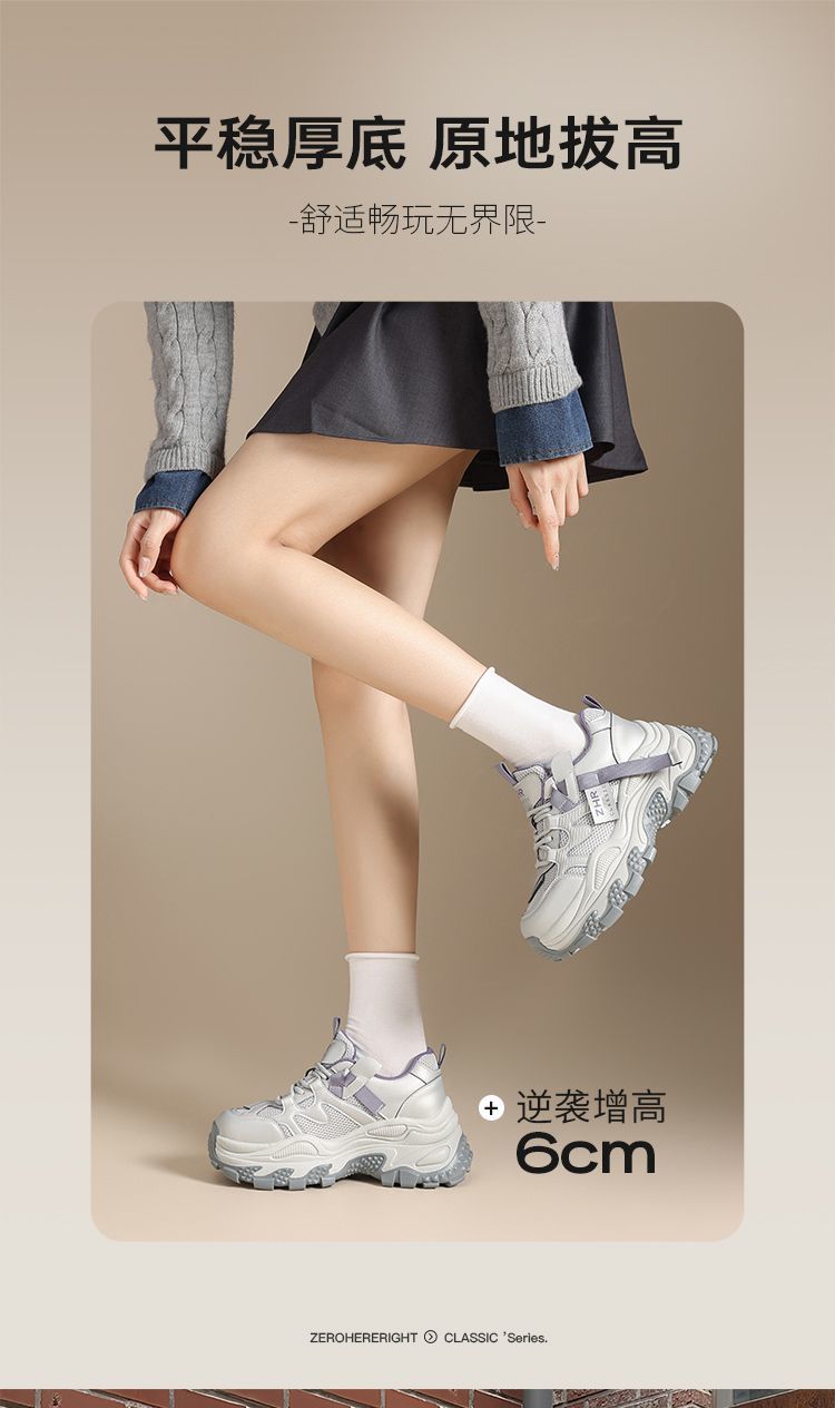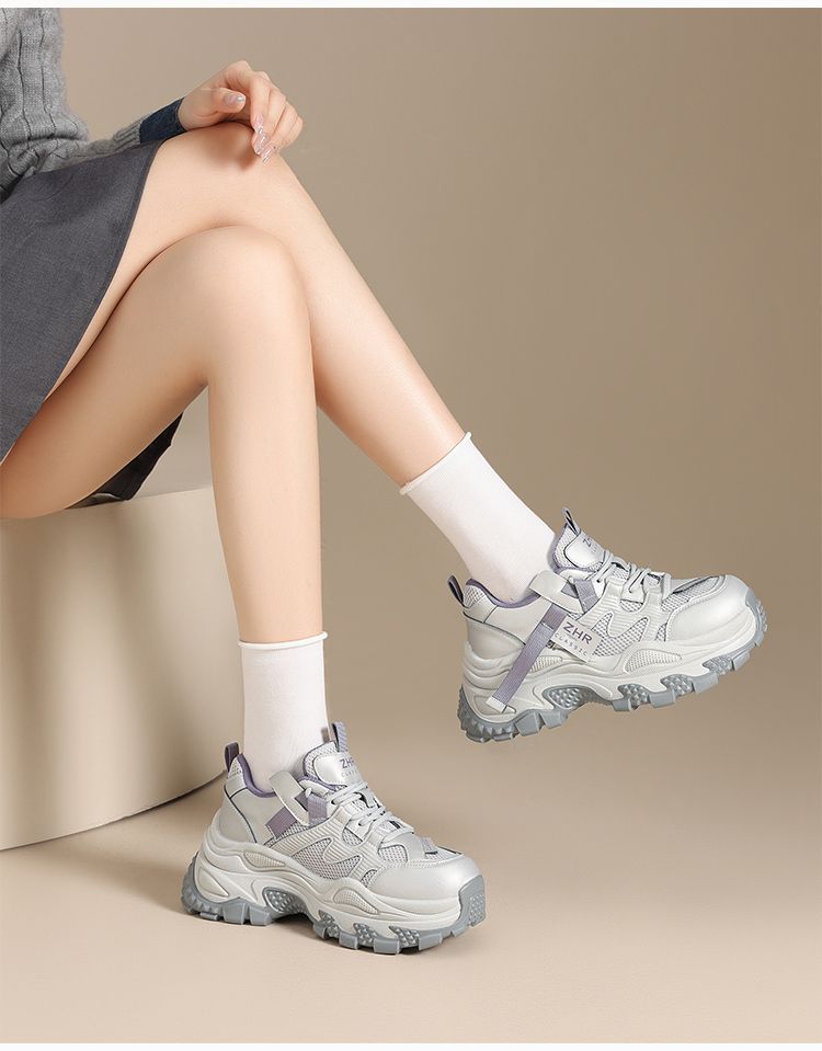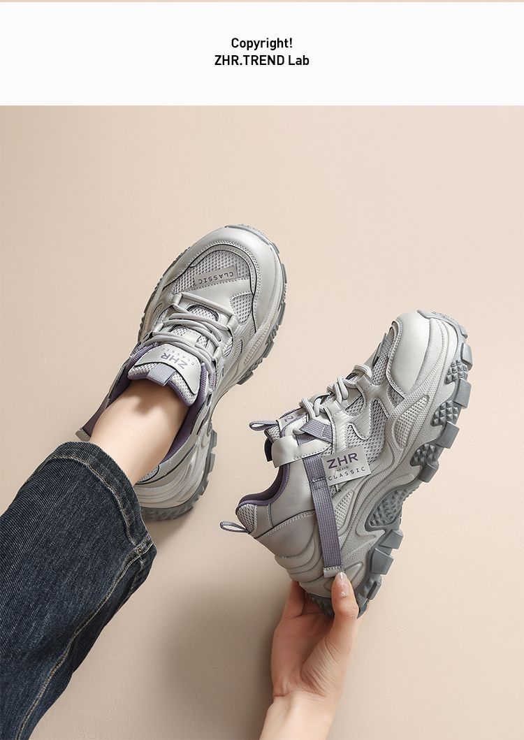 ZHR则则厚底老爹鞋女2025秋冬新款灰色户外休闲鞋百搭增高运动鞋