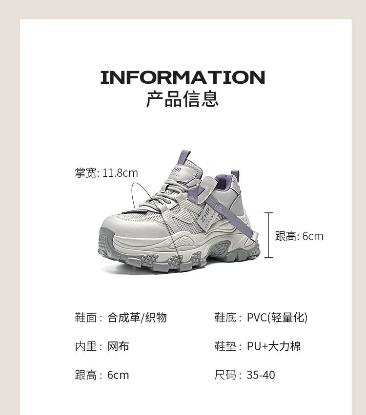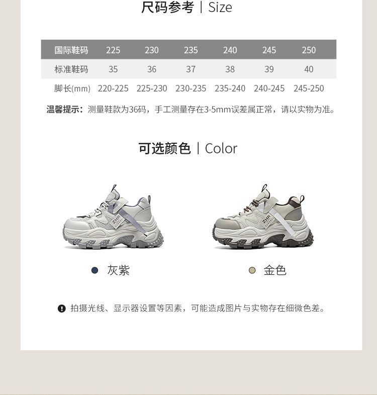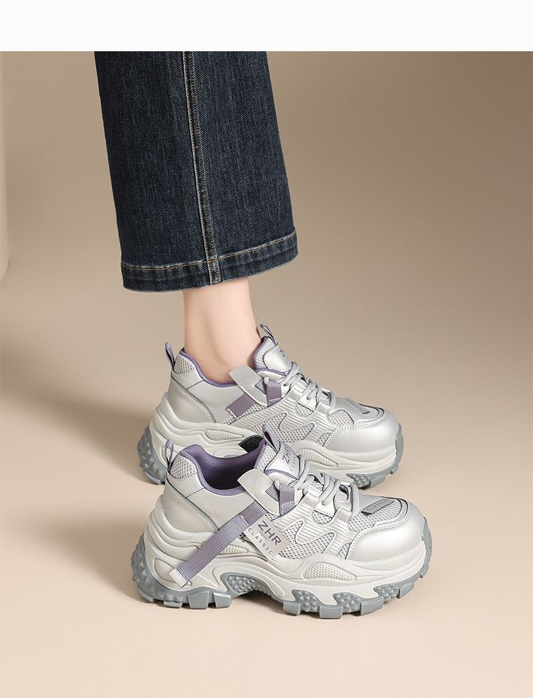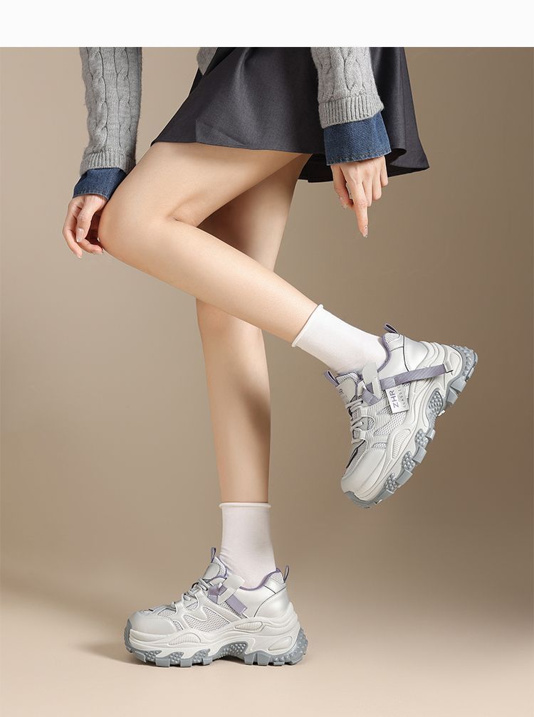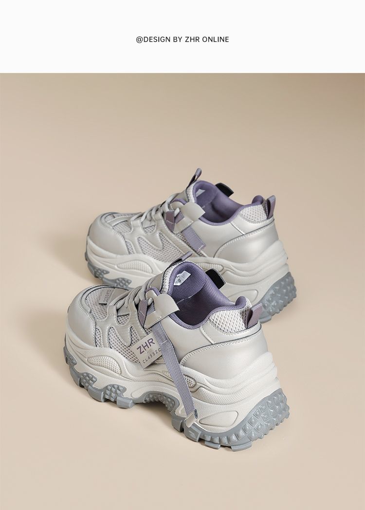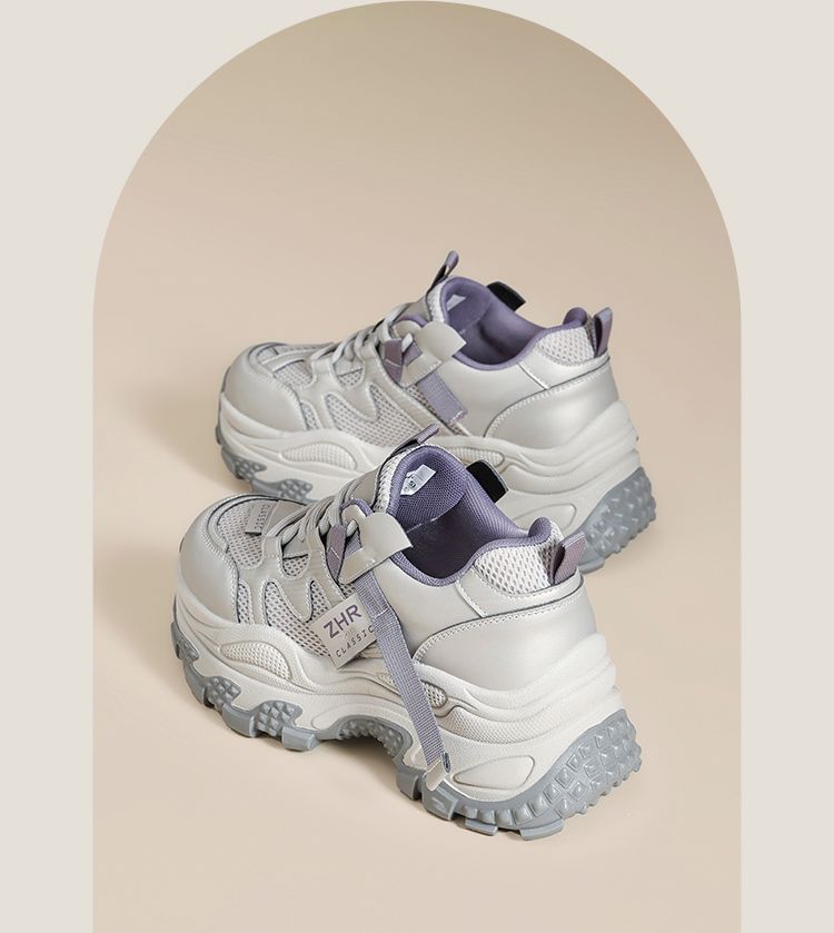 ZHR则则厚底老爹鞋女2025秋冬新款灰色户外休闲鞋百搭增高运动鞋