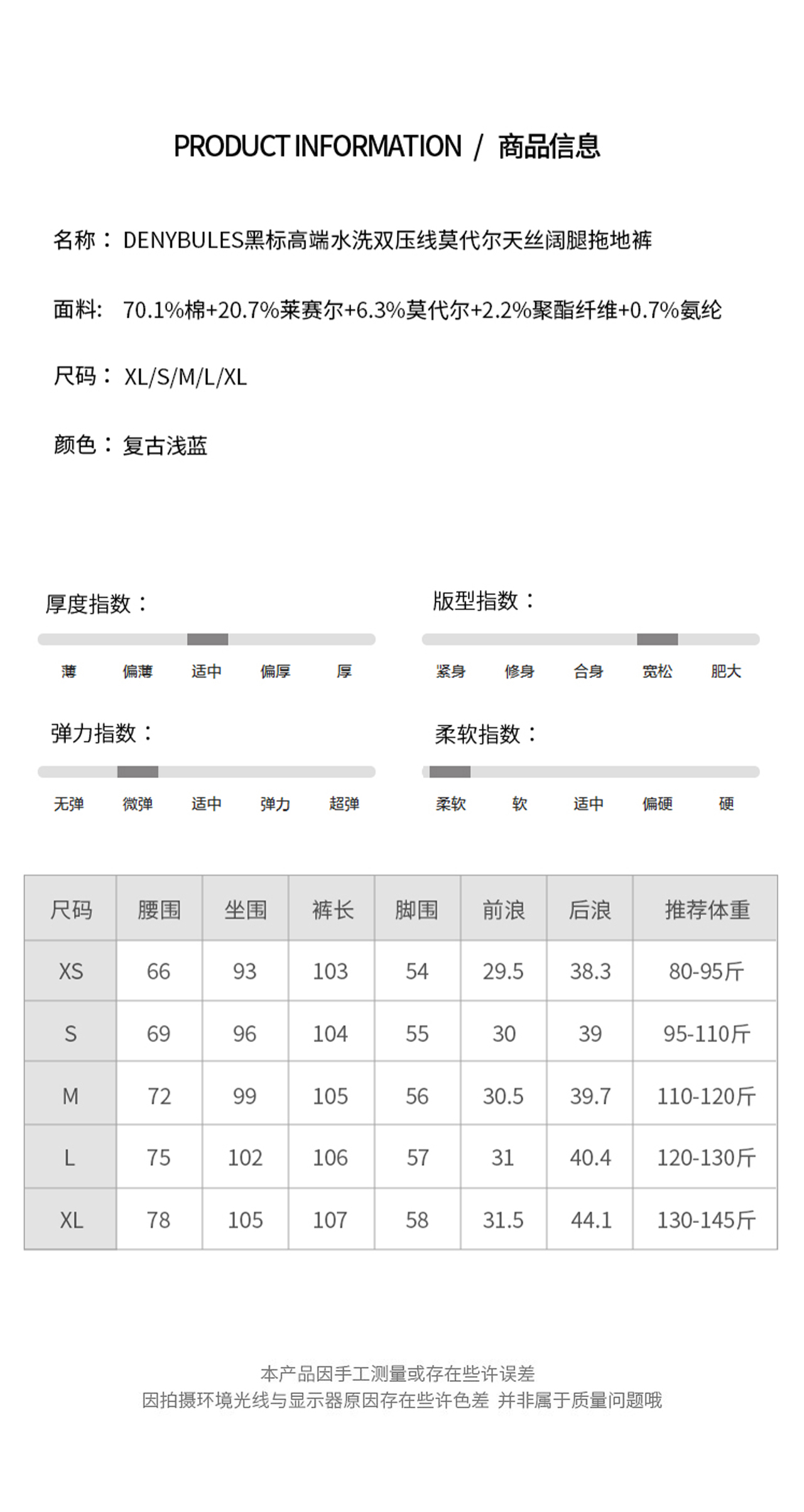 DENYBULES 黑标高端水洗双压线天丝莱赛尔莫代尔阔腿拖地裤