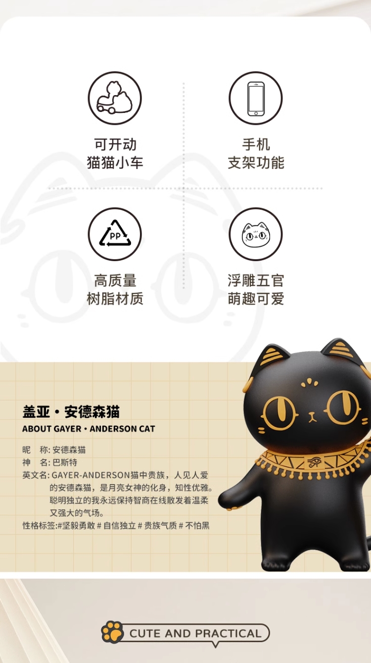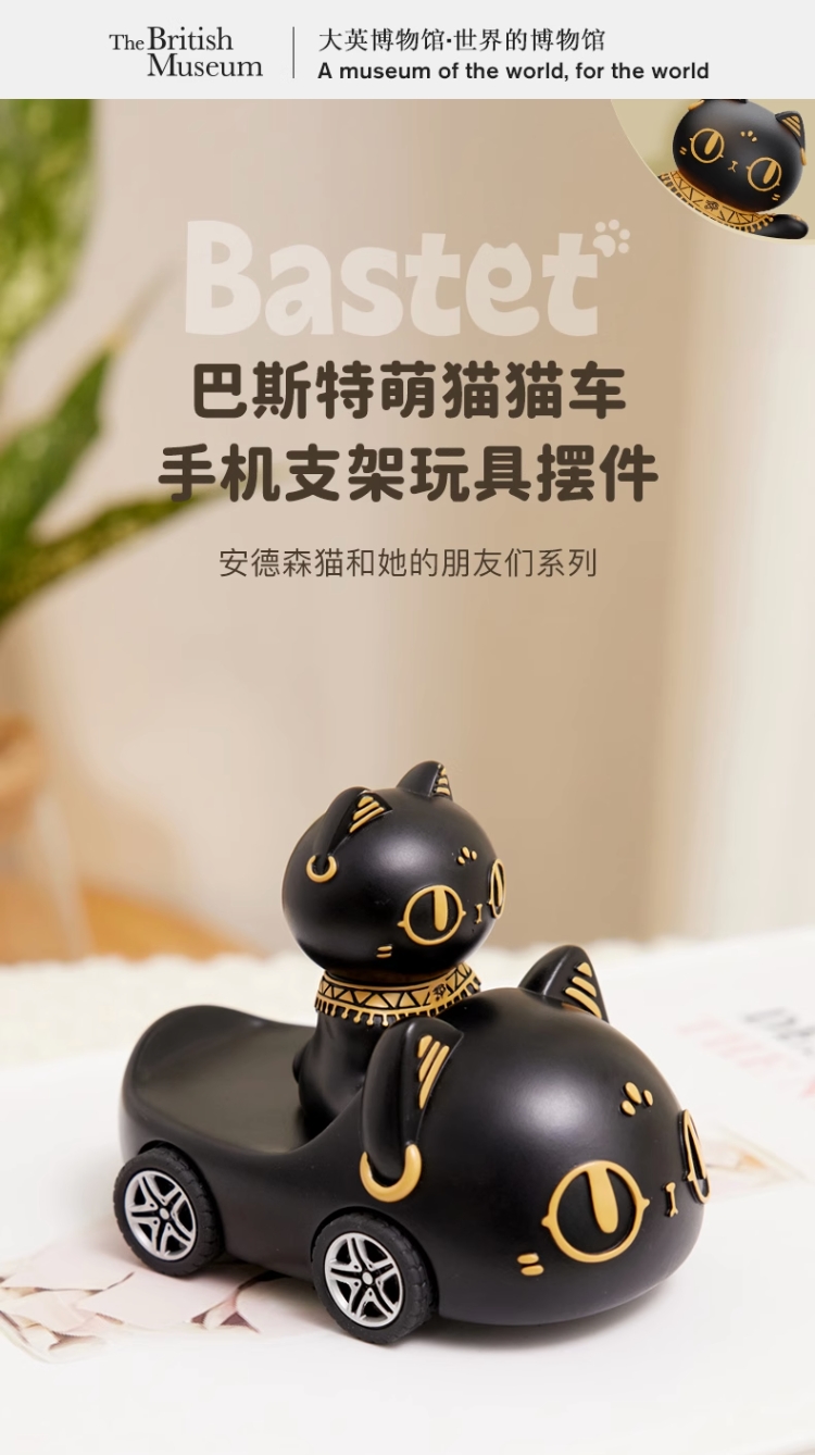 大英博物馆盖亚·安德森猫和她的朋友们系列 巴斯特猫猫车手机支架摆件