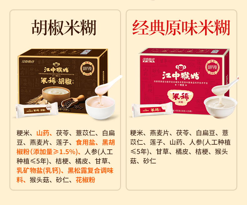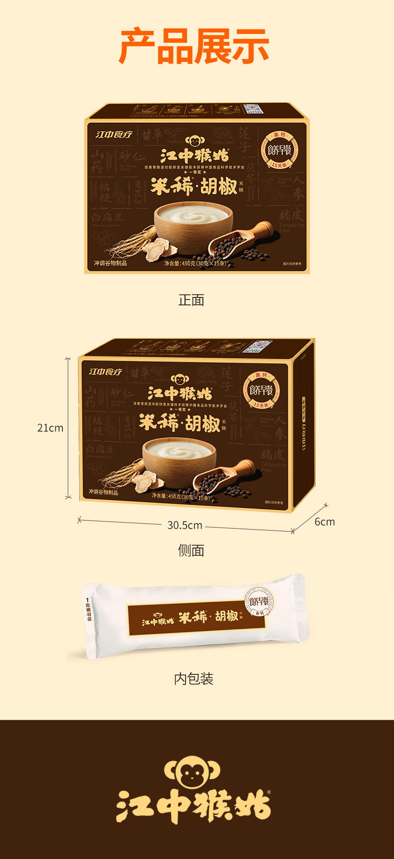 【积分兑换】江中猴姑米稀胡椒米糊15天装高钙营养胃黑胡椒 15包/450克/盒 2025年9月生产/保质期12个月 积分兑换