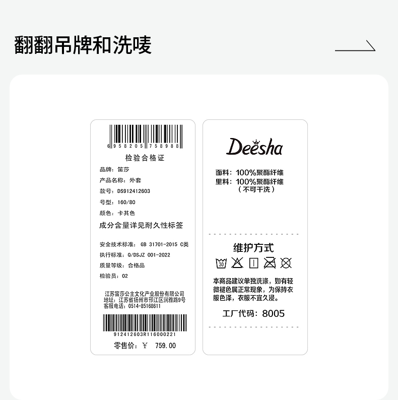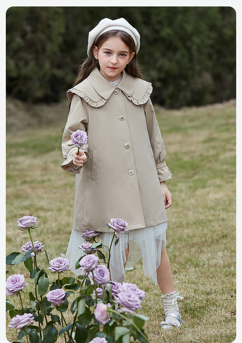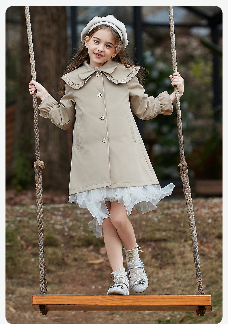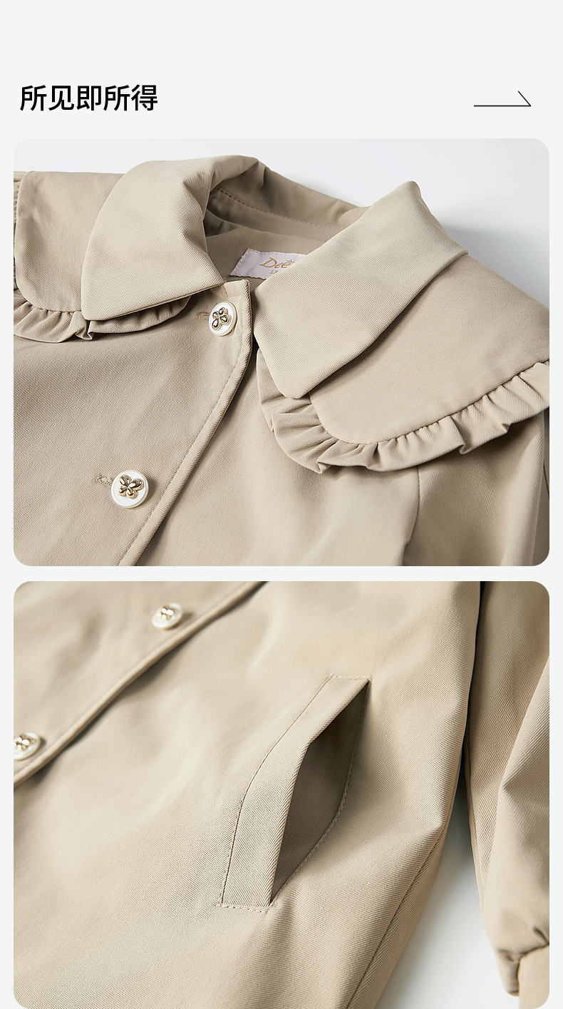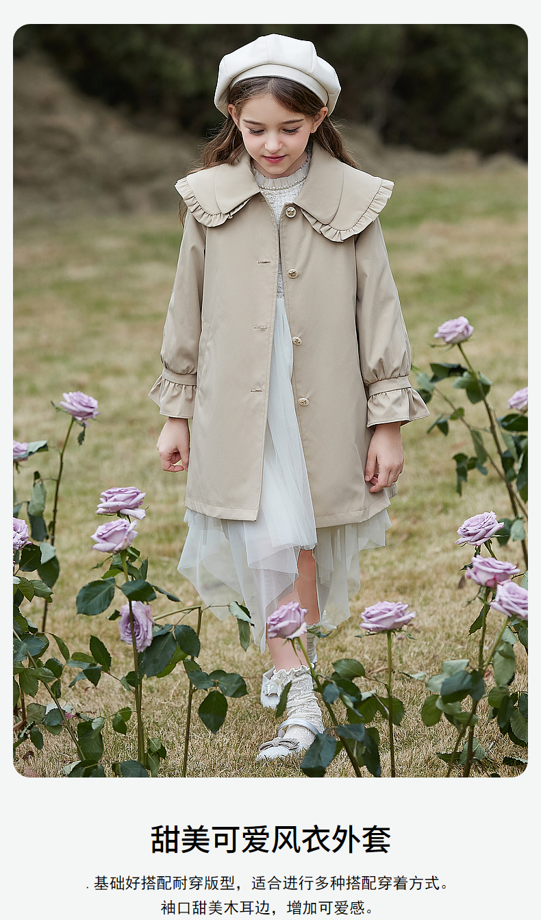 笛莎Deesha 童装女童外套2024春季新款中大童时尚风衣外套