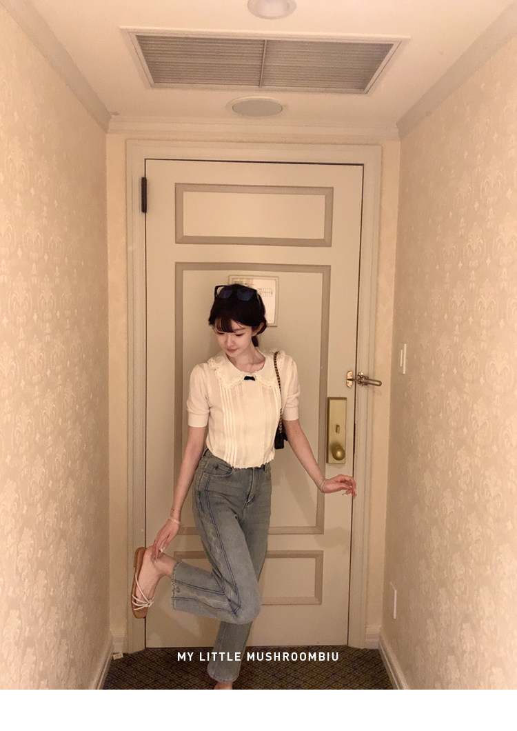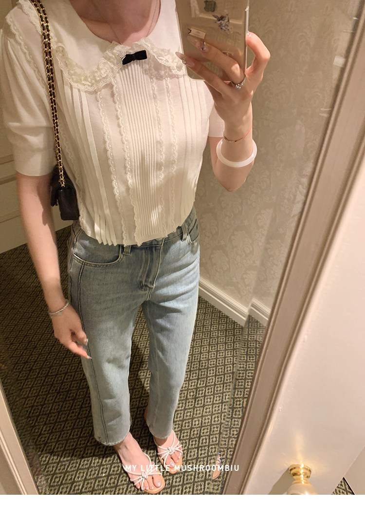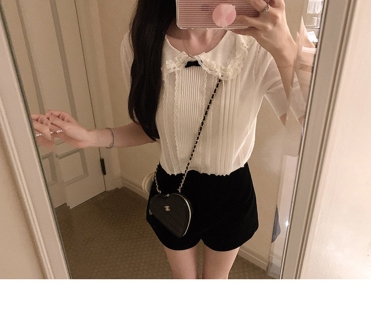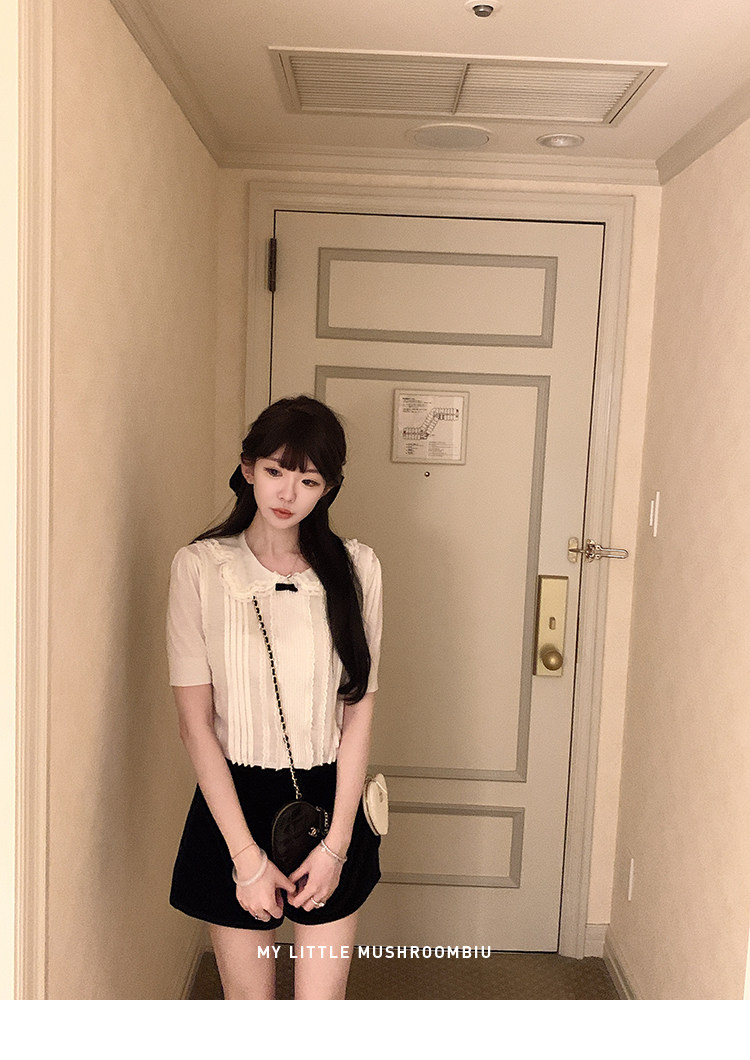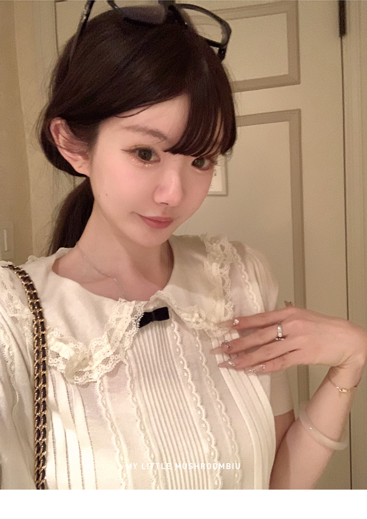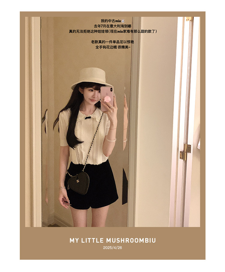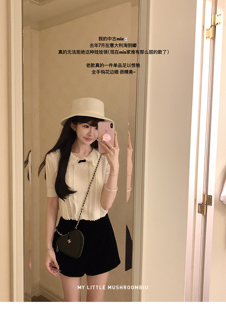 金蘑菇菇 桃乐丝 中古miu套组 / 全手钩花边top+丝绒短裤