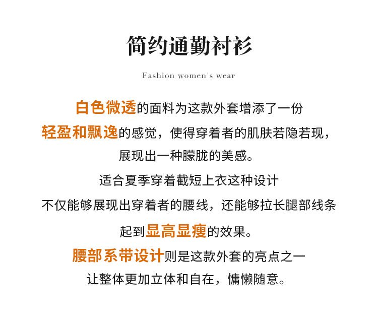 【商场同款】CNB4588 “ 轻盈外套 ” 清新素雅的云白色,低调娴静 下摆系带结构,提高腰线 醋纤柔软亲肤,吸湿透气 短外套