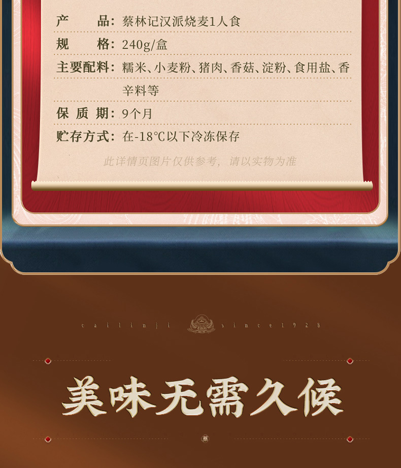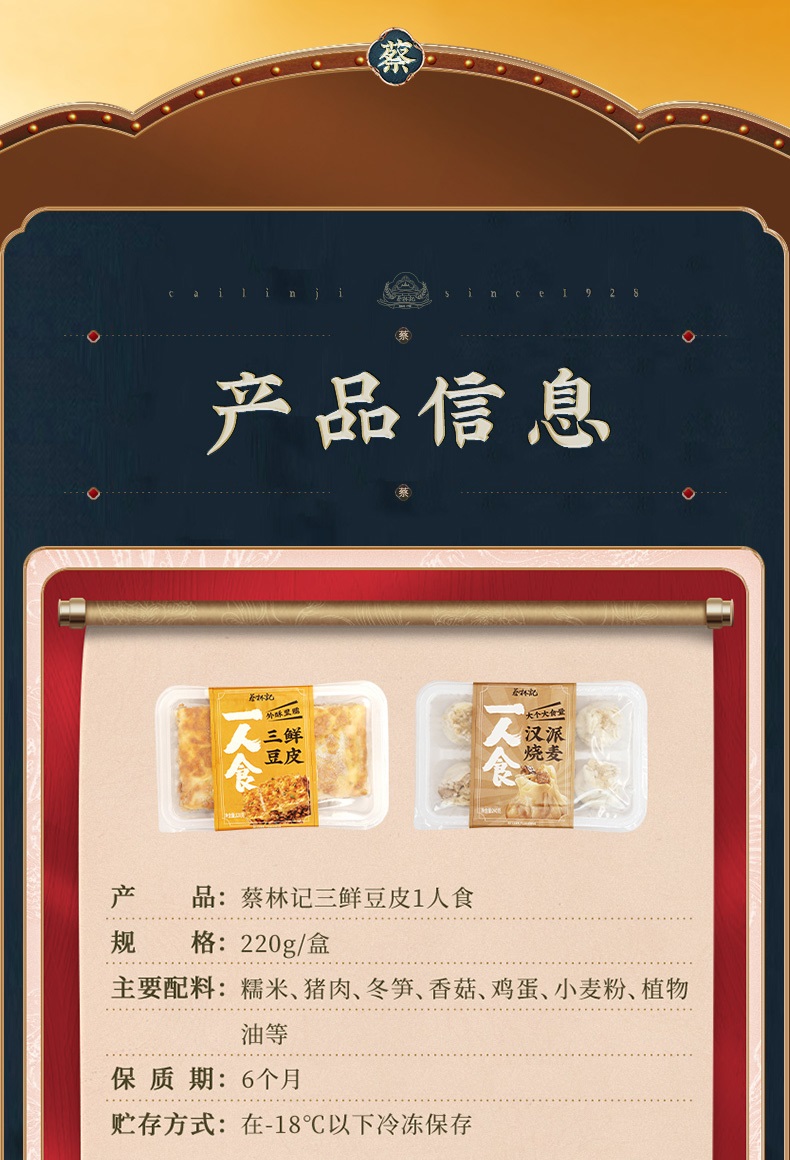 【老字号】蔡林记 三鲜豆皮 220g/糯米鸡252g/重油烧麦 240g