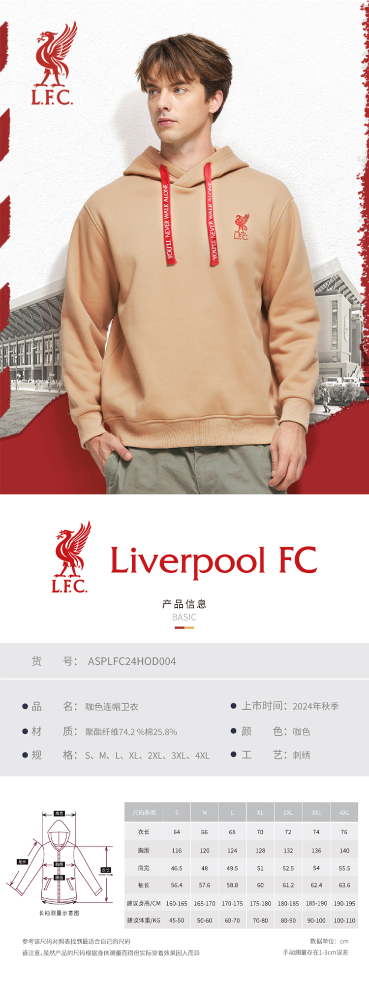 【官方正版】利物浦足球俱乐部 | 咖色连帽卫衣休闲时尚秋冬保暖男女球迷用品