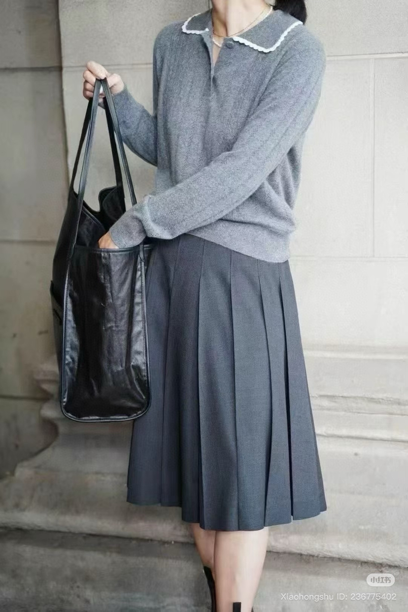 1011-8 圆正渠道货 小禾 精纺羊毛百褶长半裙 看腰围135斤时我穿38/140斤我要穿40