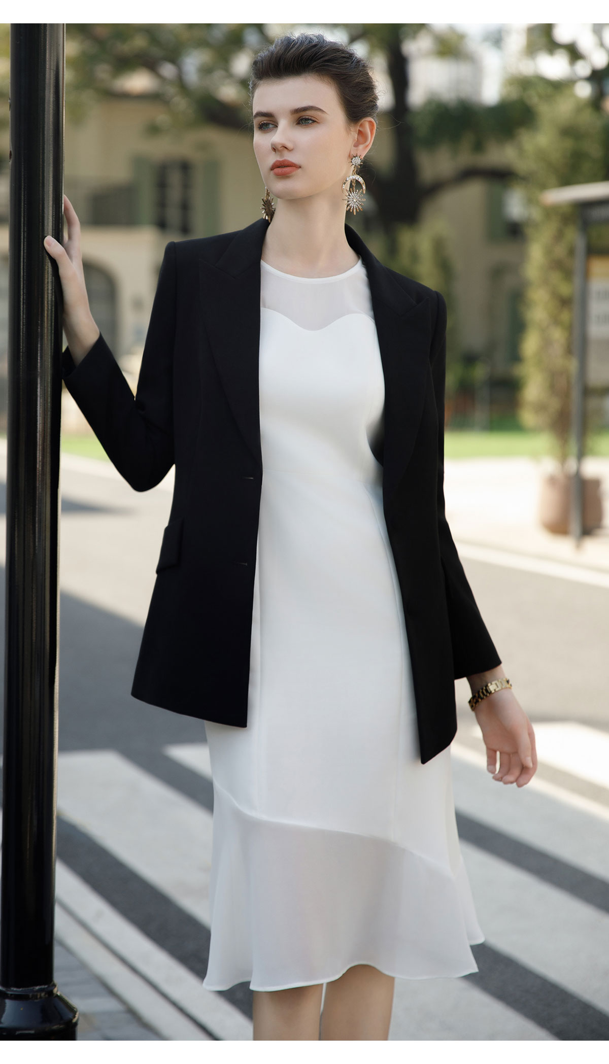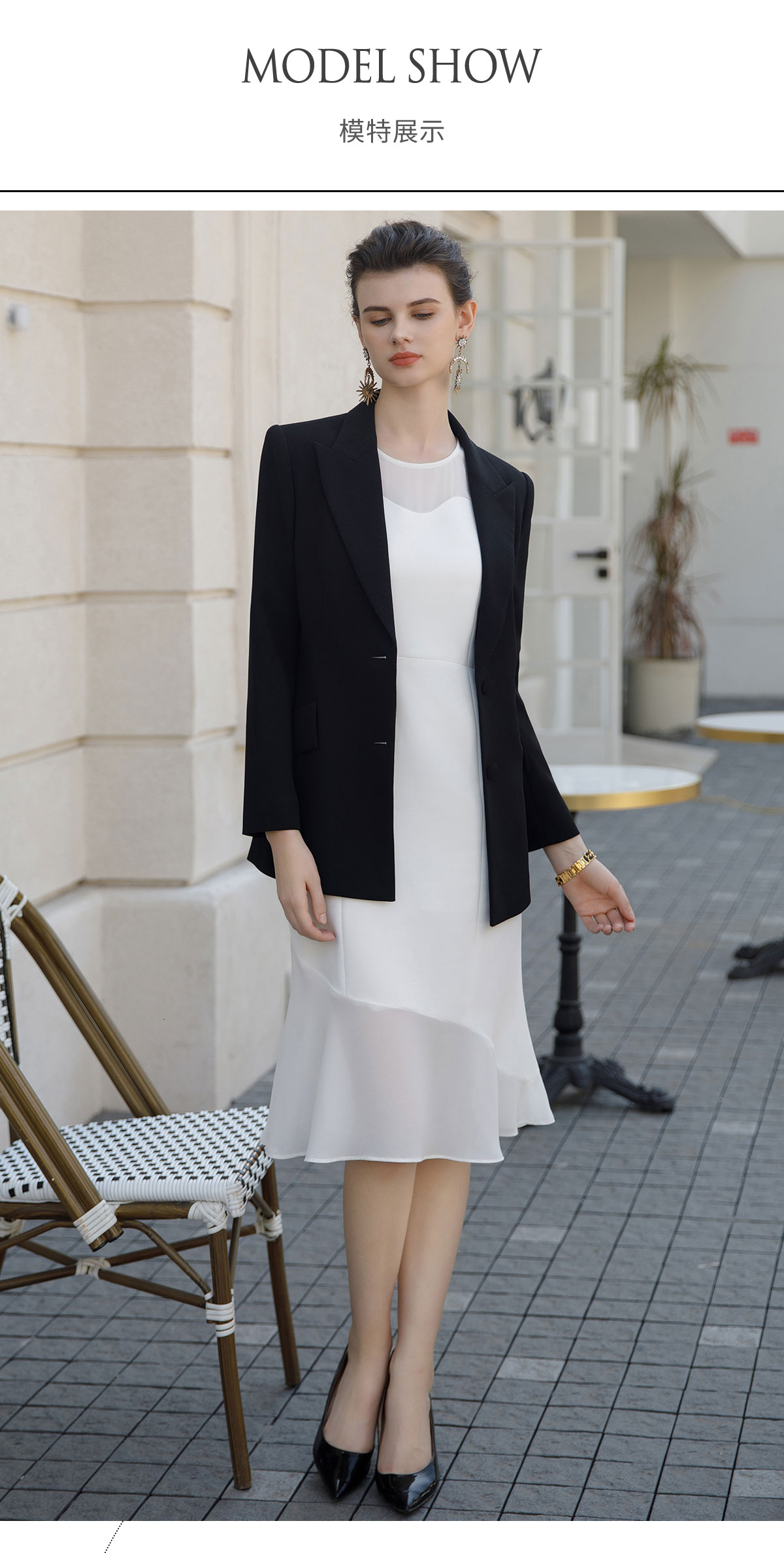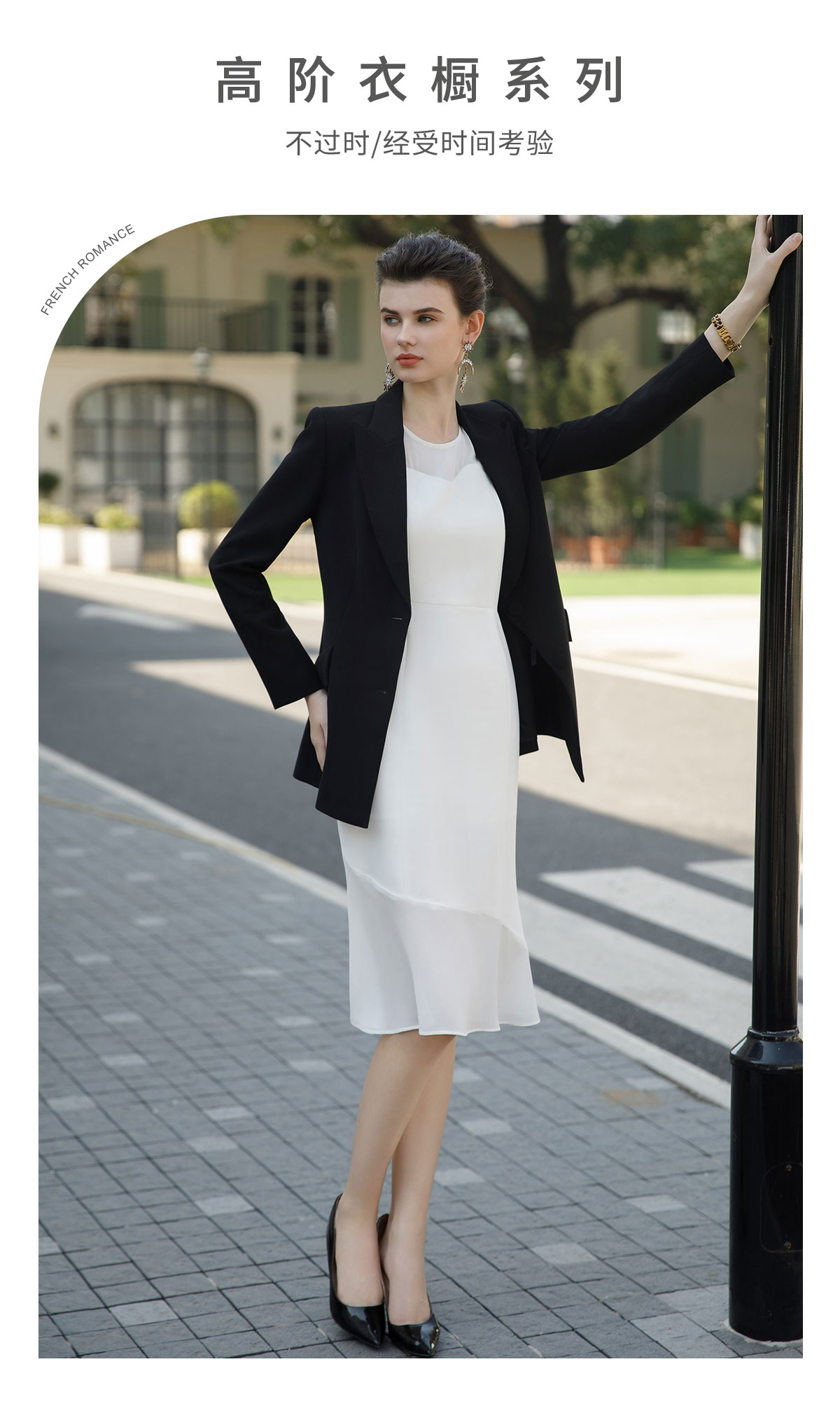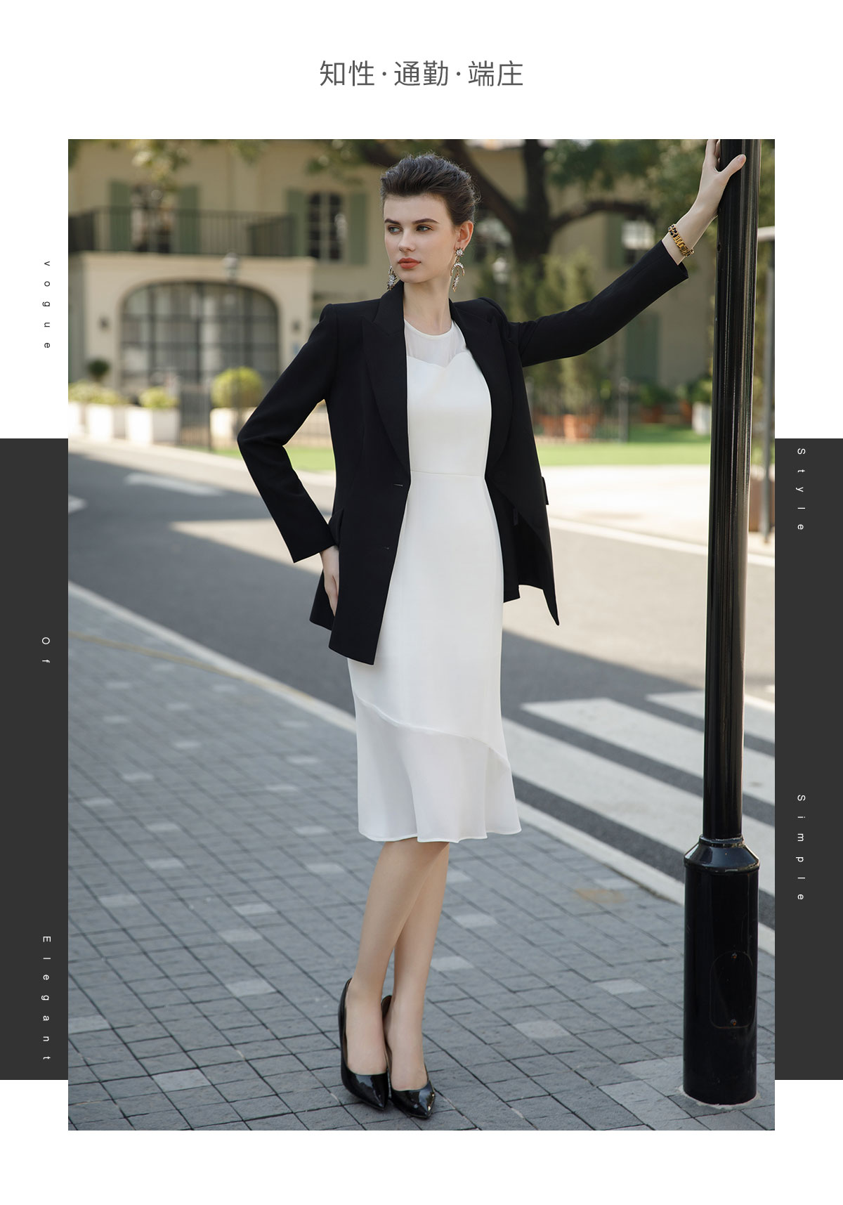 IWY/黑色西装外套白色连衣裙套装气质时尚通勤干练职业正装套裙C1956+Q1062