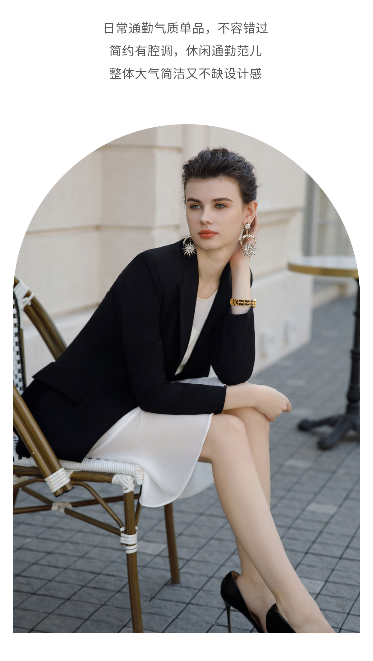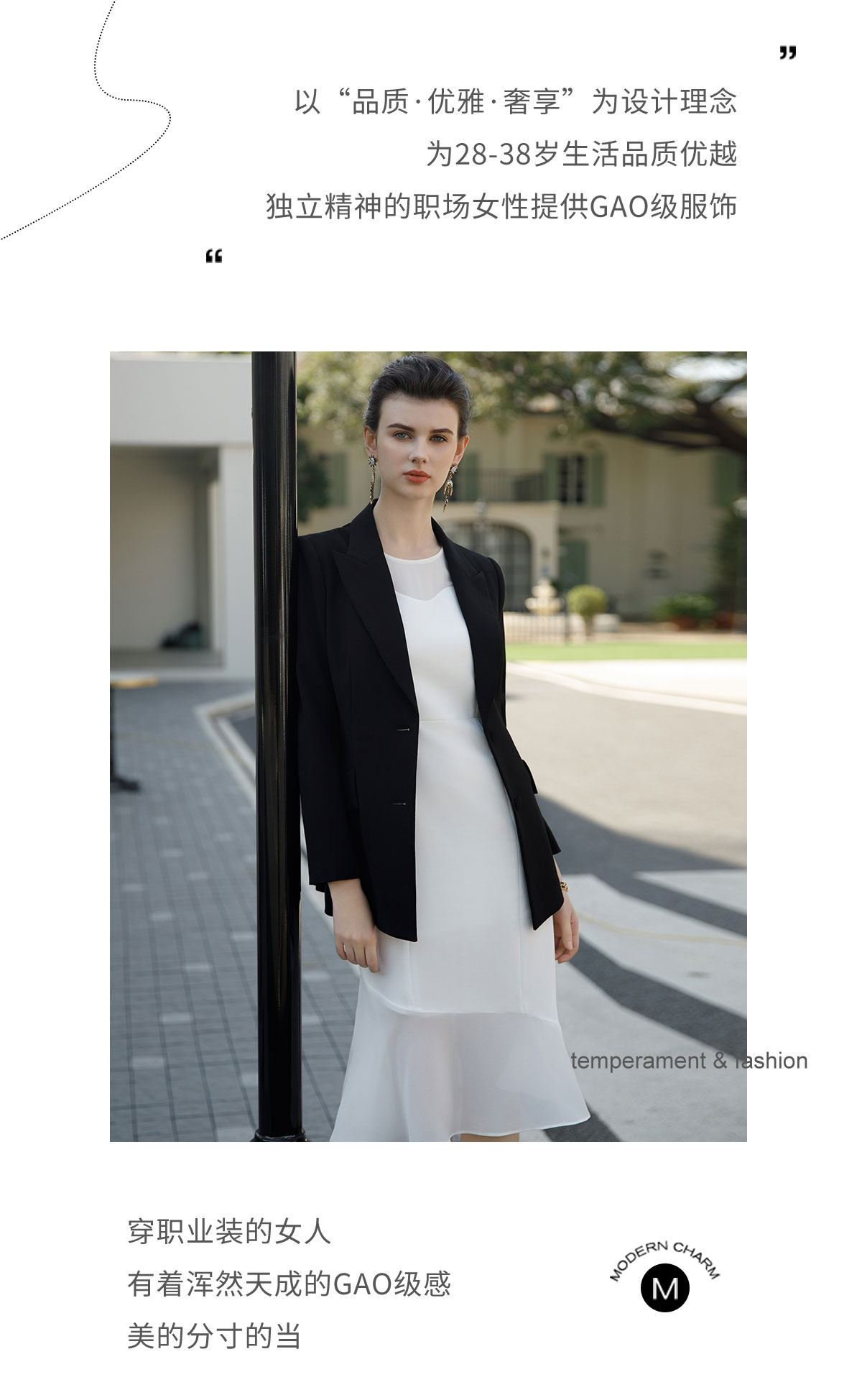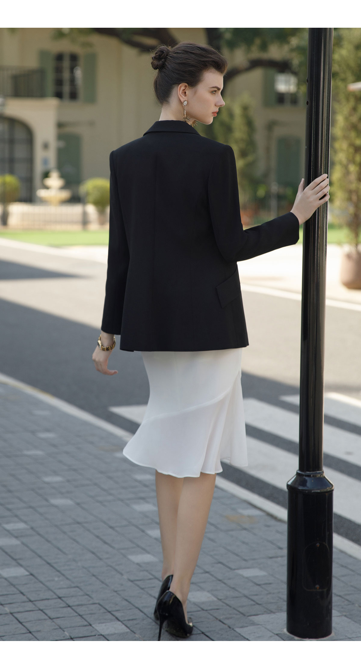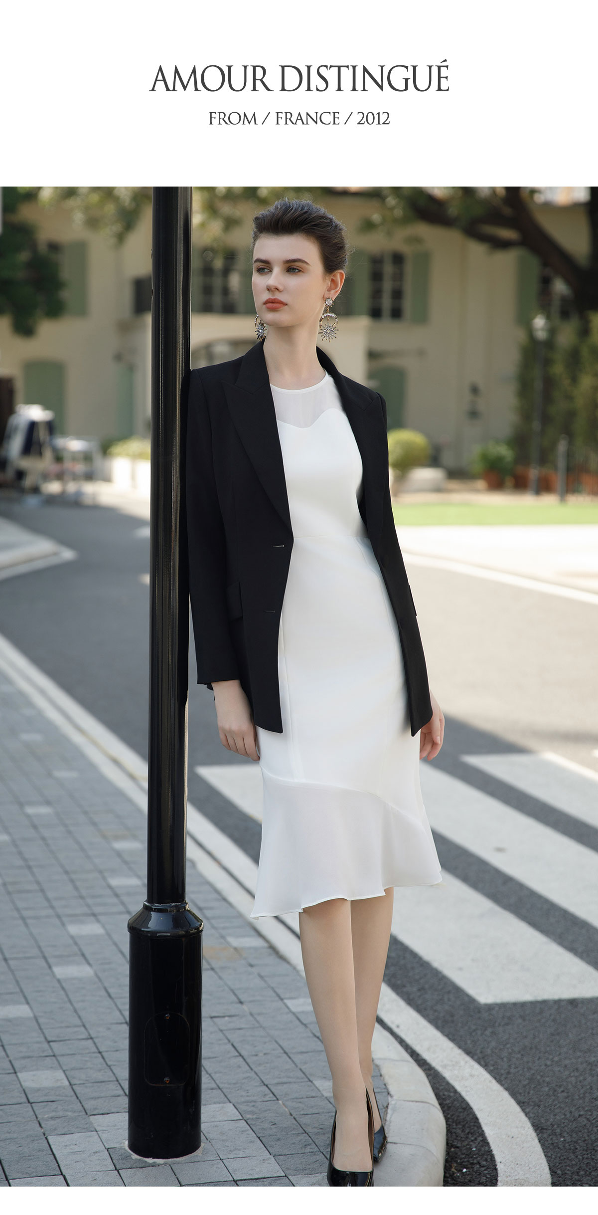 IWY/黑色西装外套白色连衣裙套装气质时尚通勤干练职业正装套裙C1956+Q1062